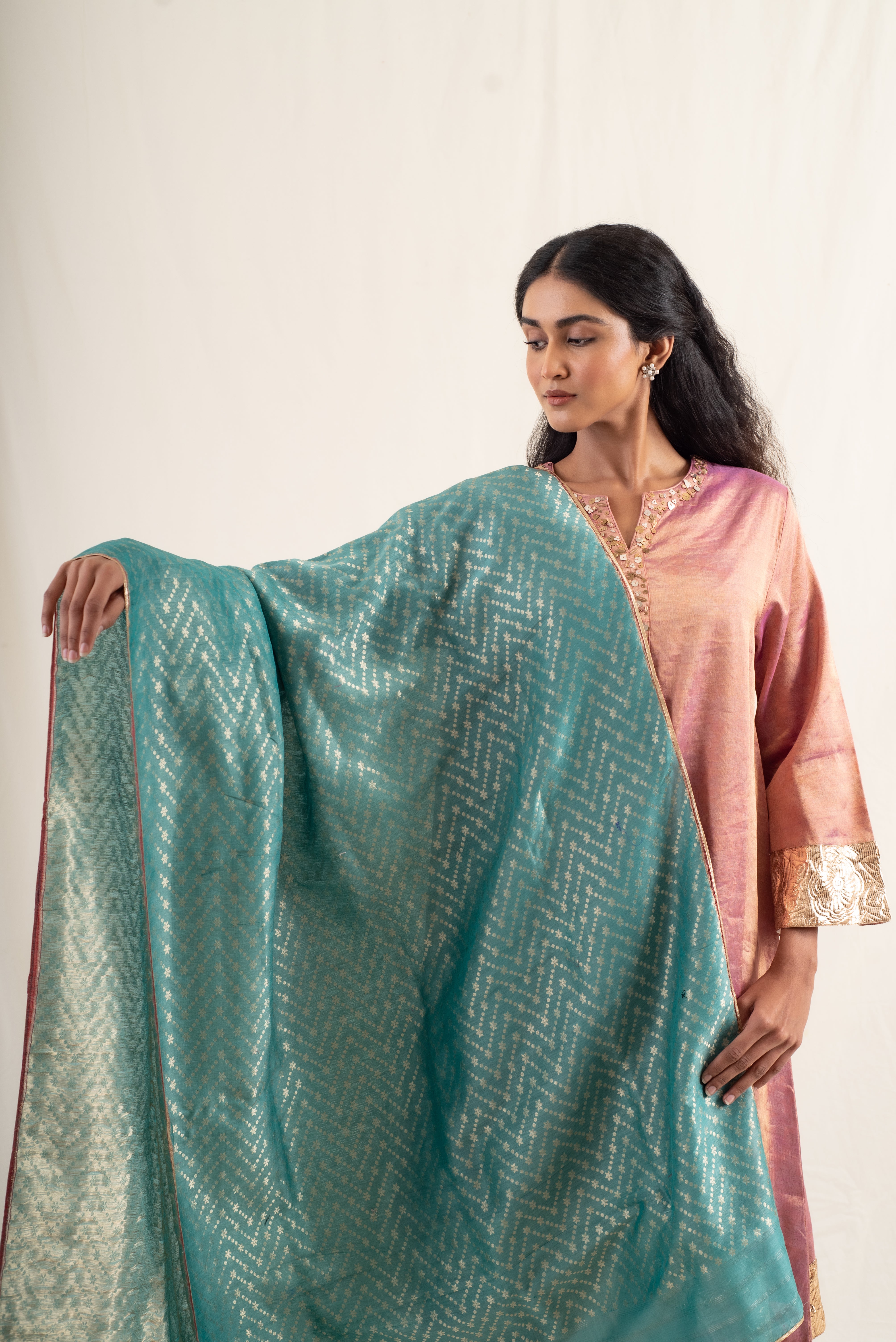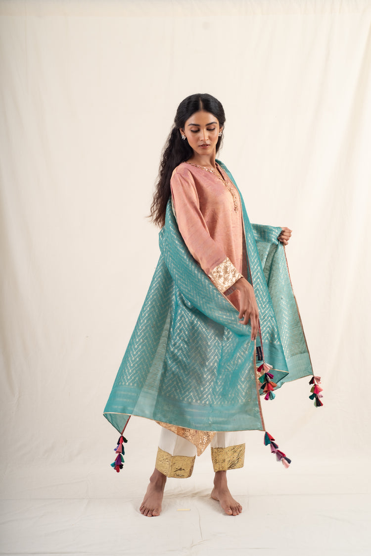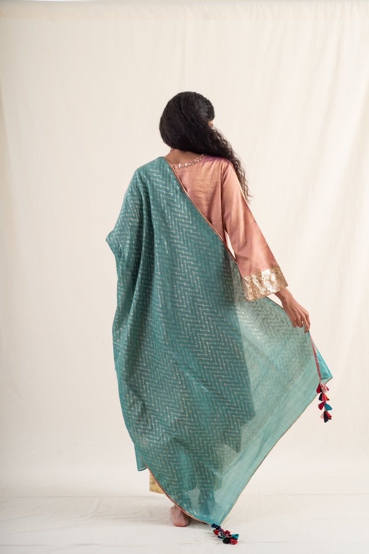 Ziba - Teal Green Silk Banarsi Dupatta