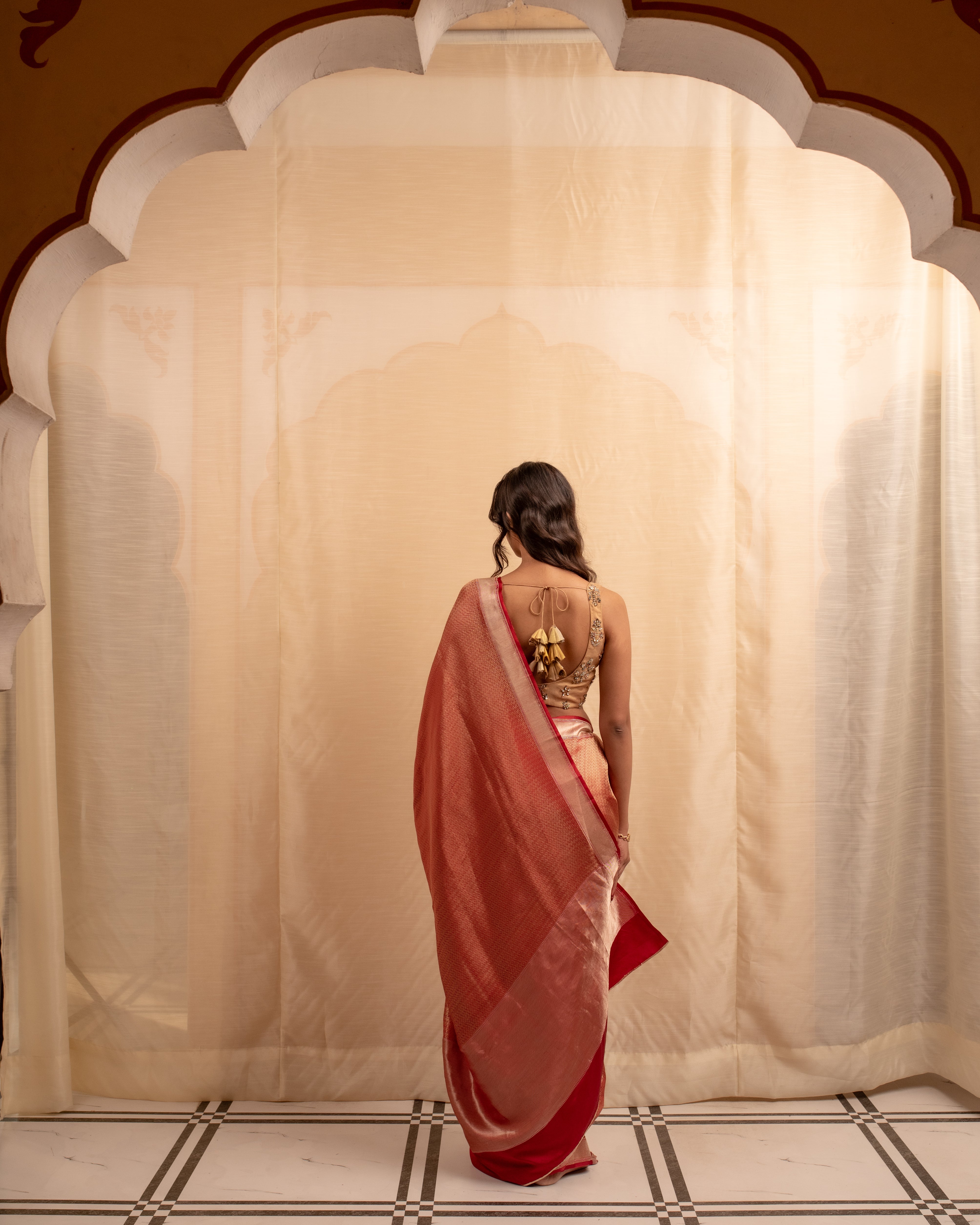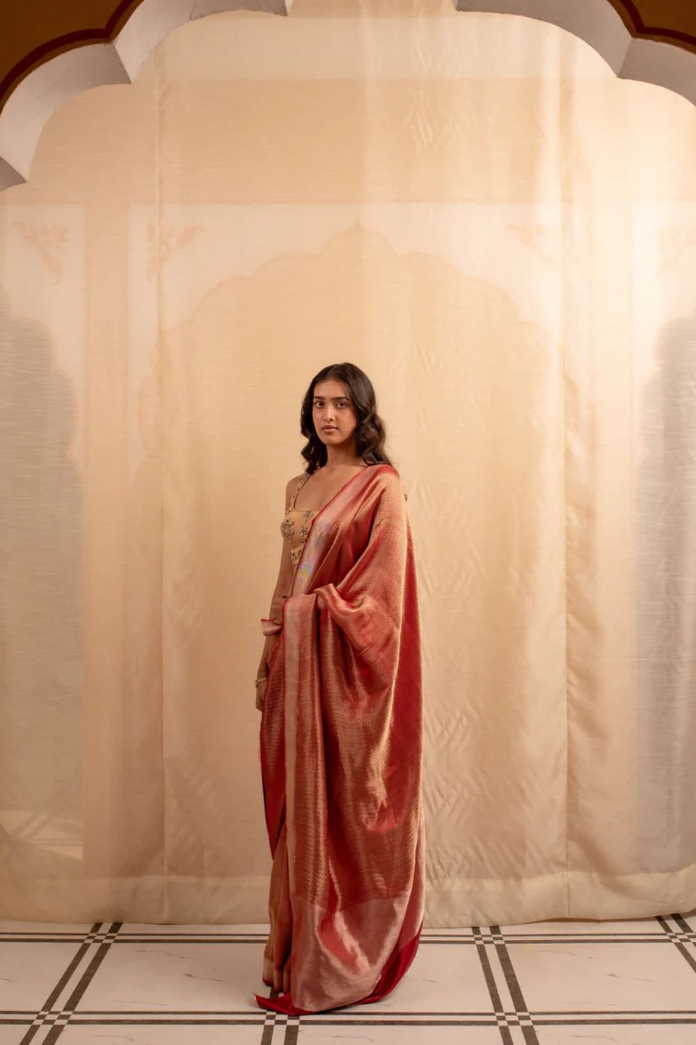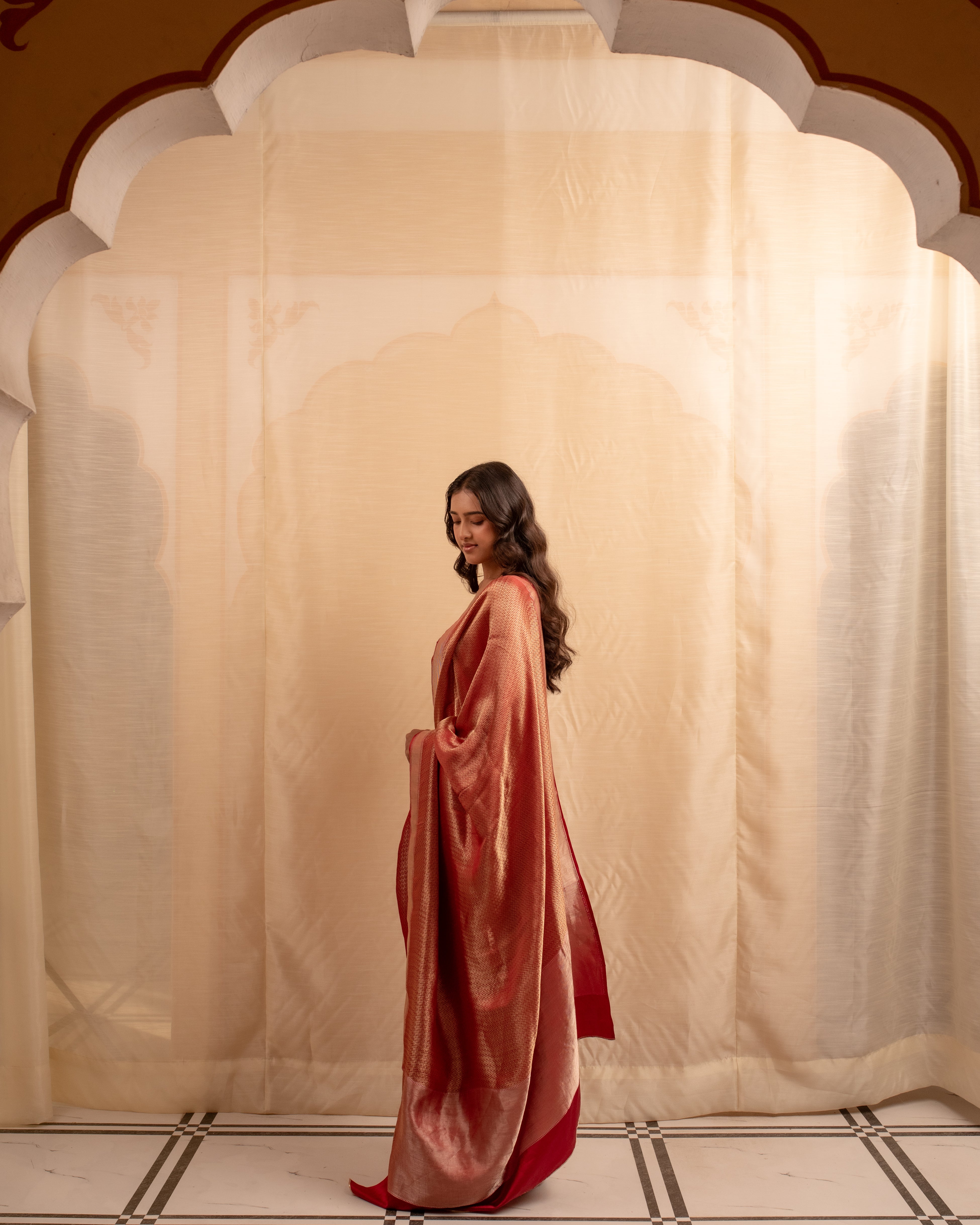 Madhurya - Coral Silk Mashroo Banarasi Saree