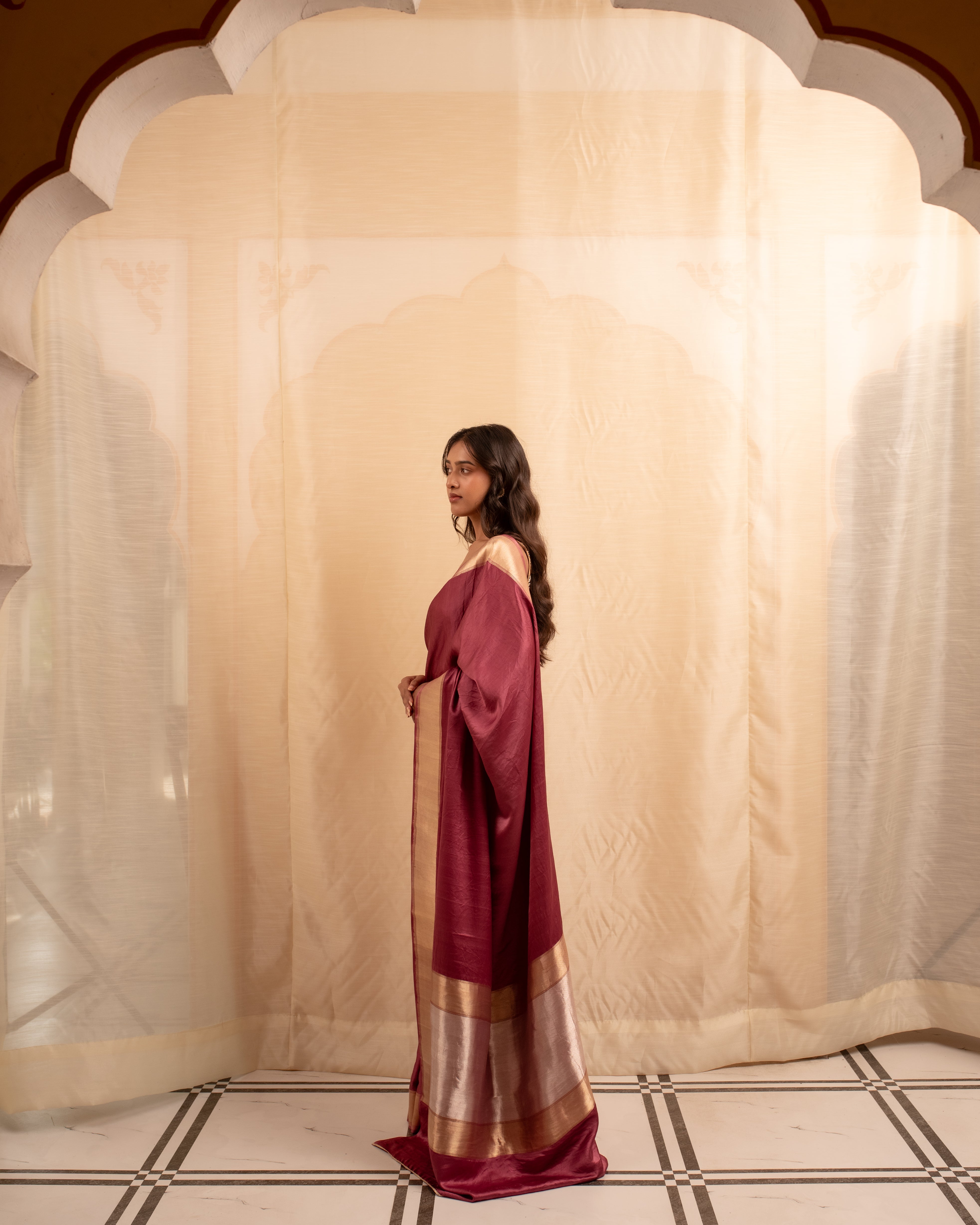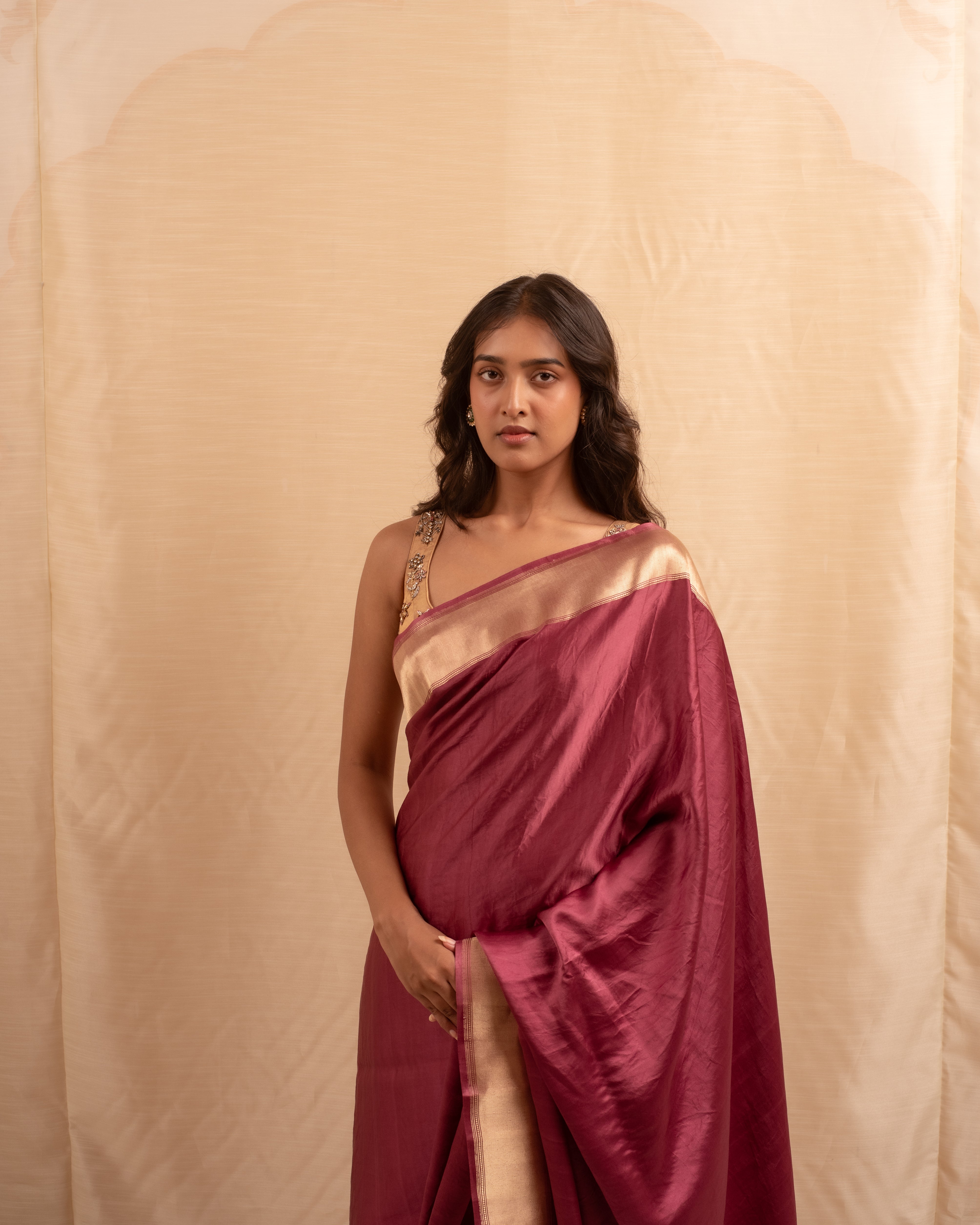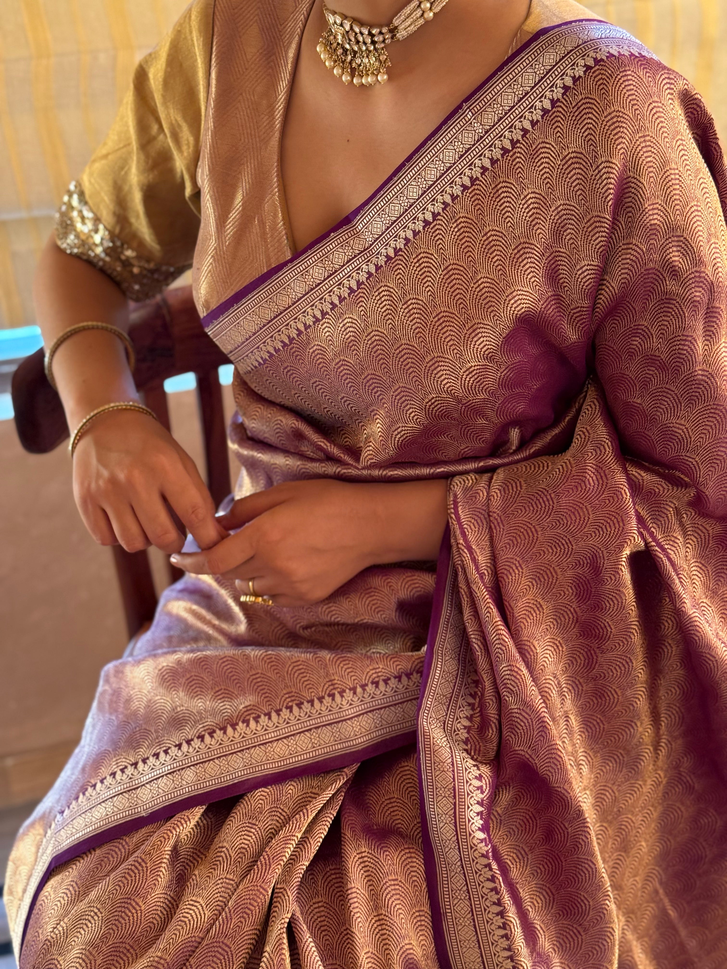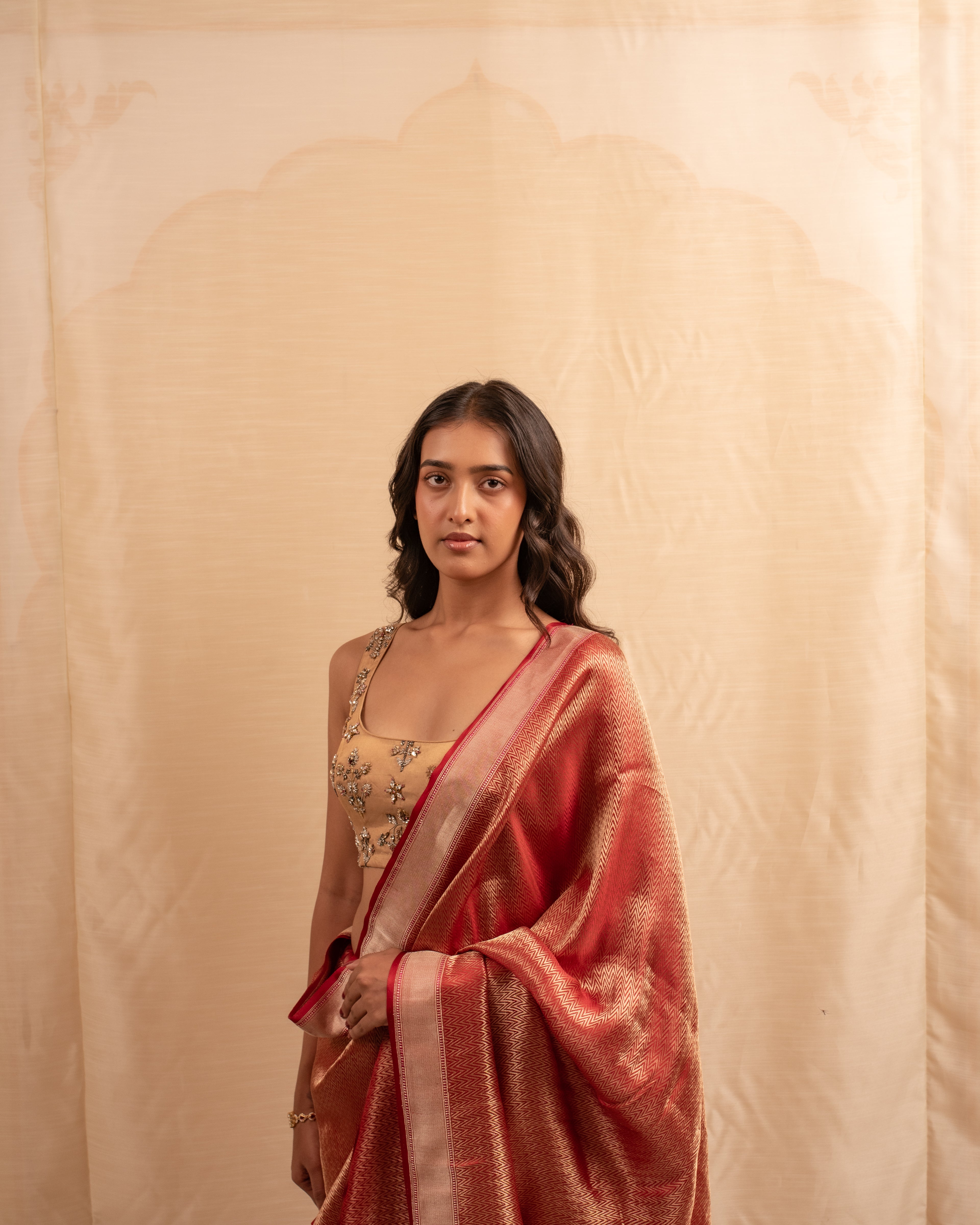 Madhurya - Coral Silk Mashroo Banarasi Saree