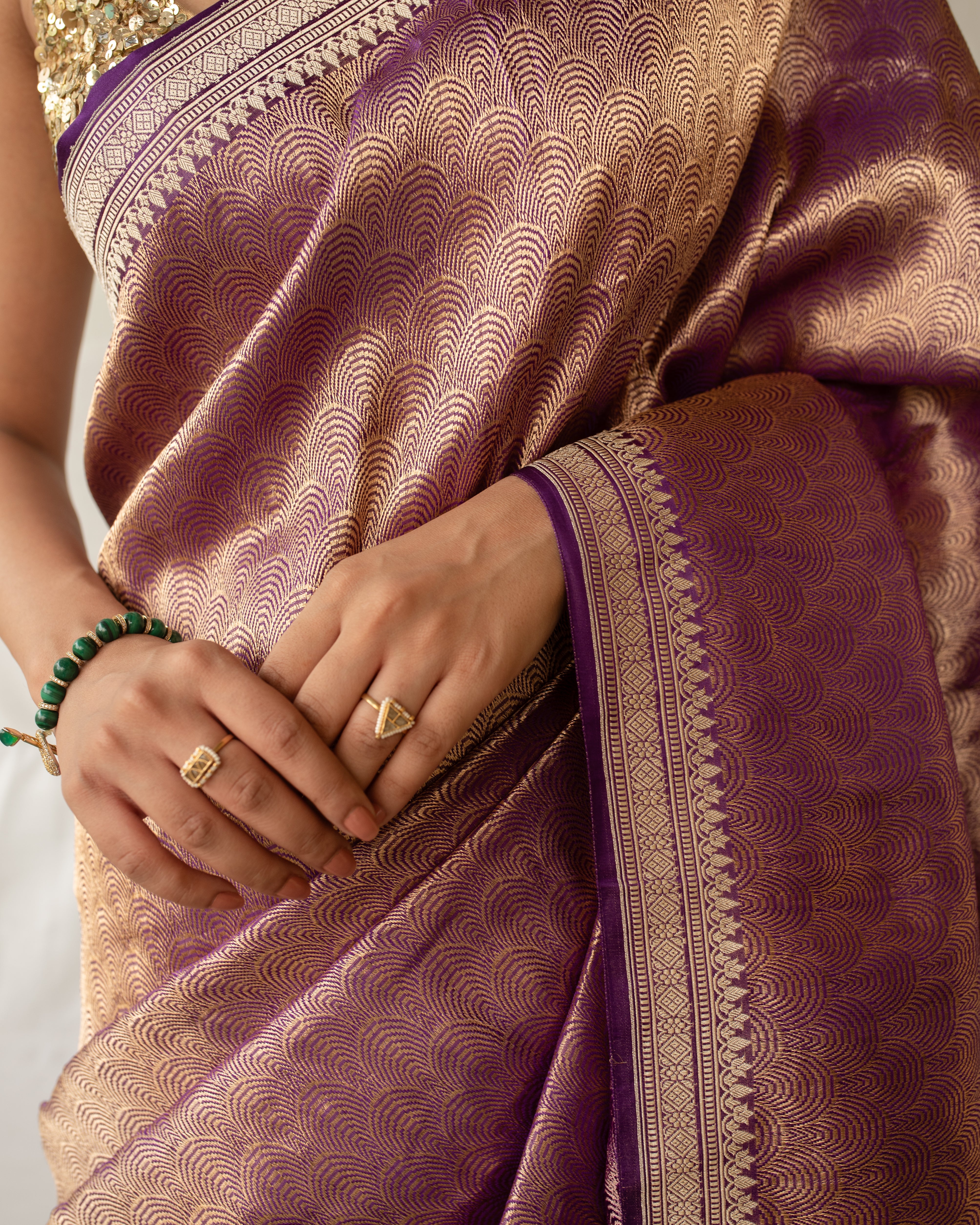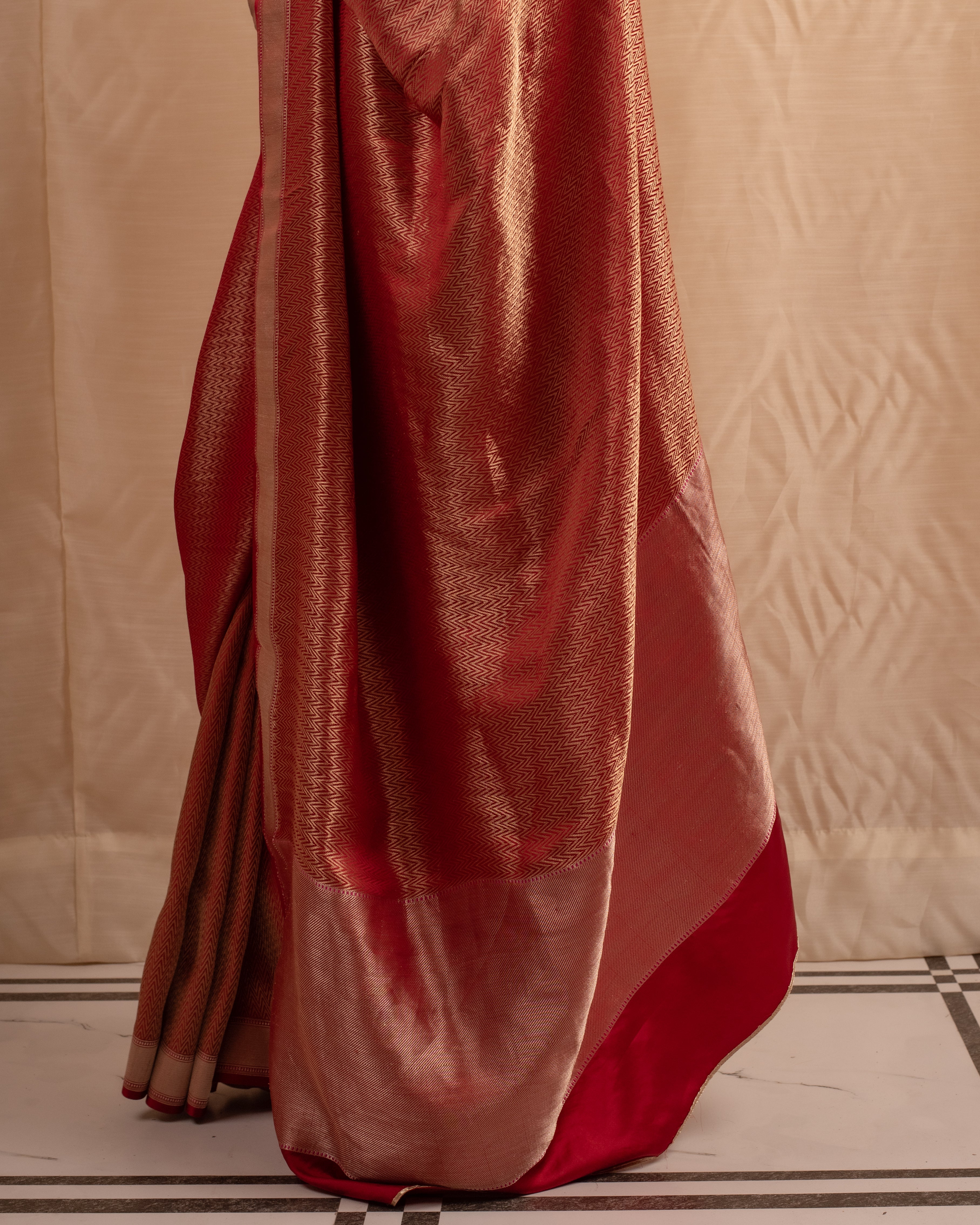 Zaveri - Burnt Orange Silk Banarasi Saree