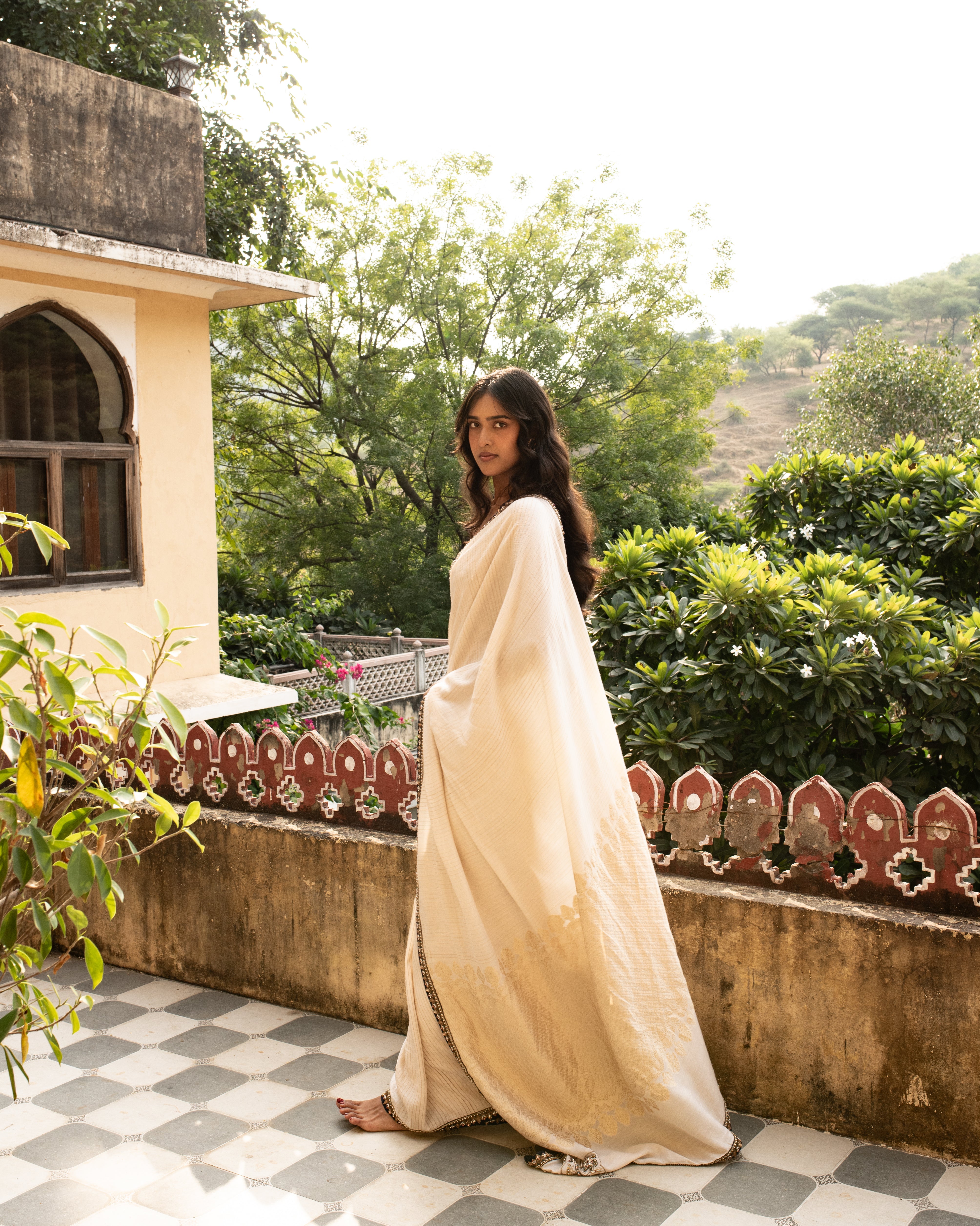 Alankar - Ivory Silk Banarasi Tissue Saree