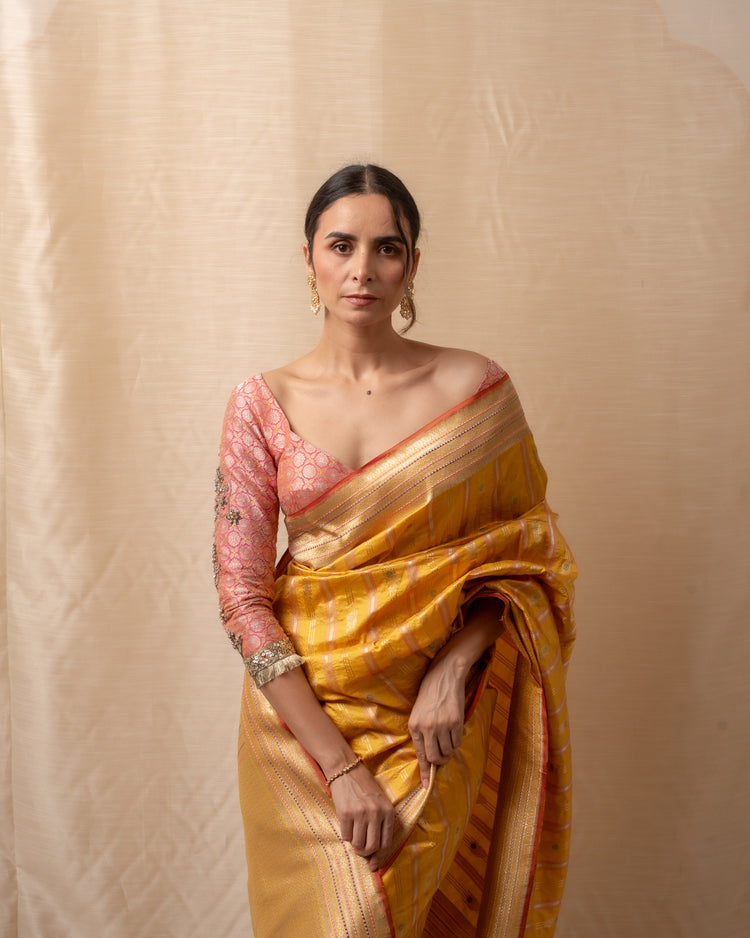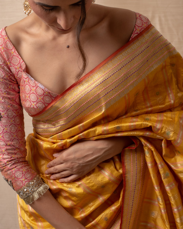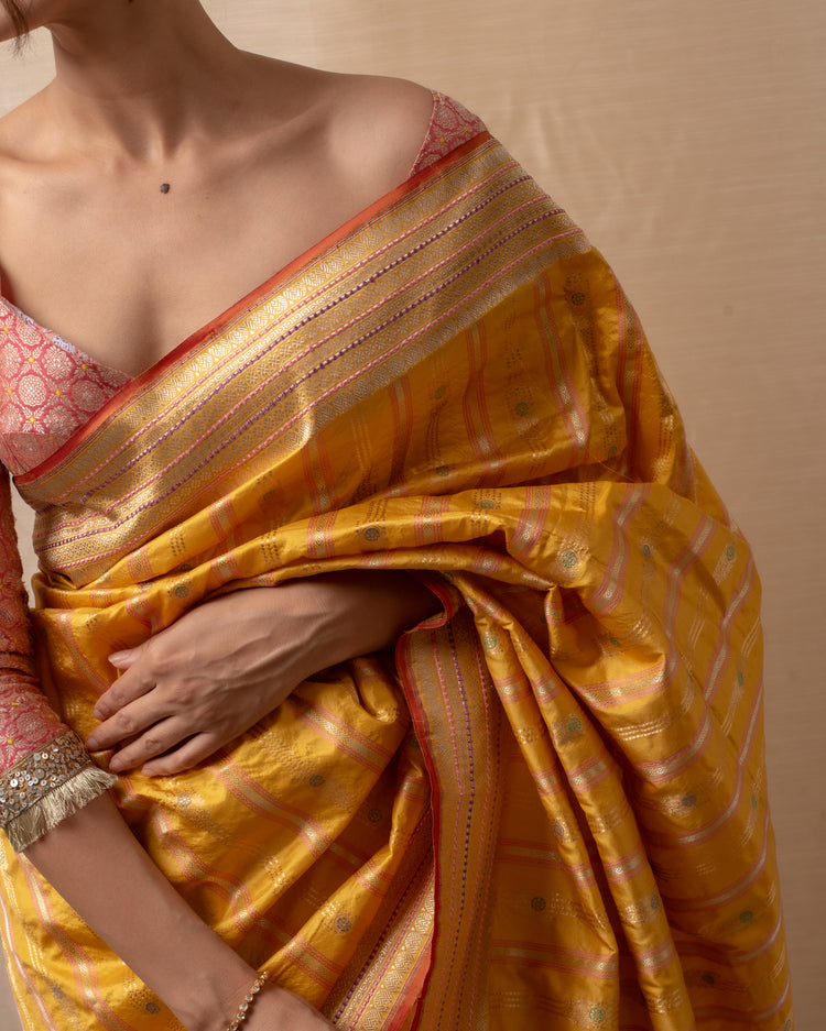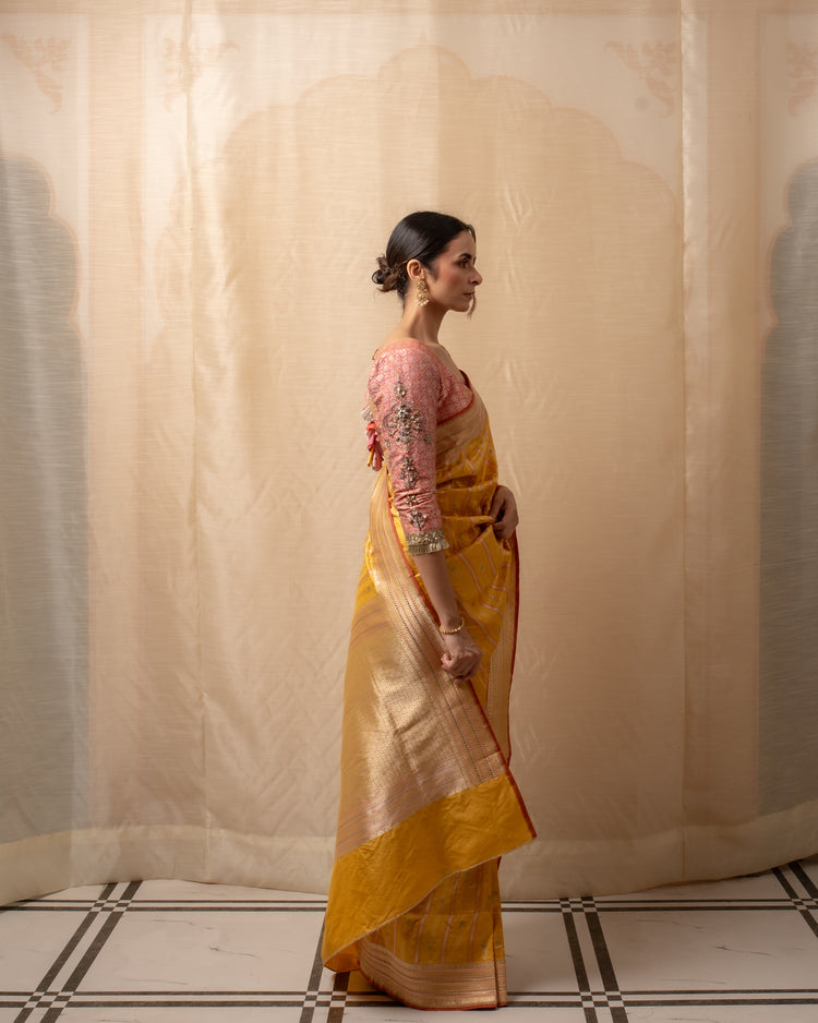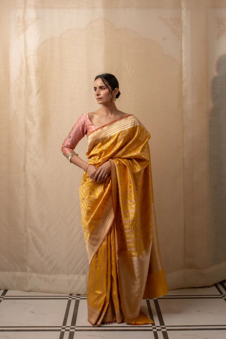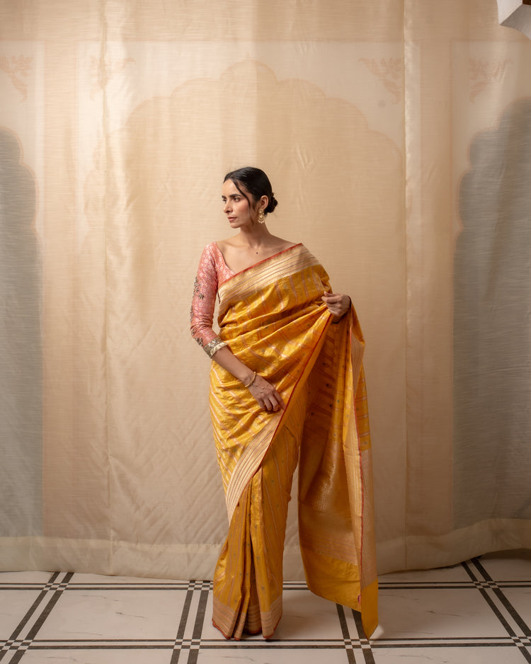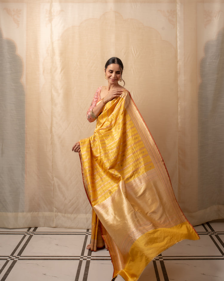 Maghi- Yellow Silk Brocade Banarasi Saree