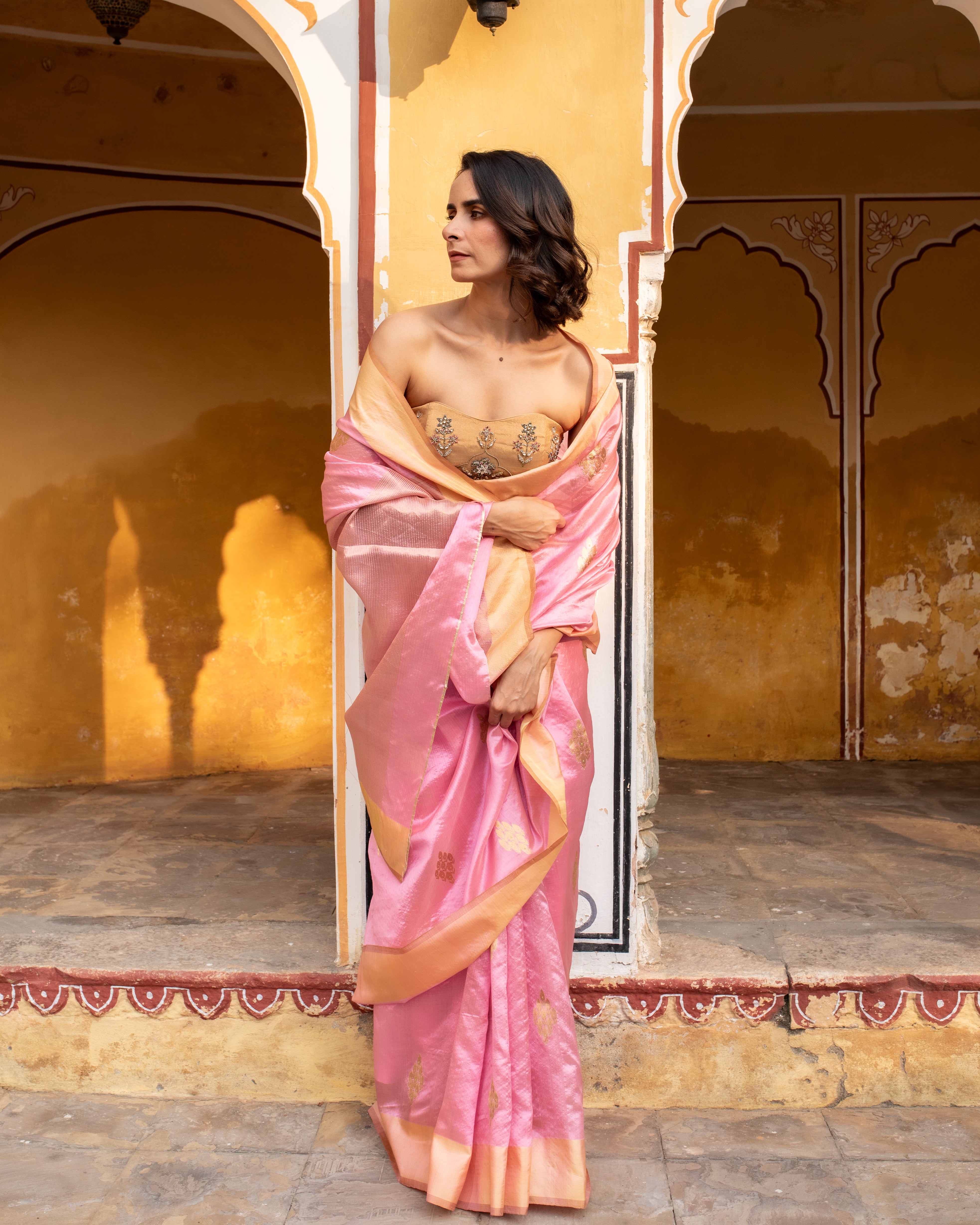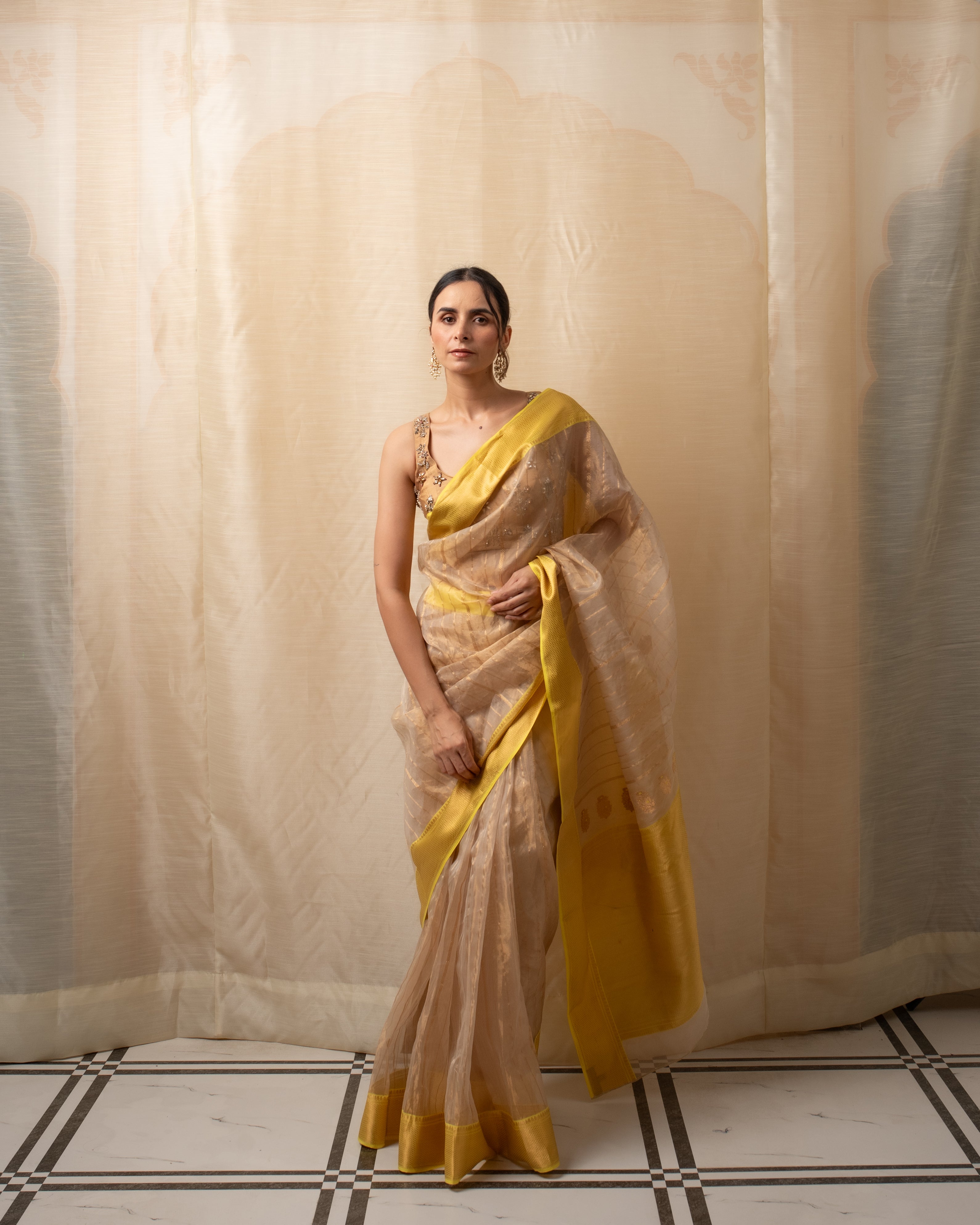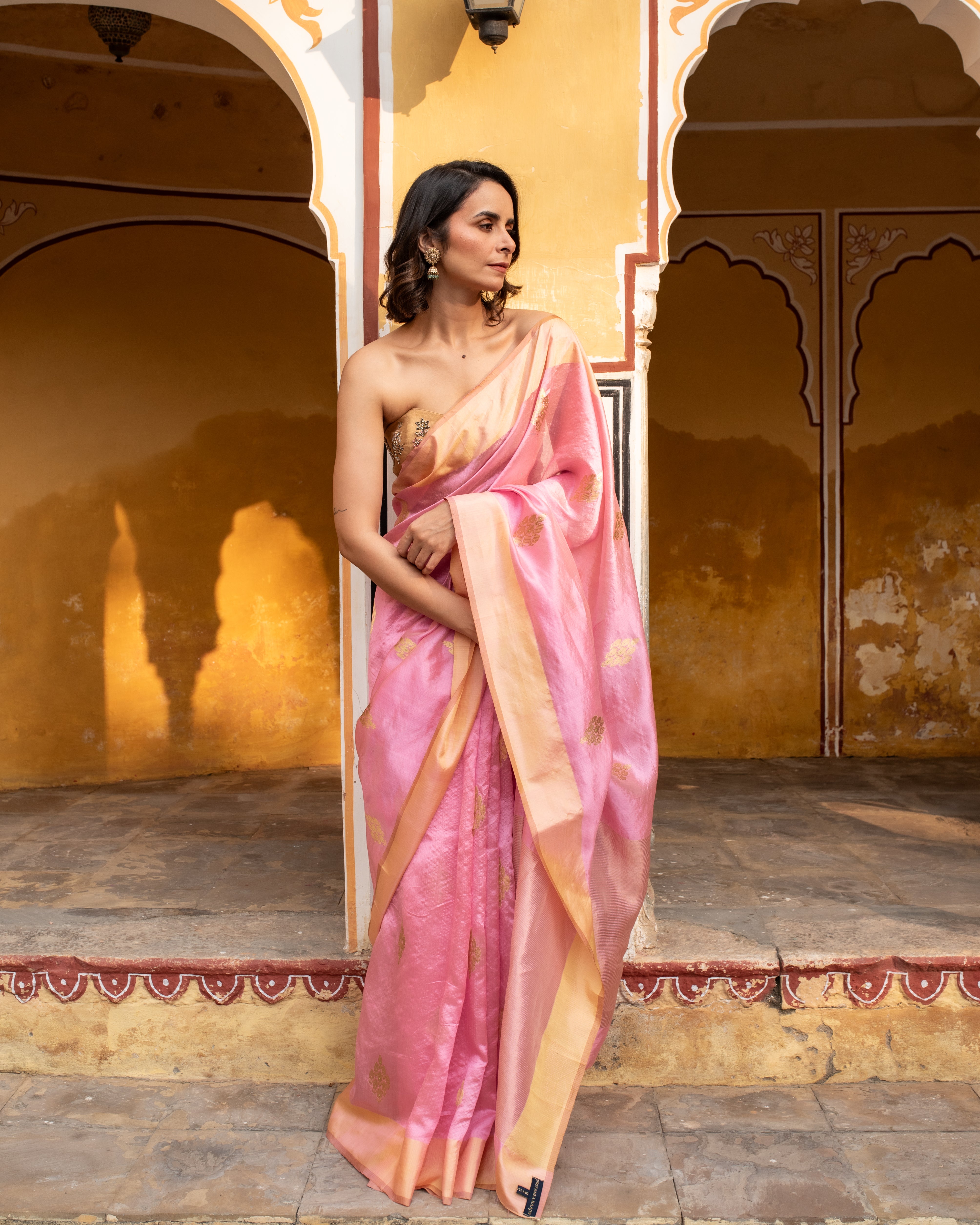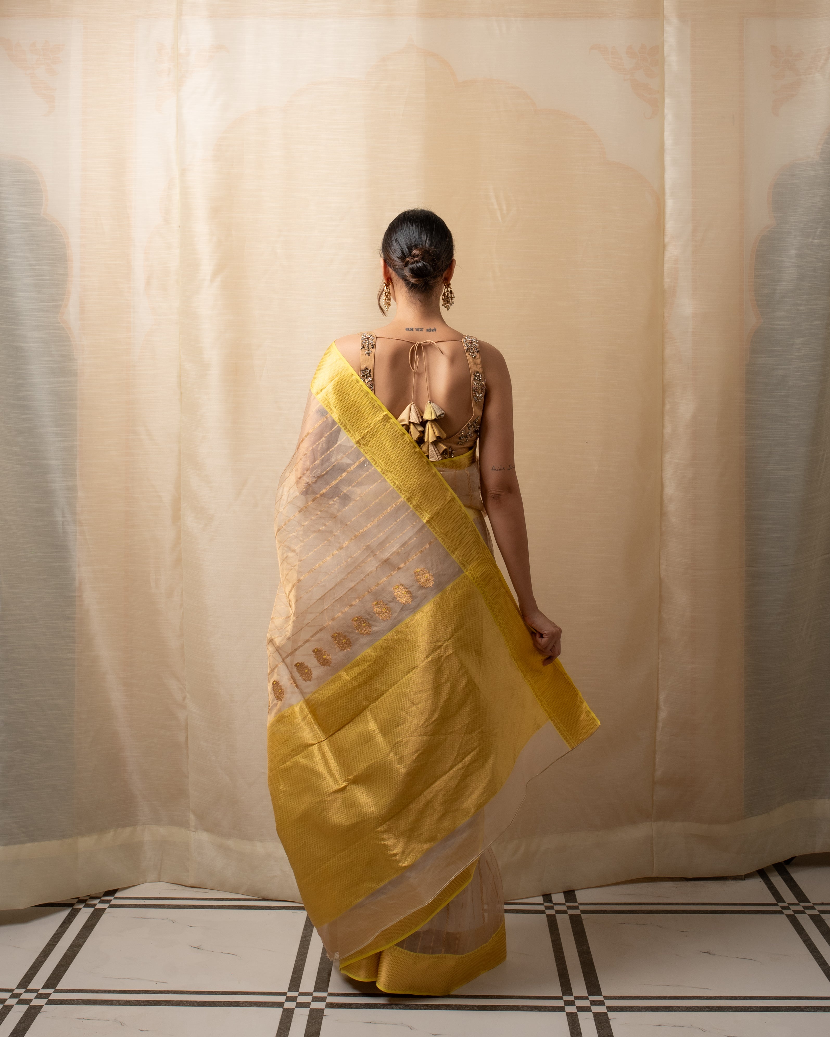 Meena - Gold Silk Chanderi Tissue Saree