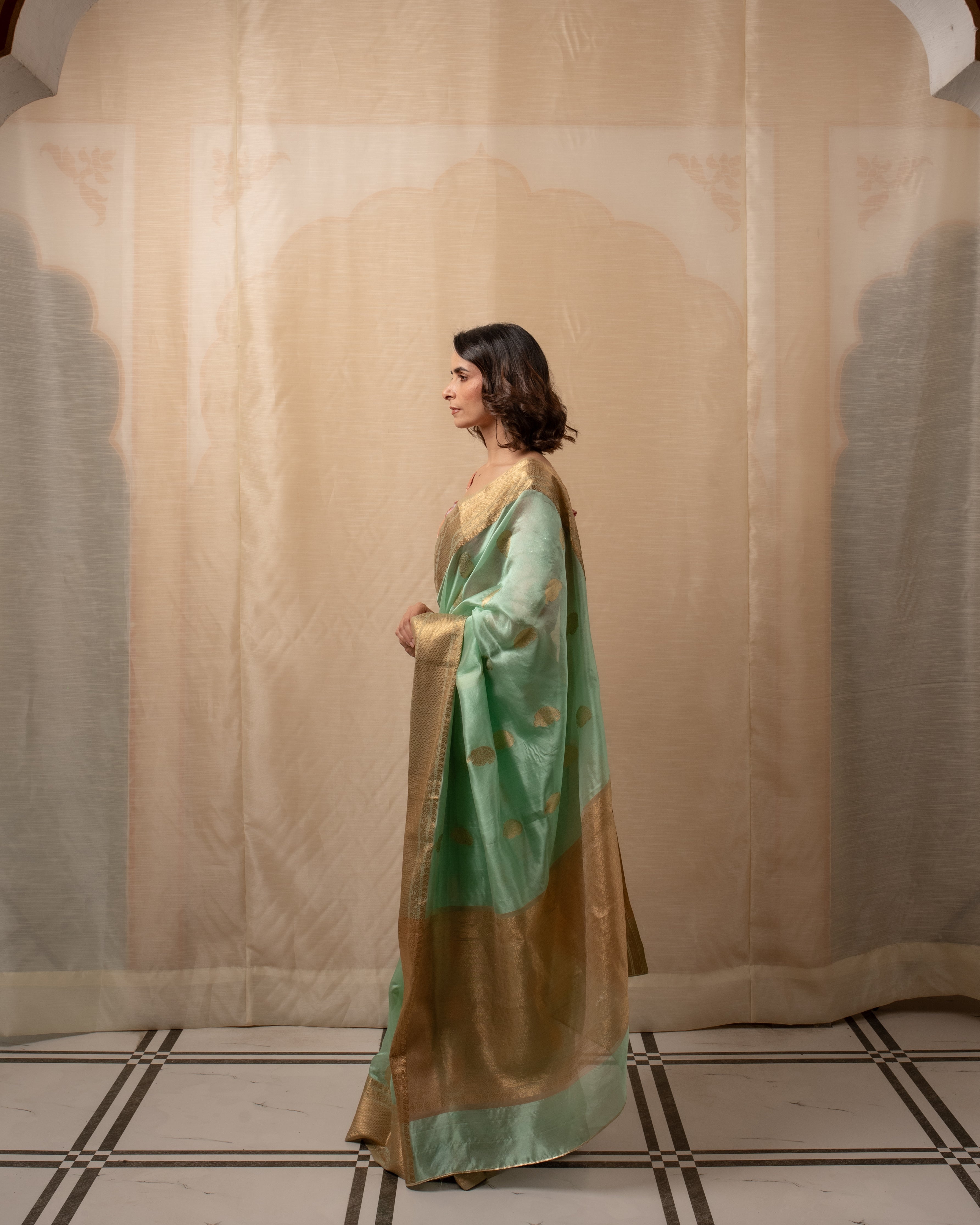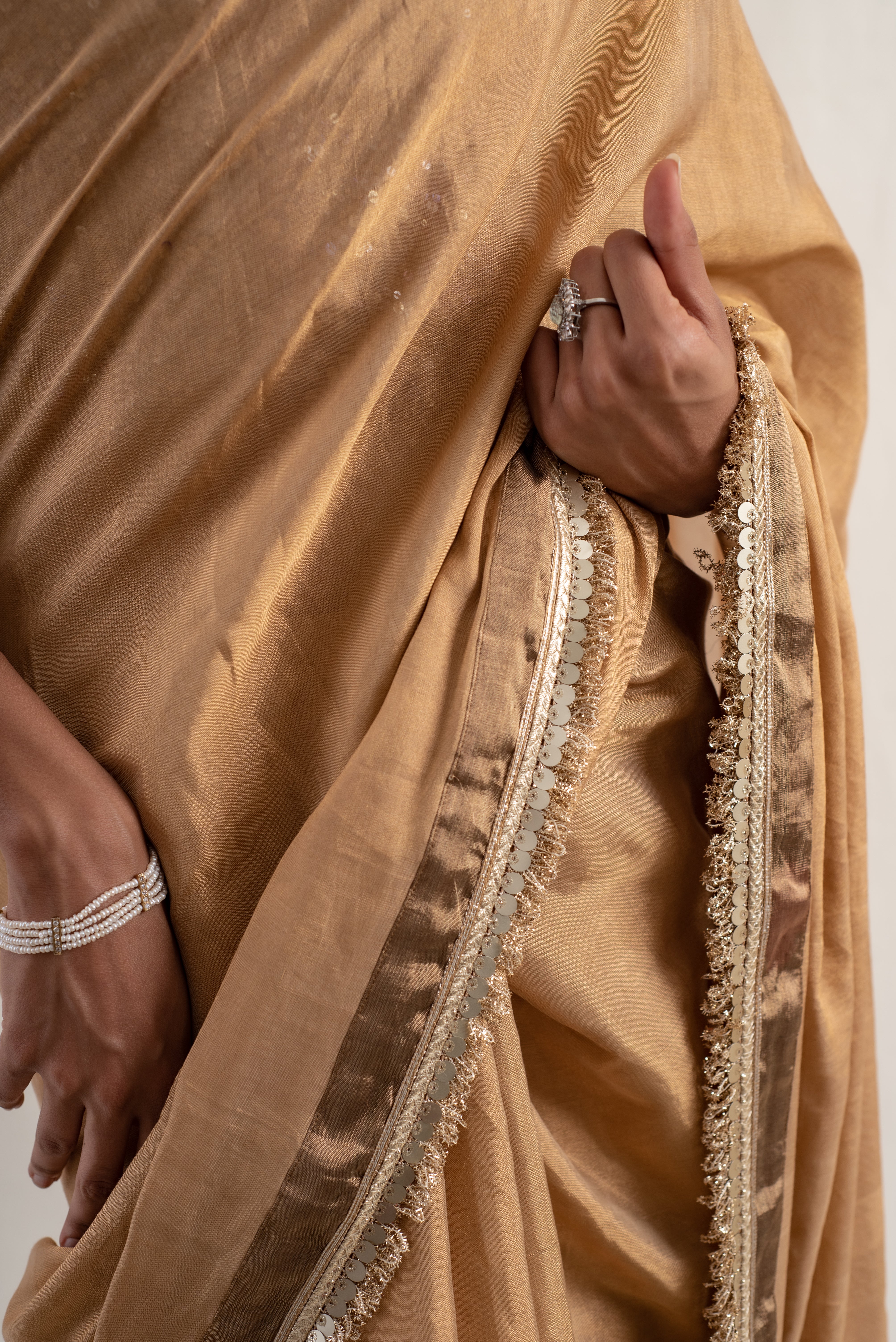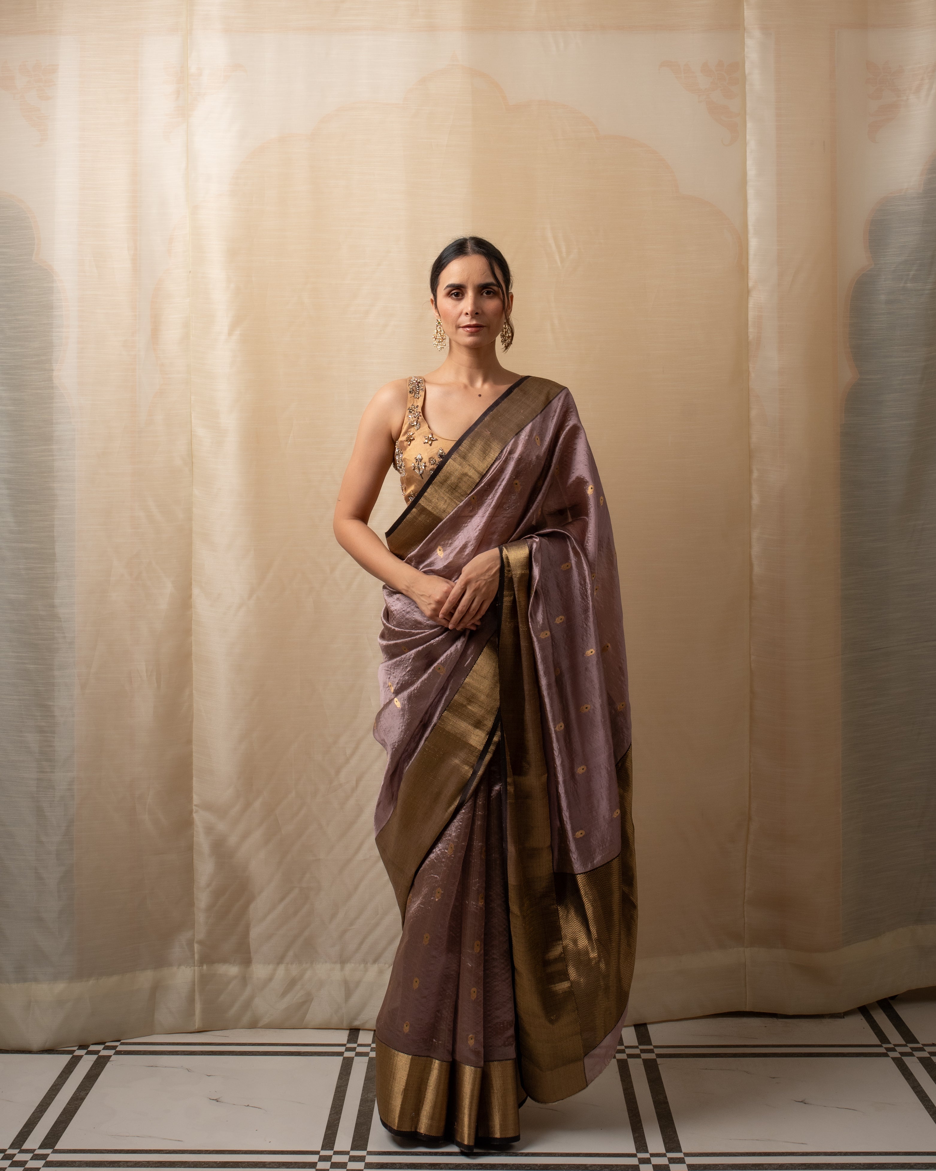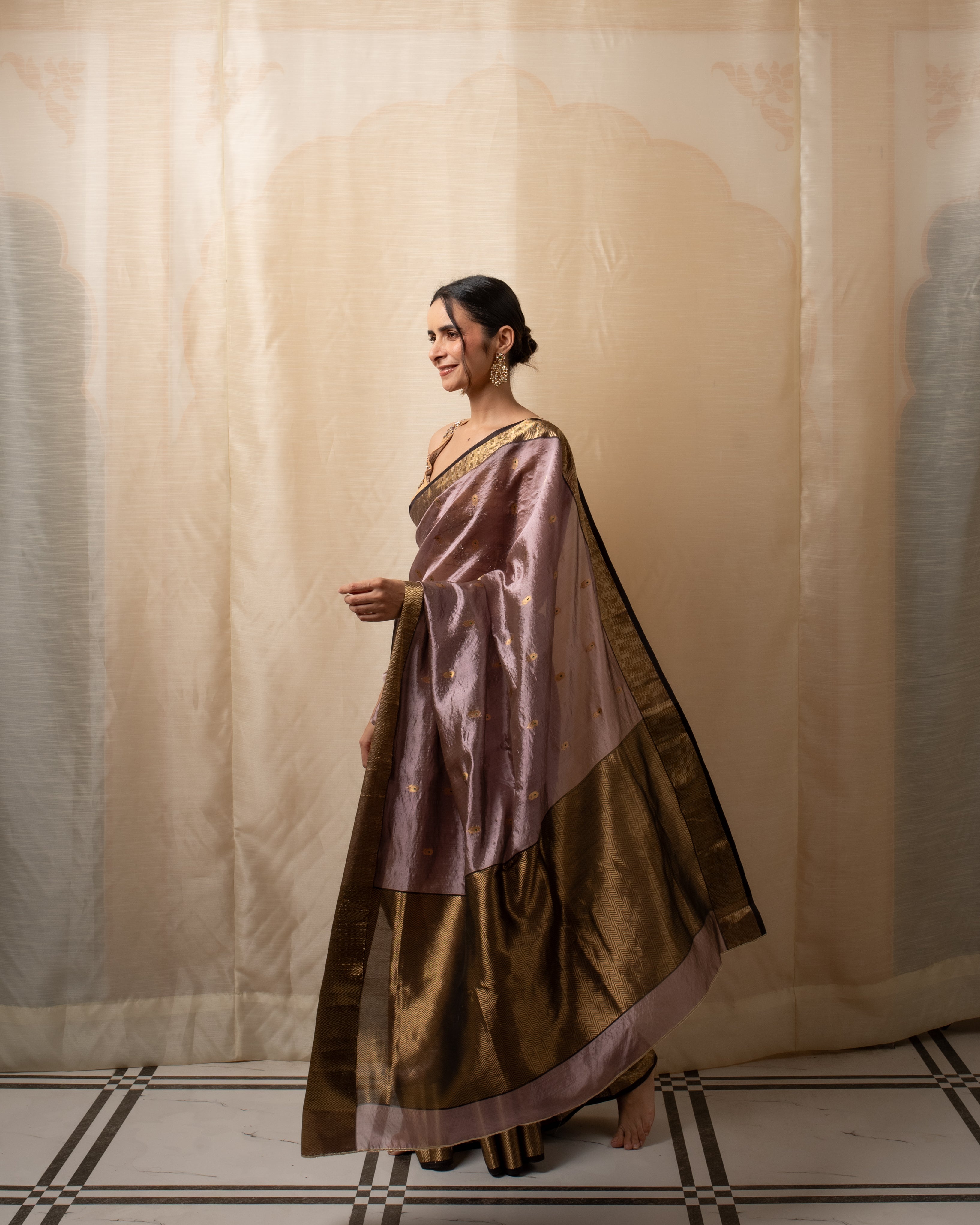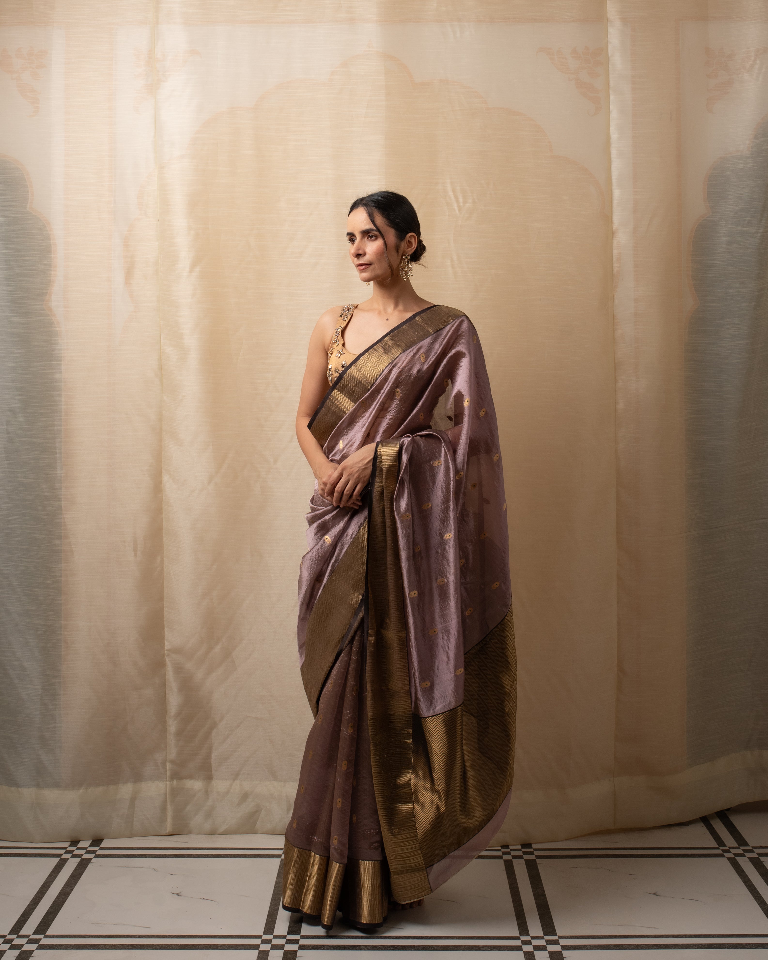 Meena - Gold Silk Chanderi Tissue Saree