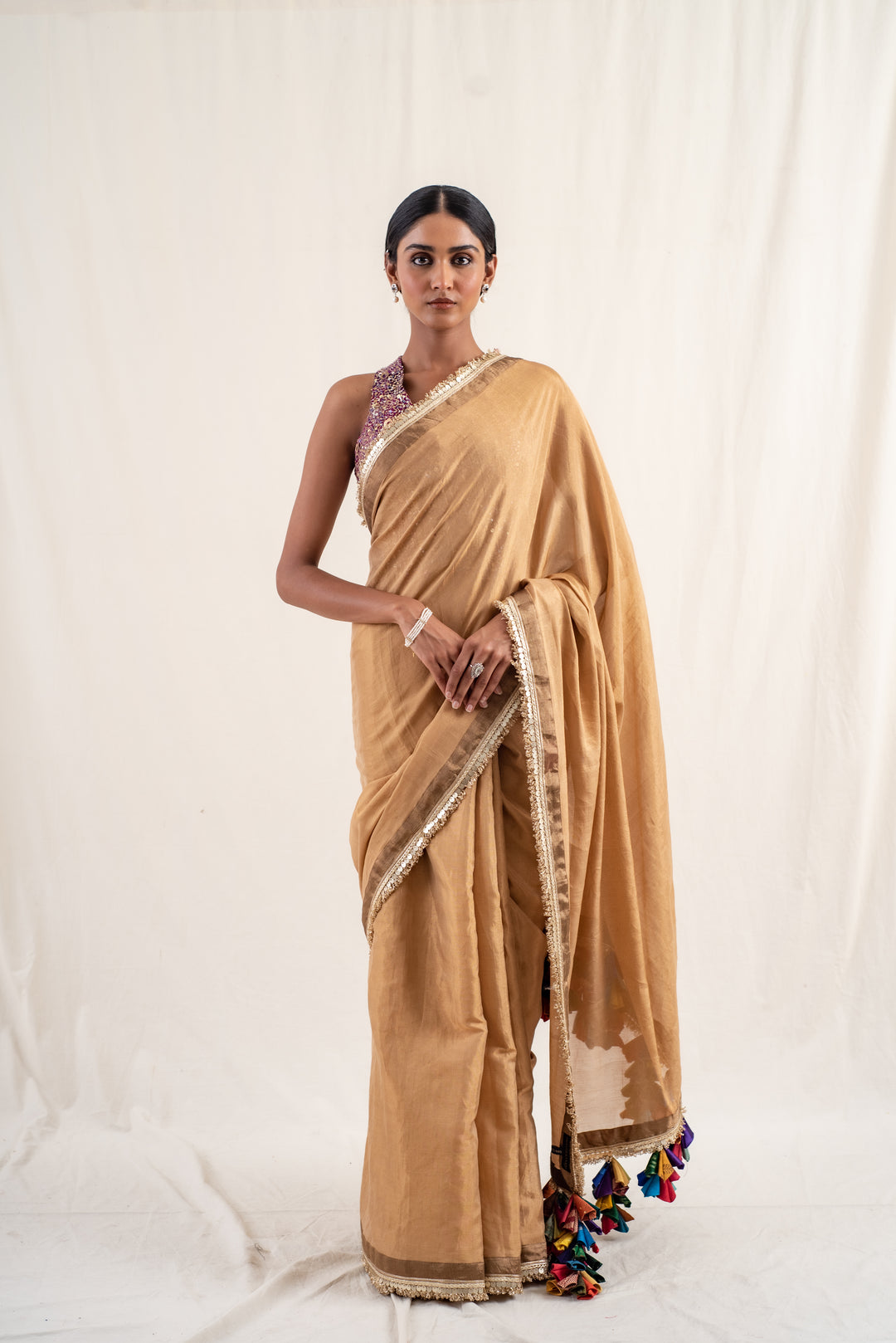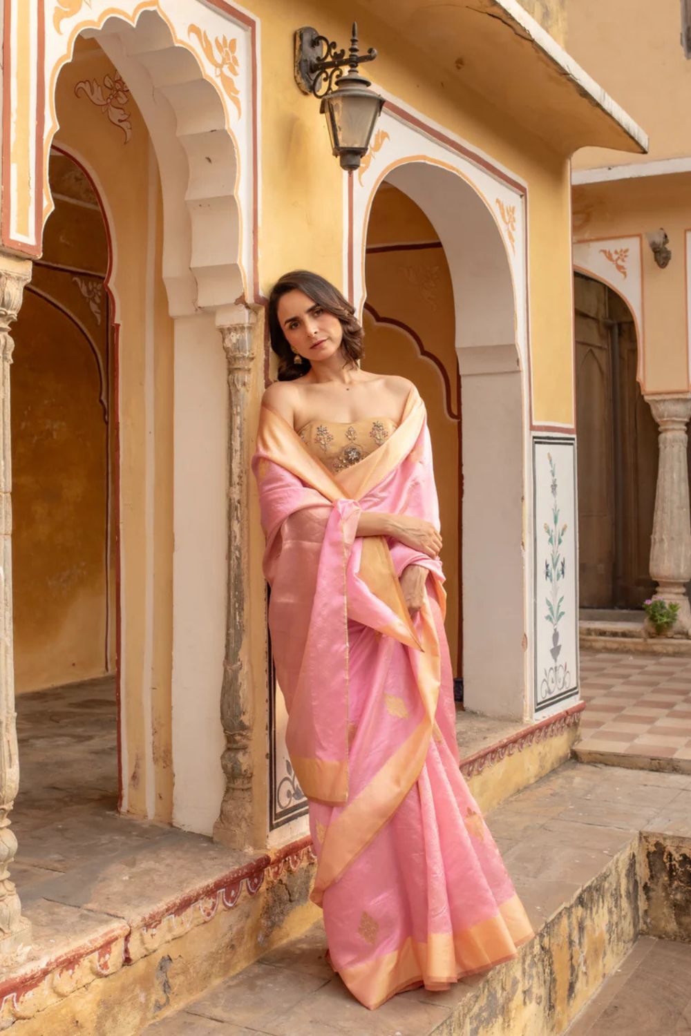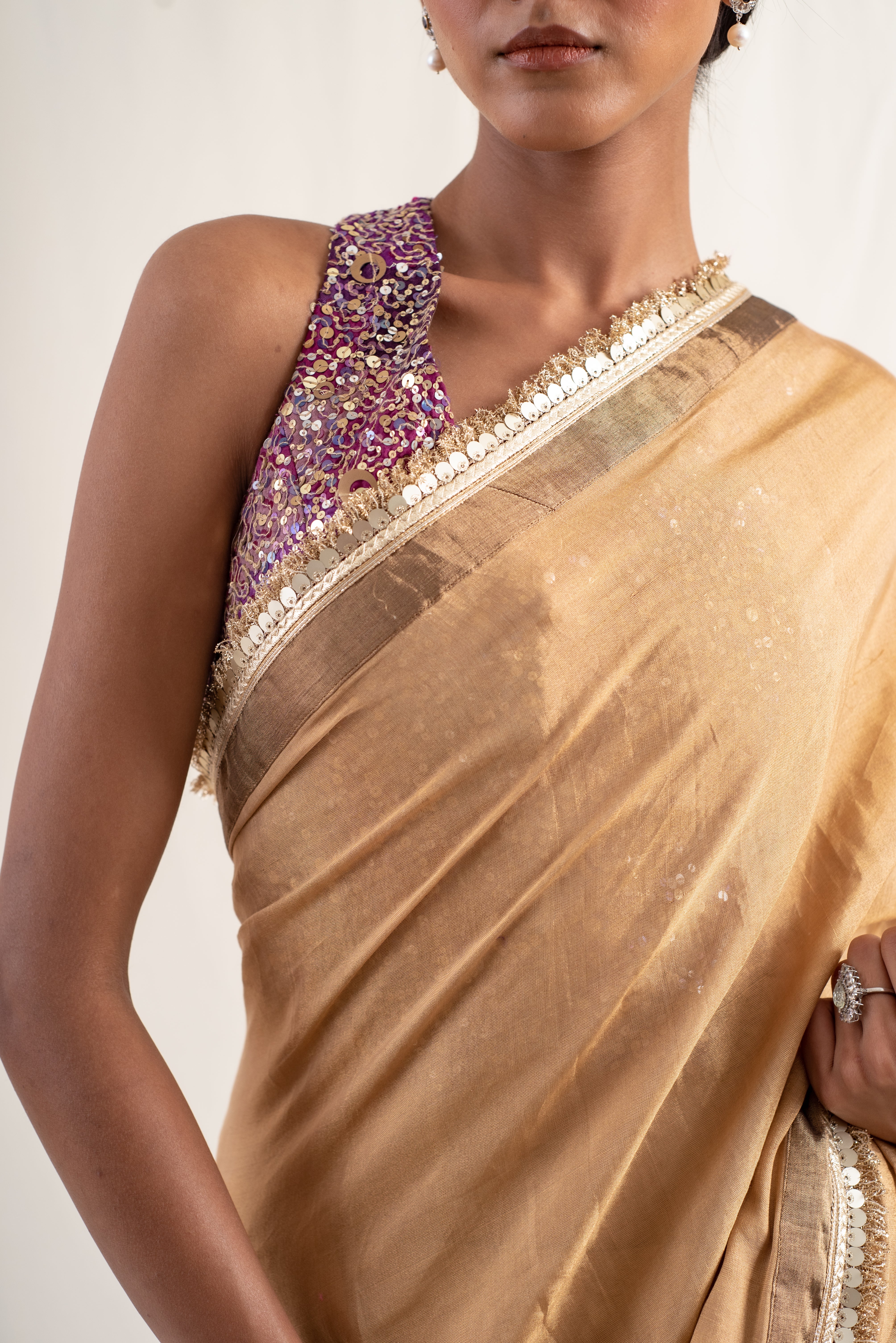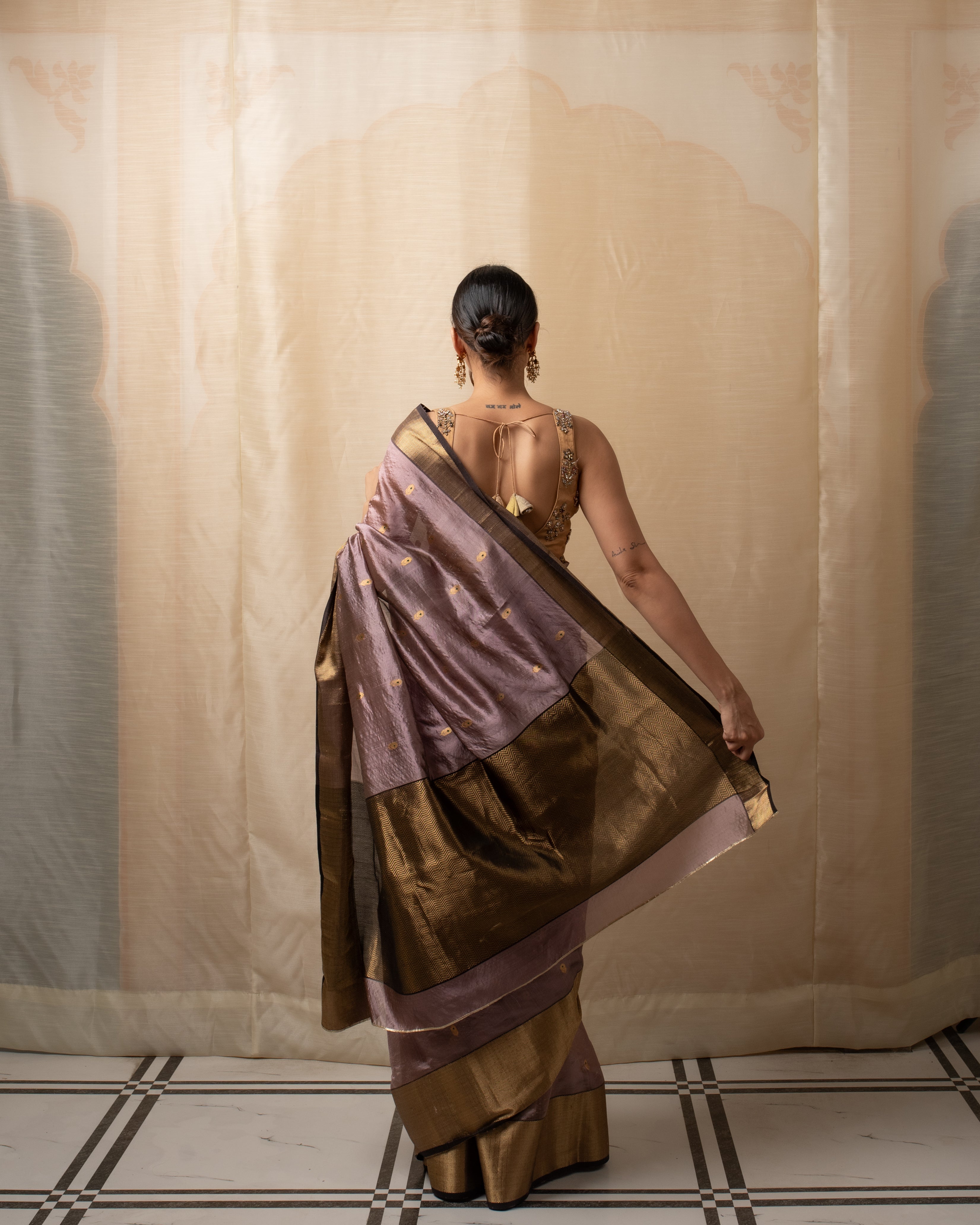 Meena - Gold Silk Chanderi Tissue Saree