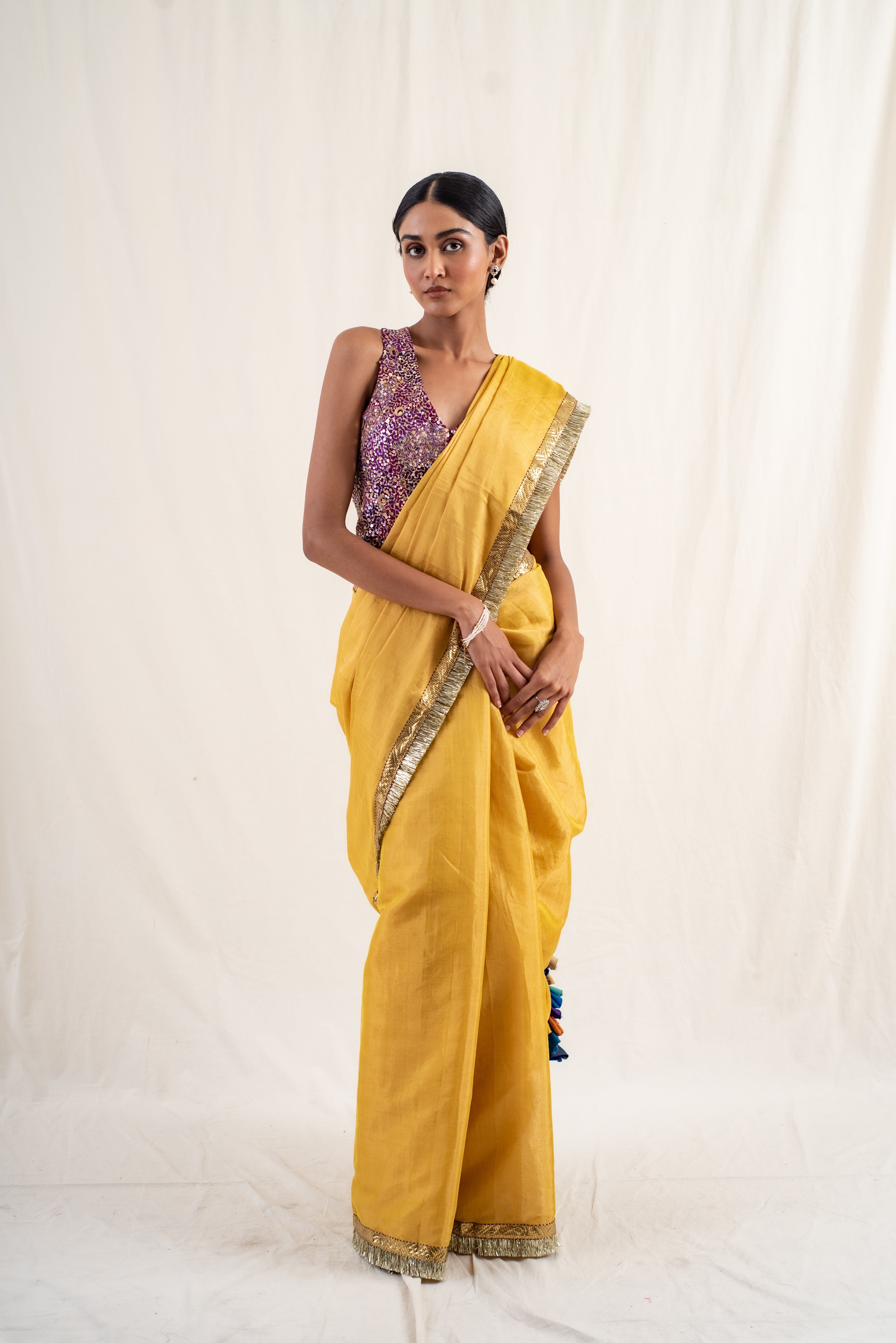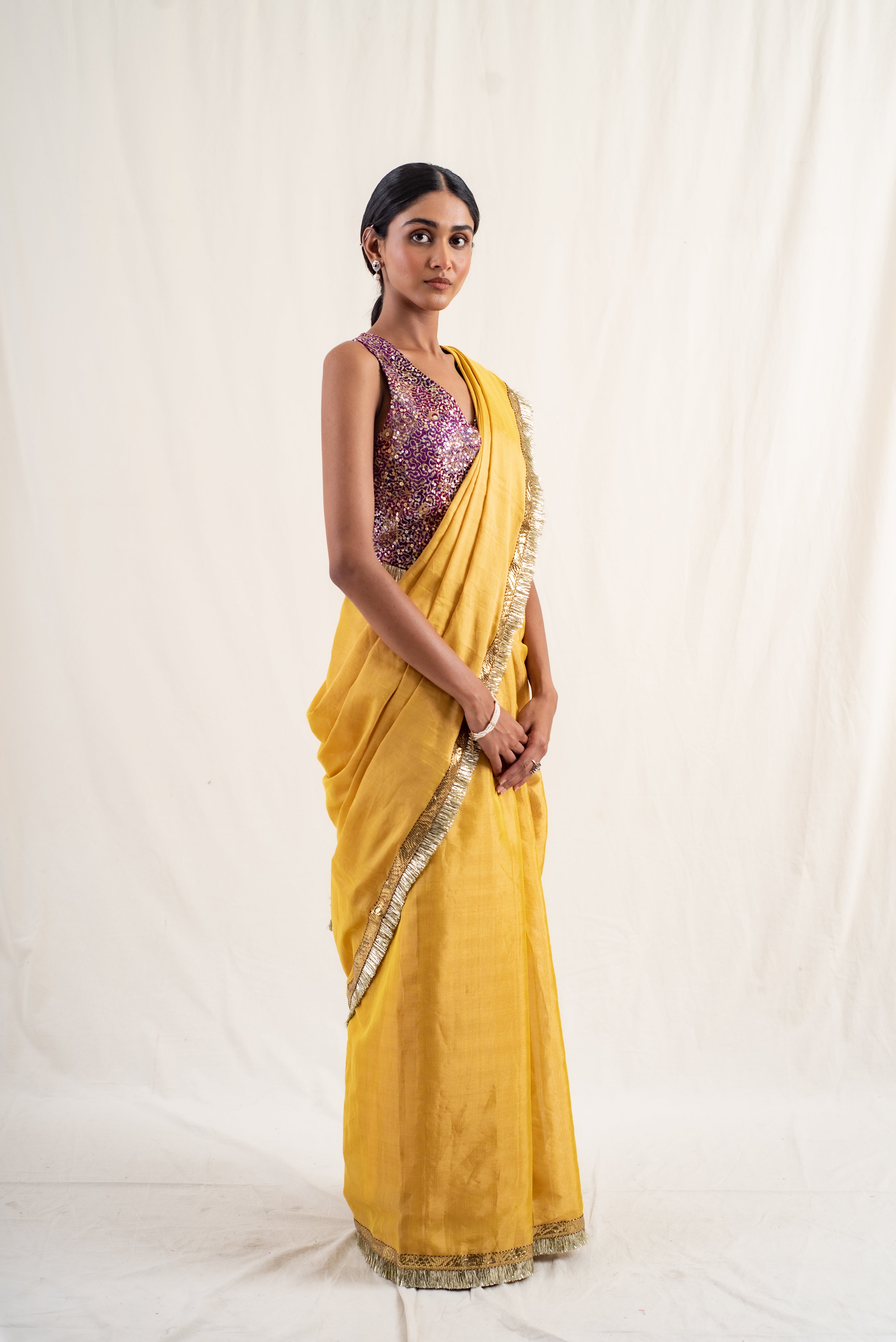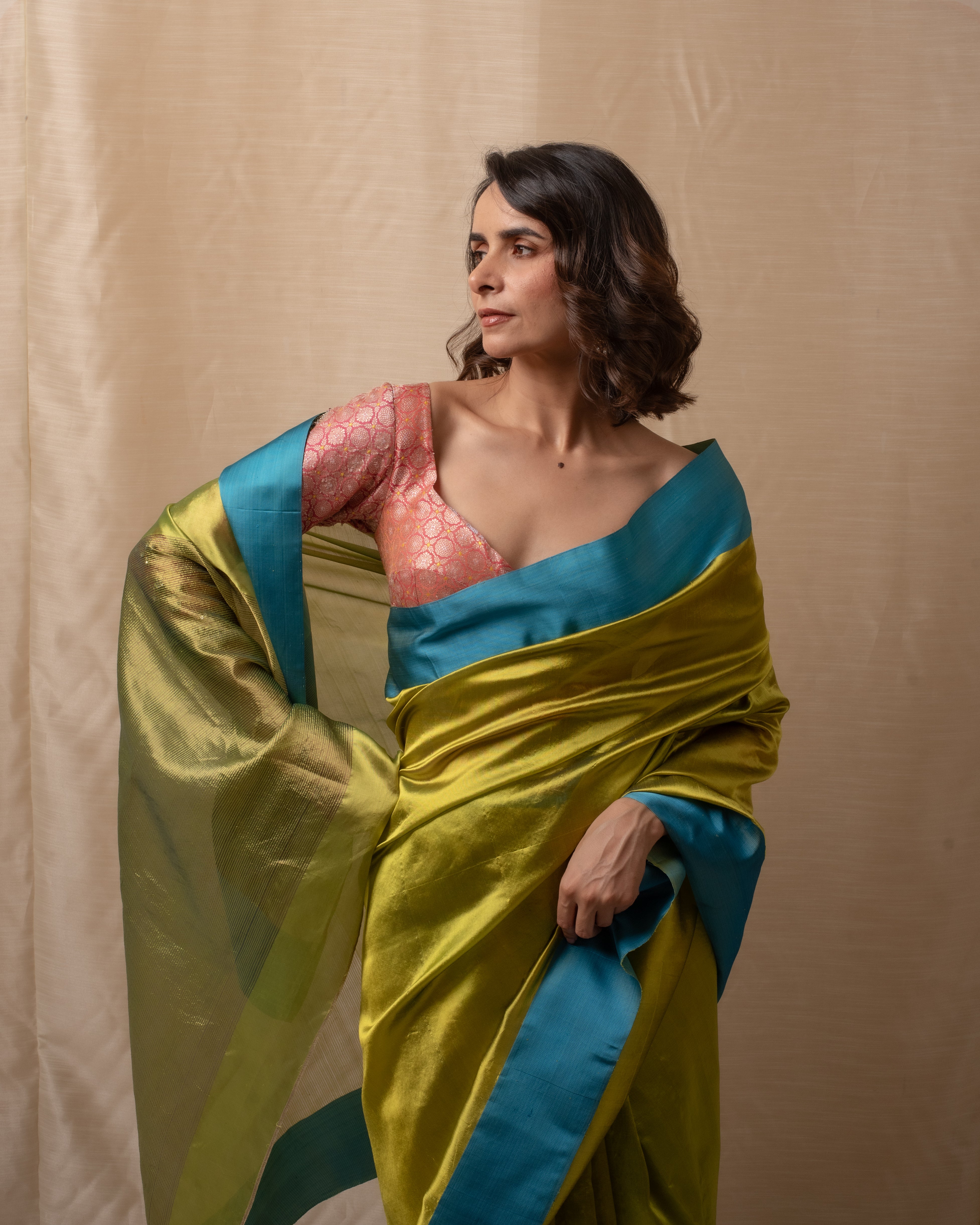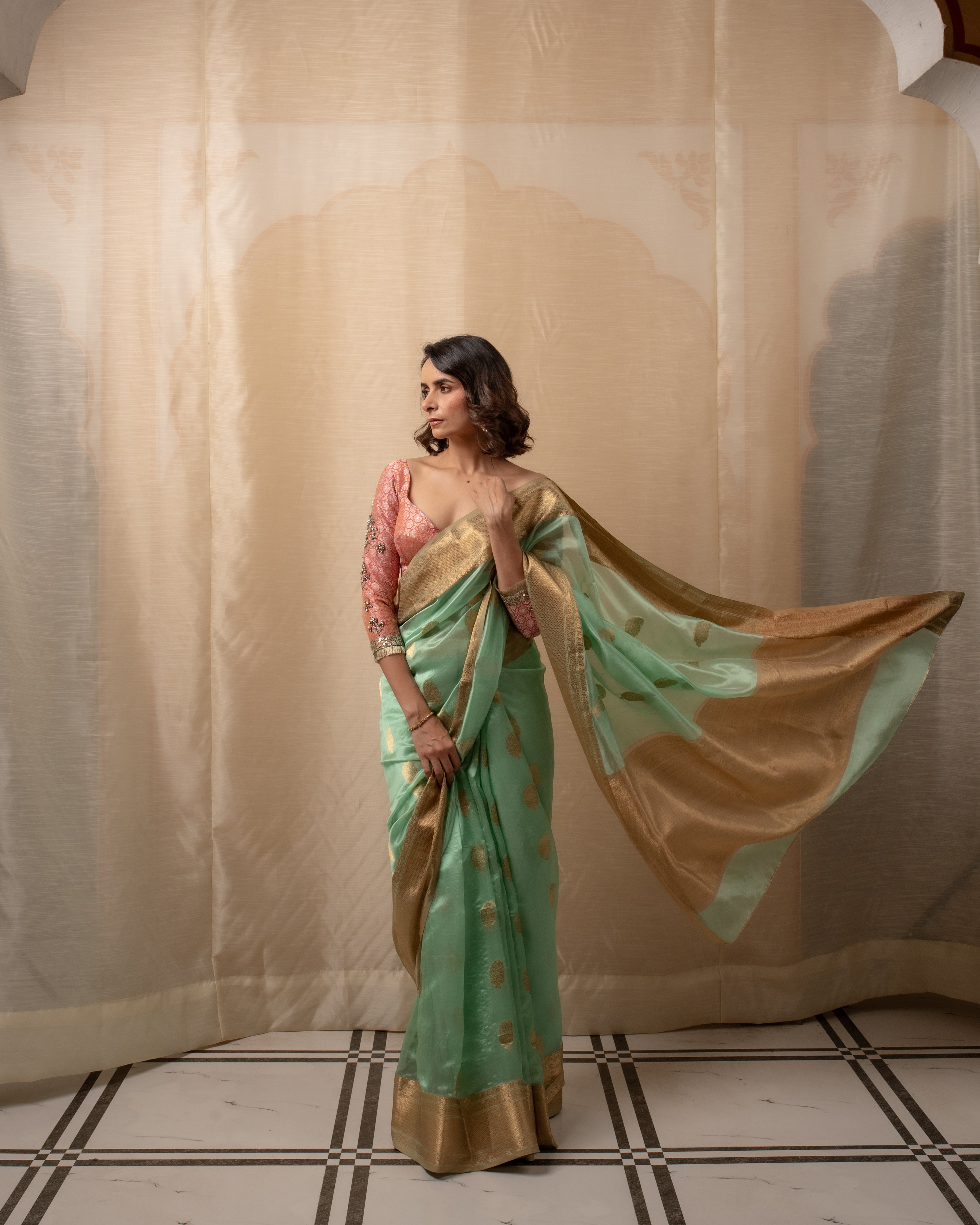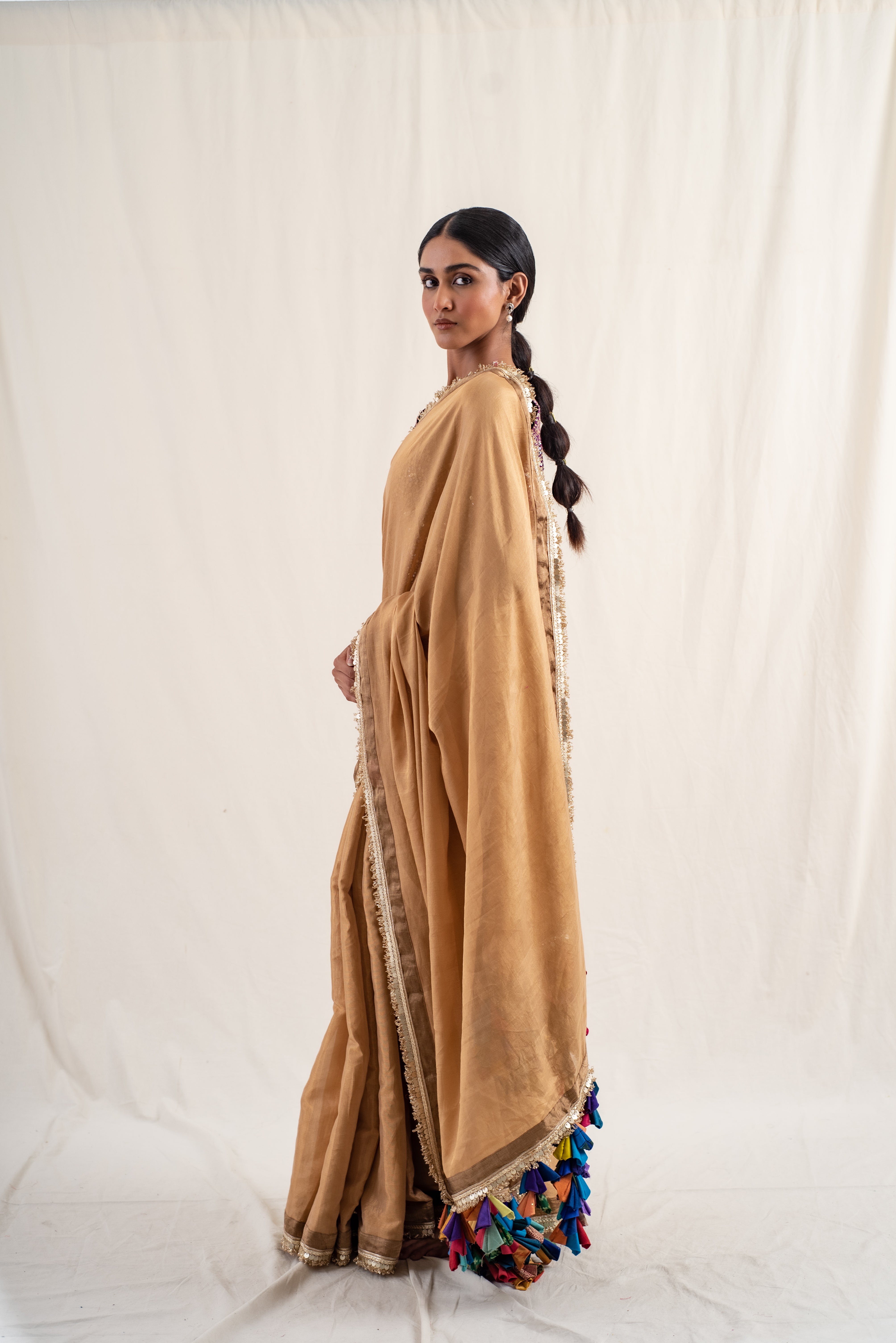 Meena - Gold Silk Chanderi Tissue Saree