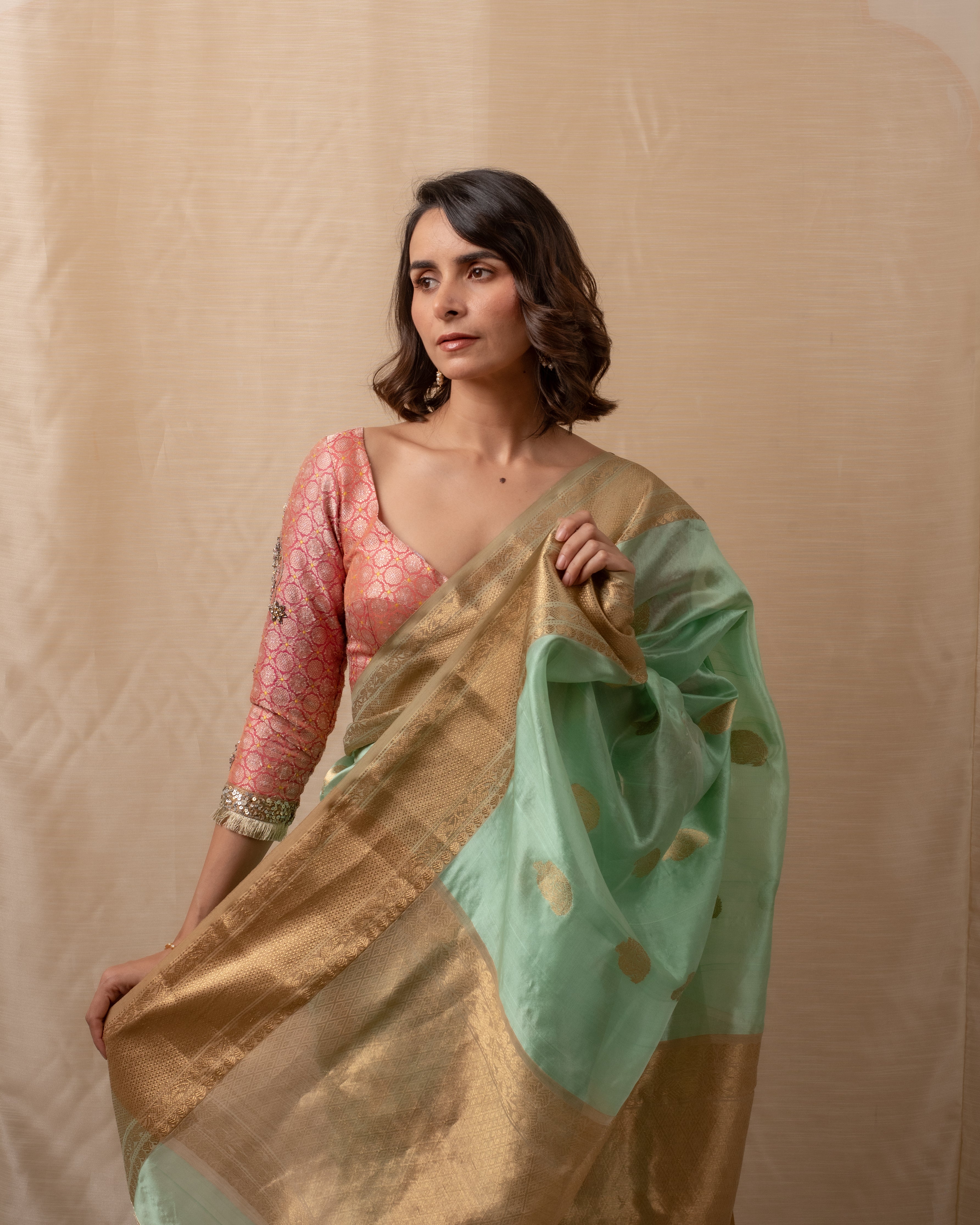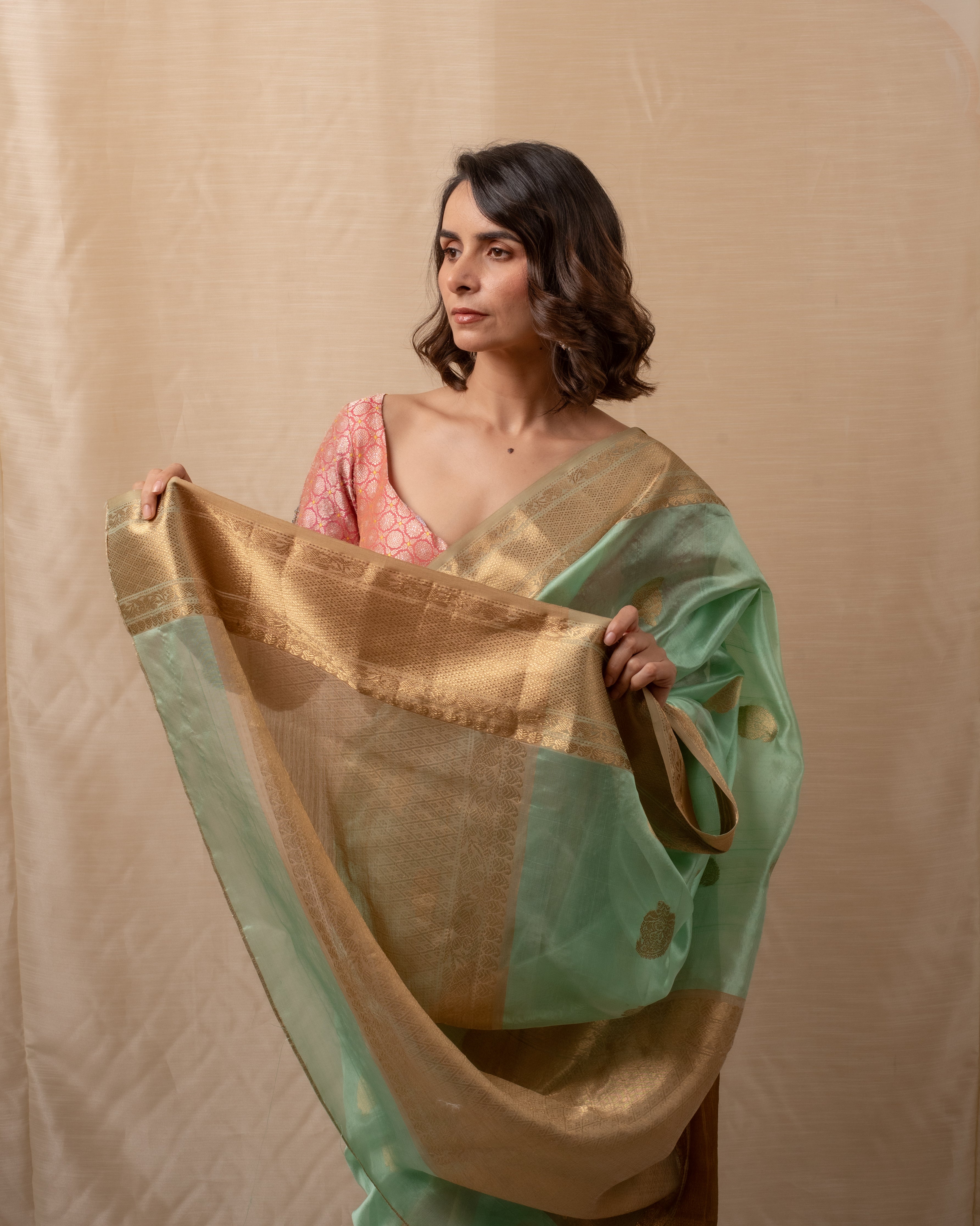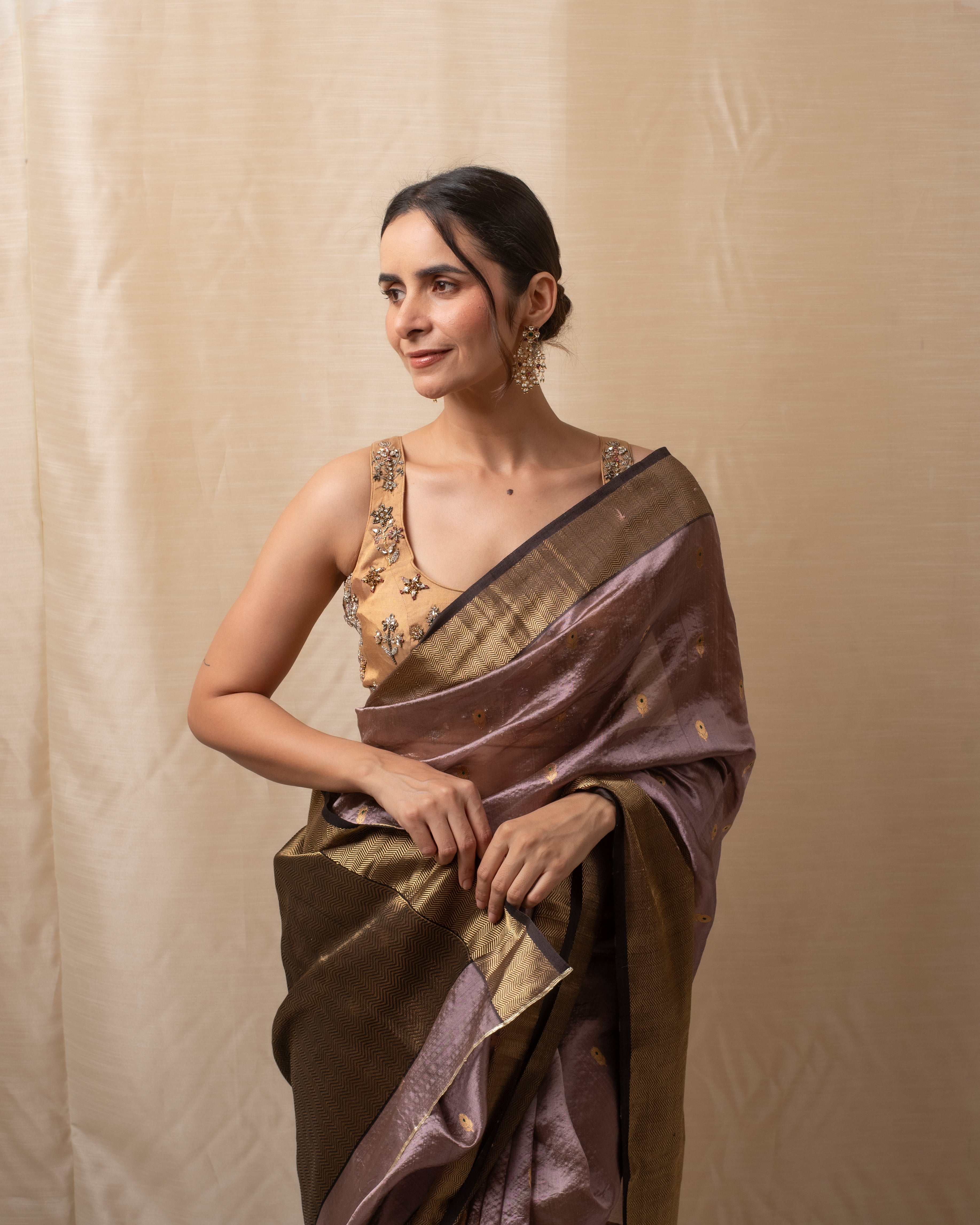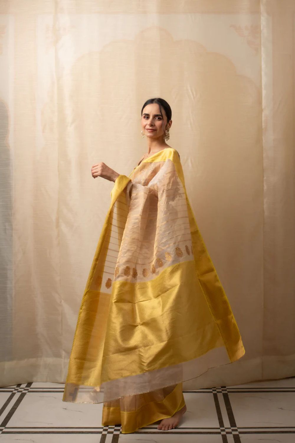 Sonara - Beige Gold Silk Chanderi Saree