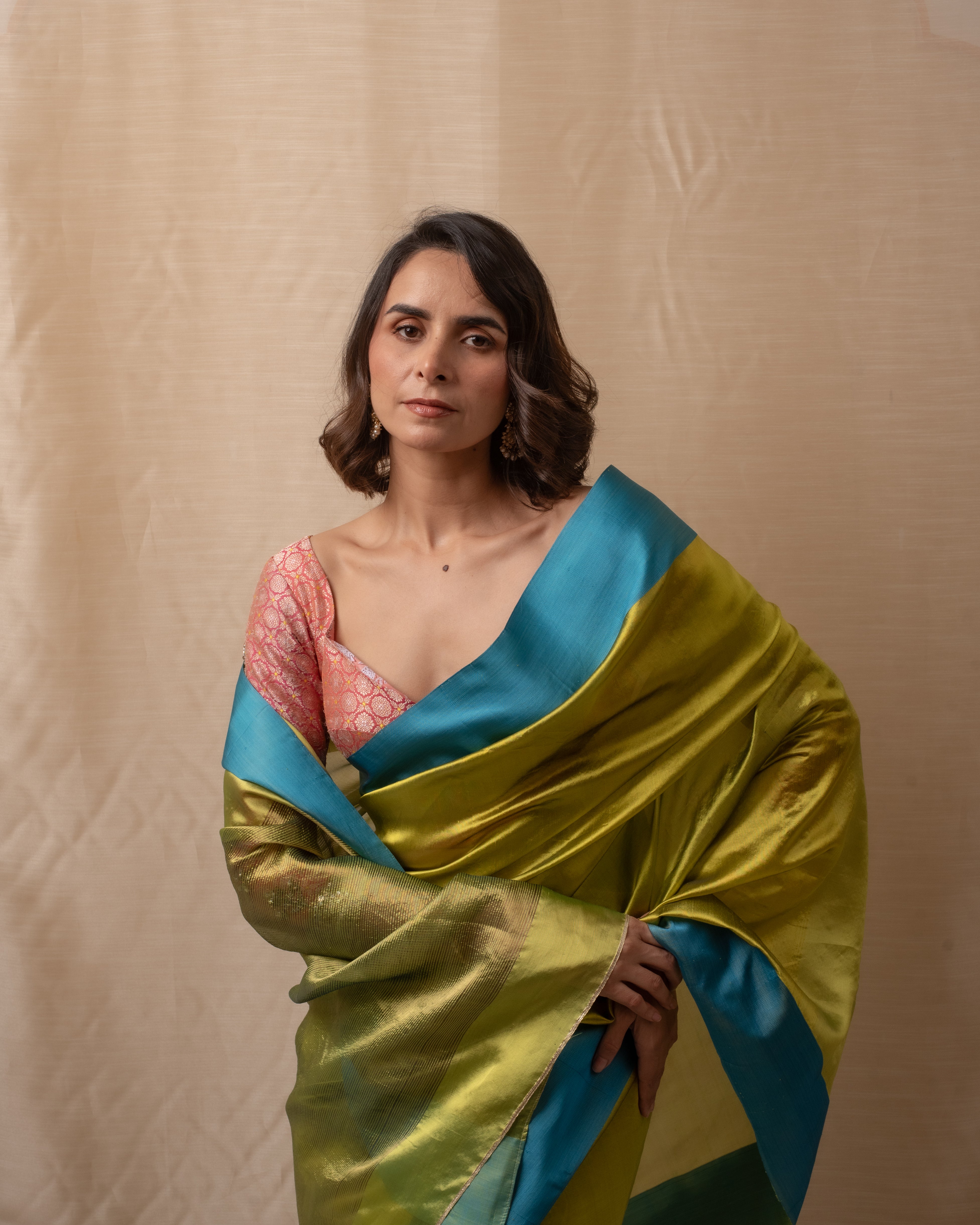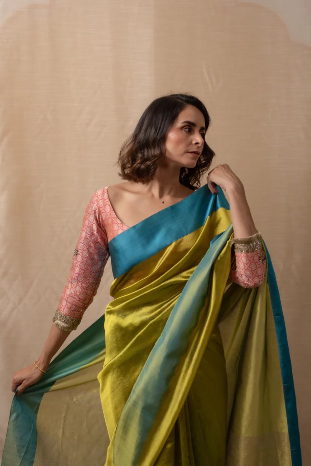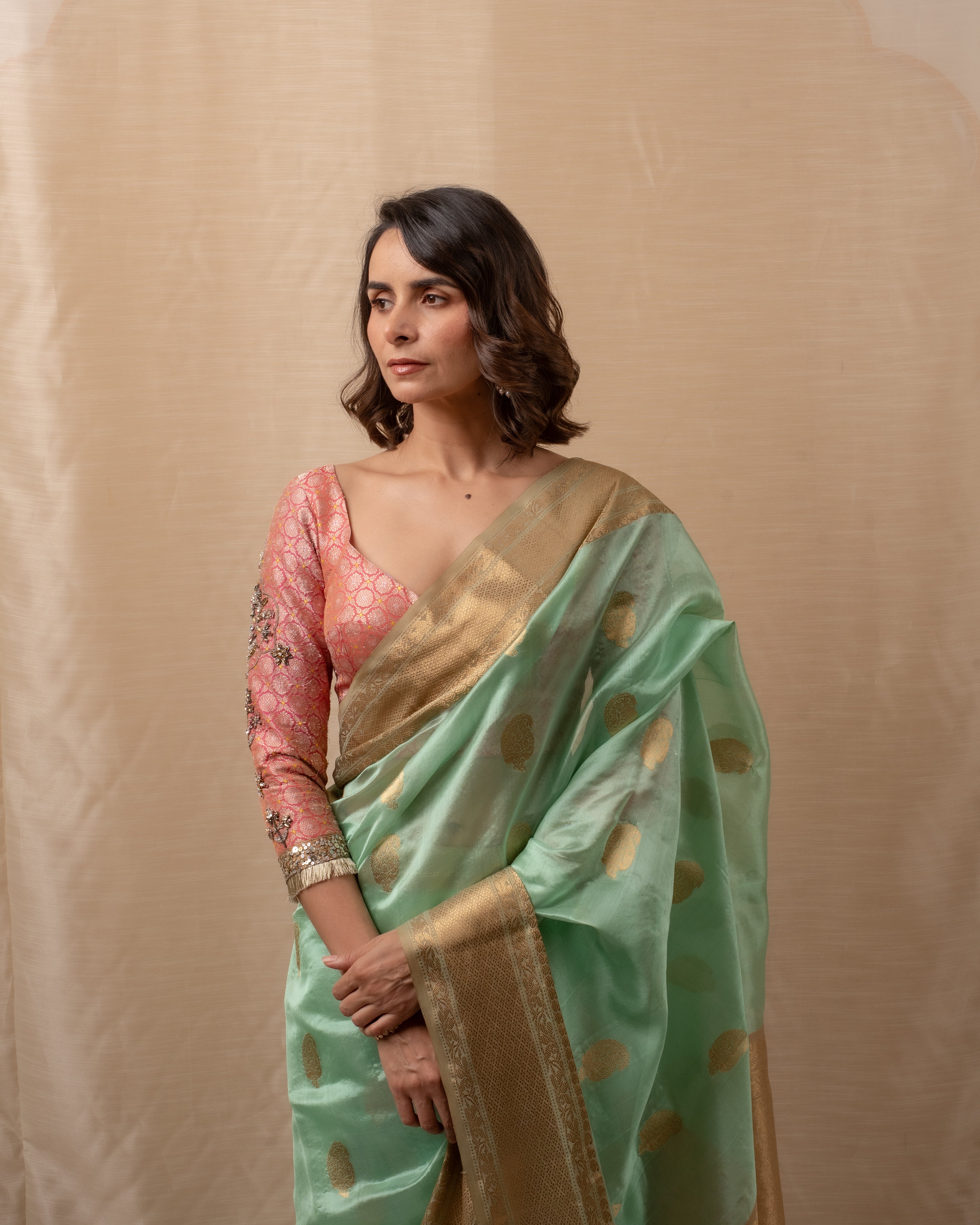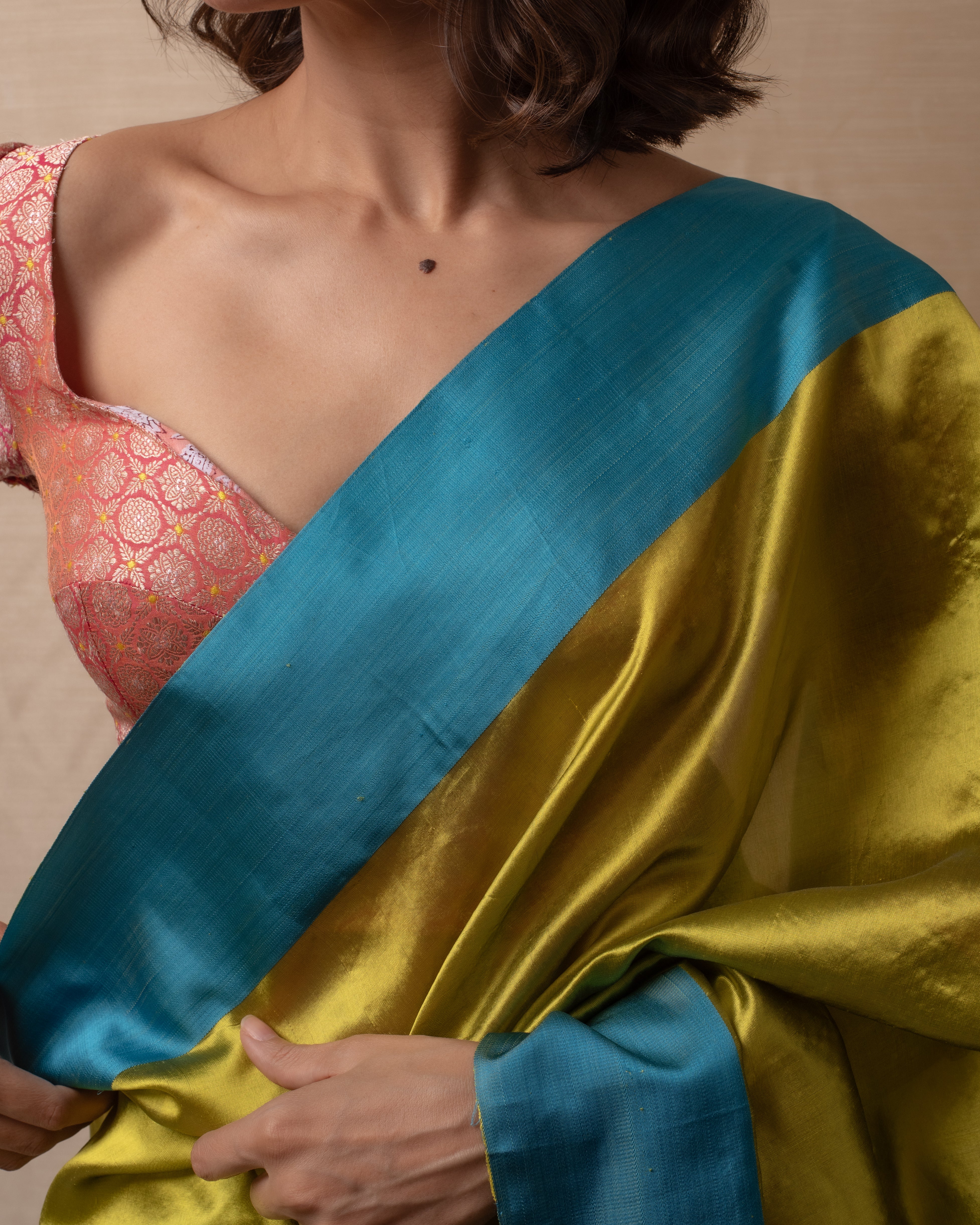 Sonara - Beige Gold Silk Chanderi Saree