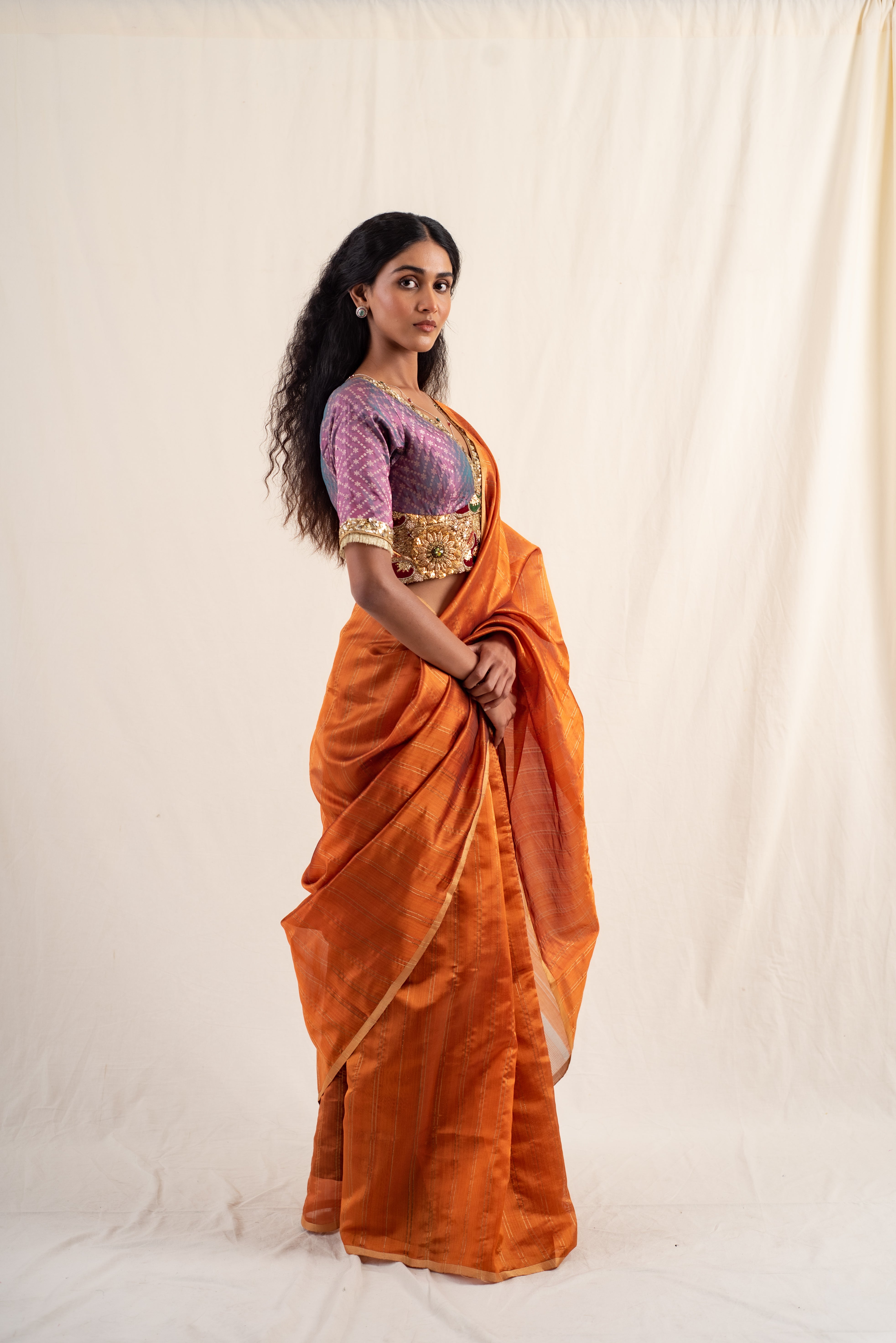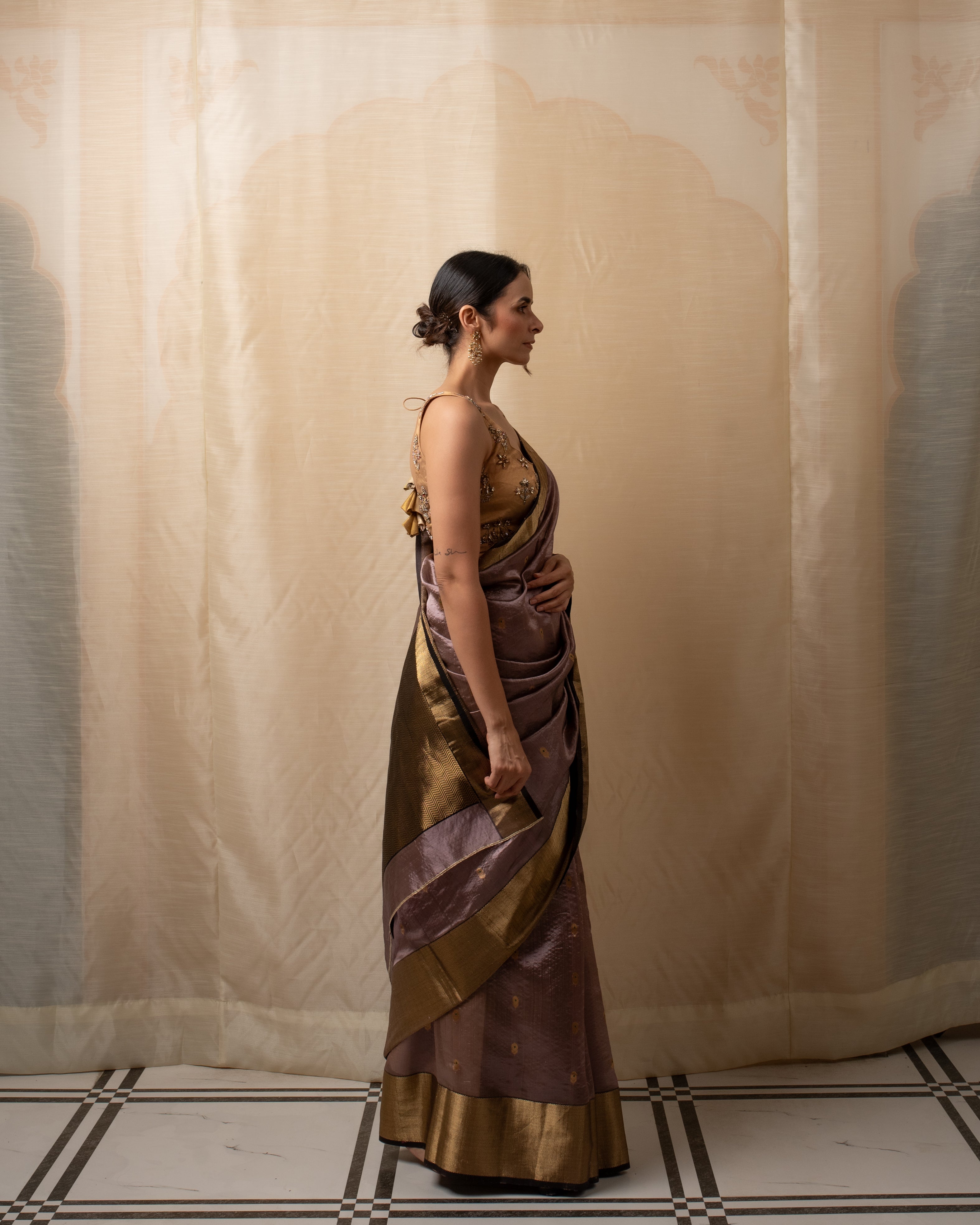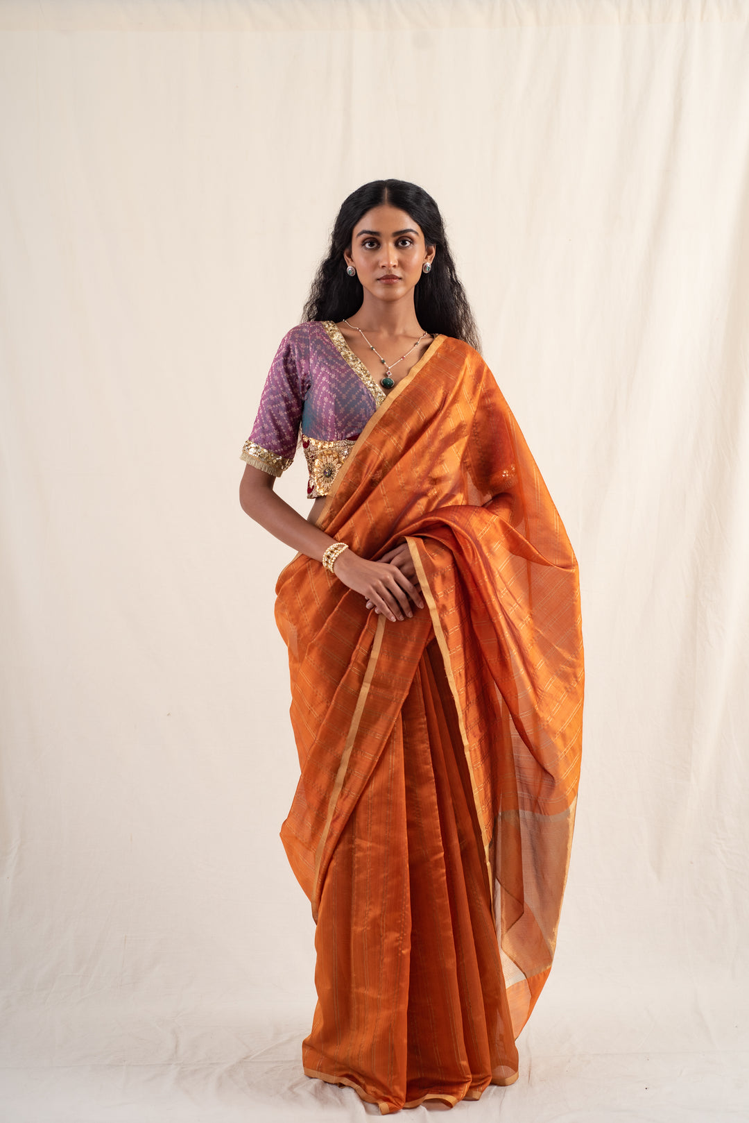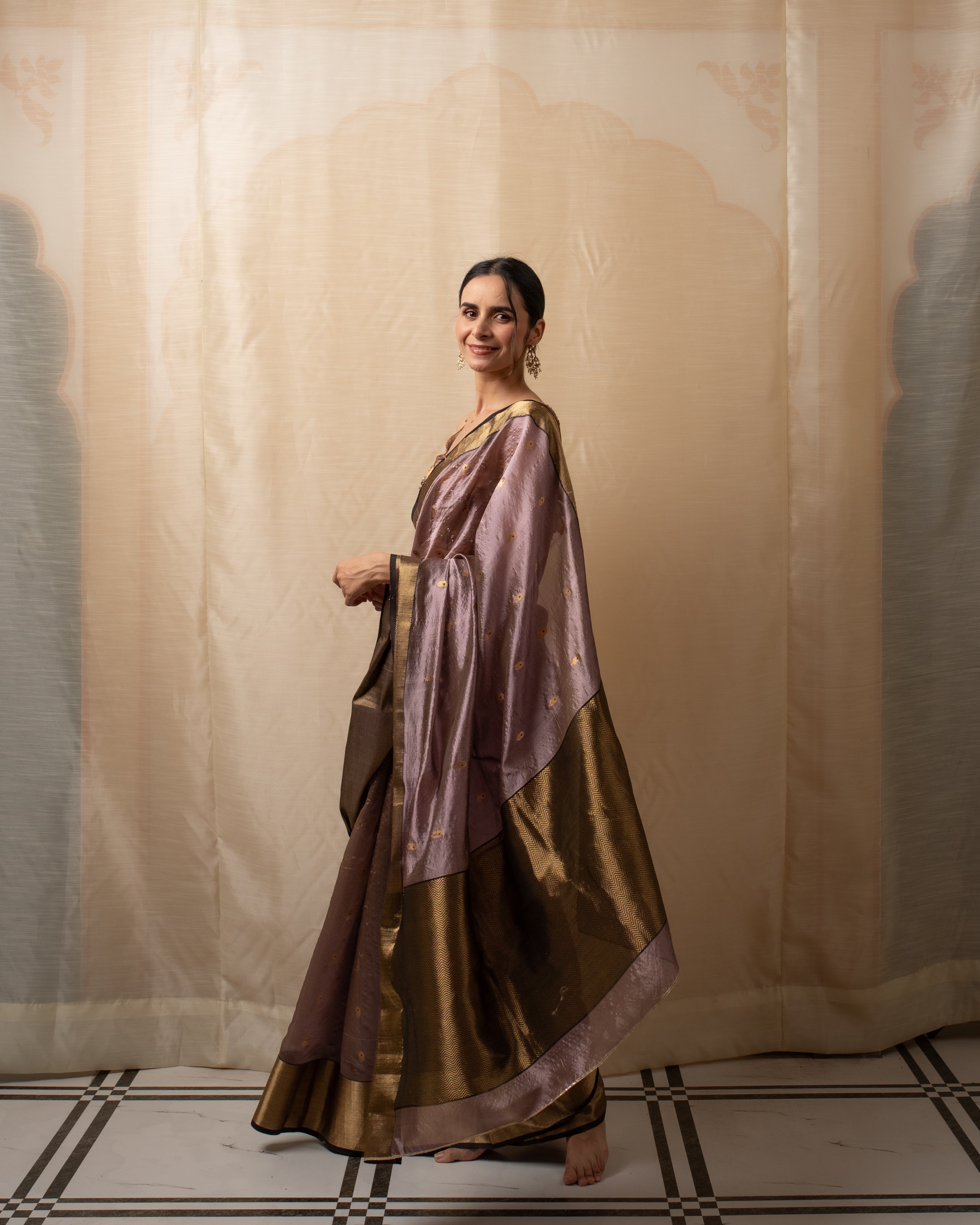 Janaki- Copper Purple Silk Chanderi Saree