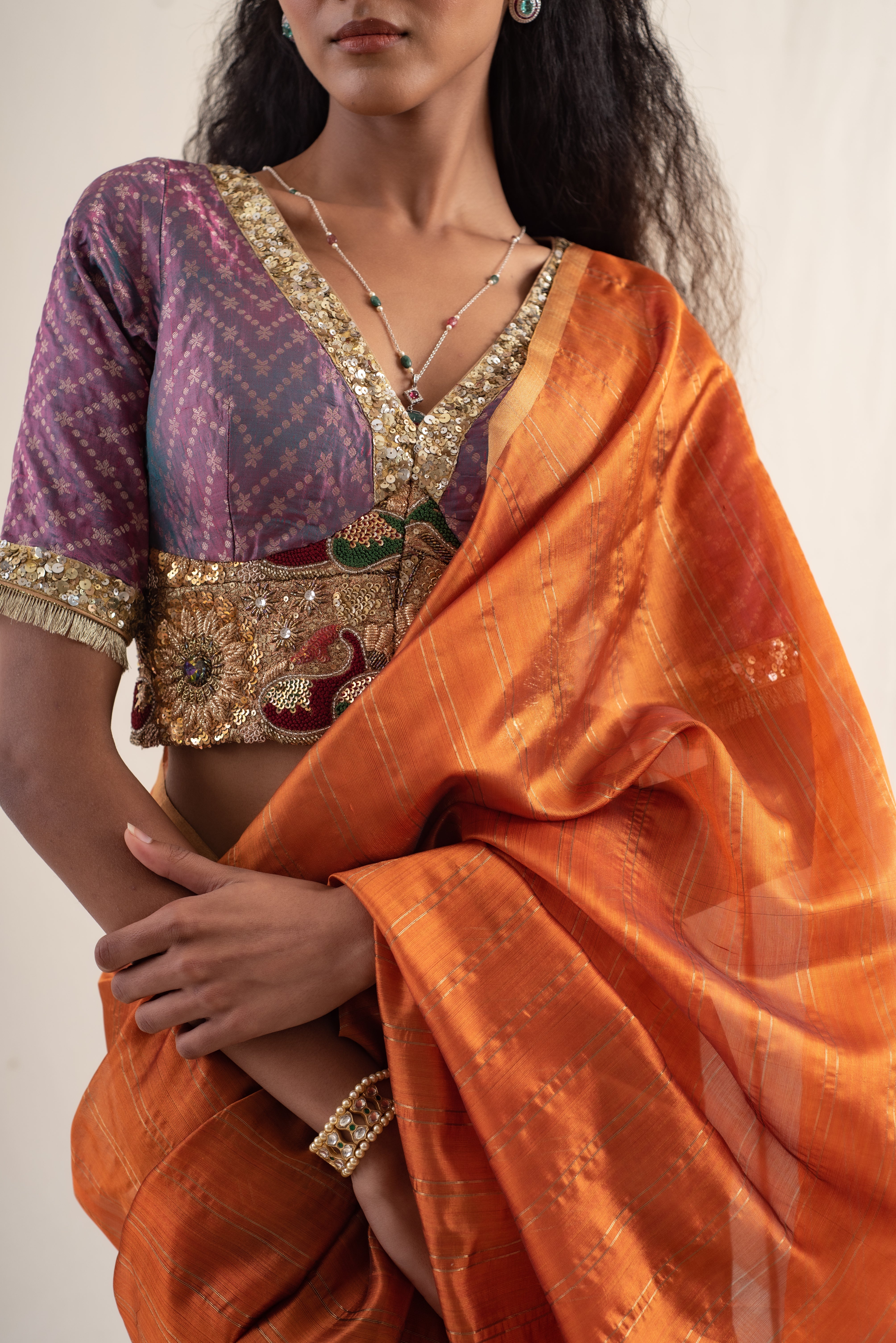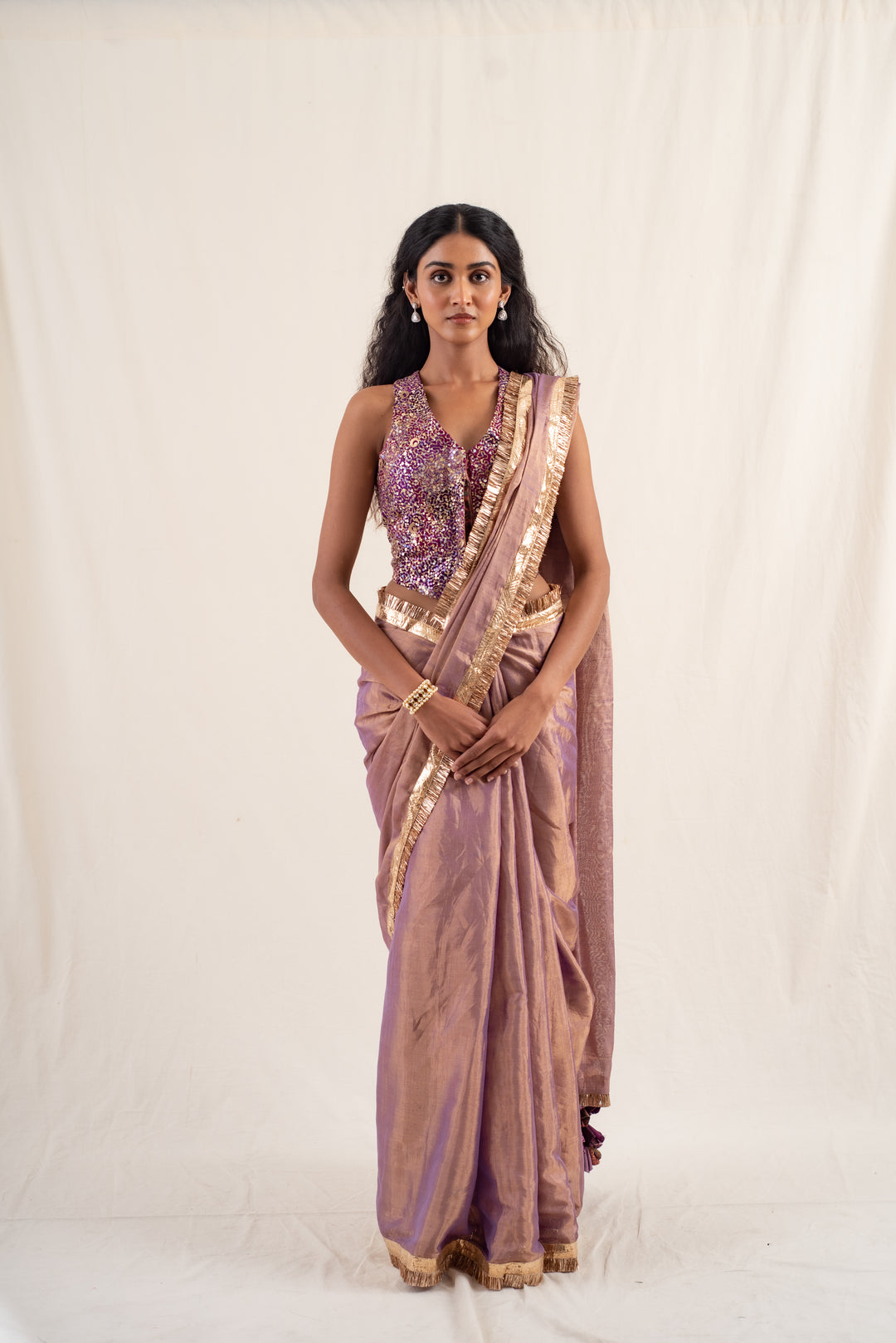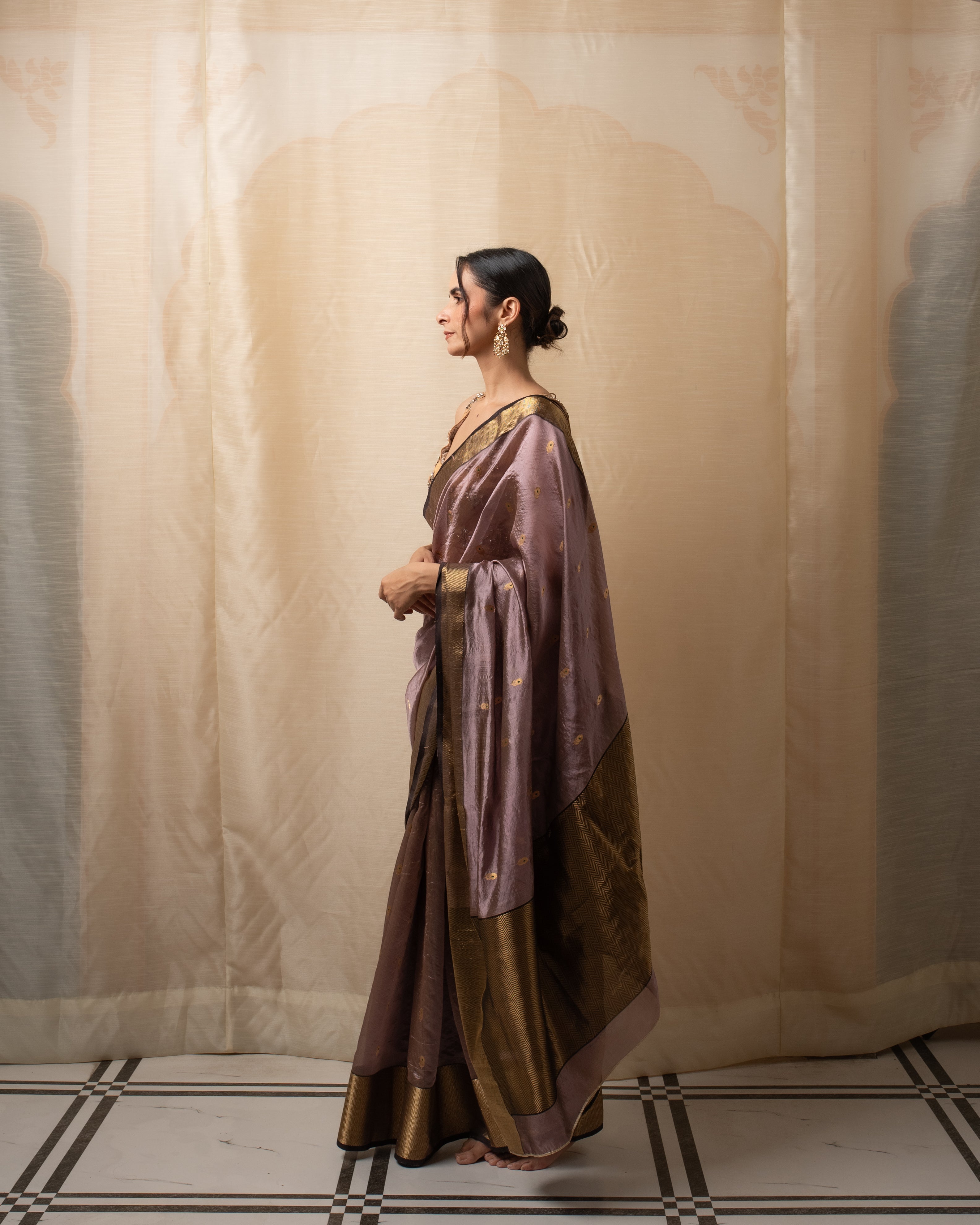 Janaki- Copper Purple Silk Chanderi Saree