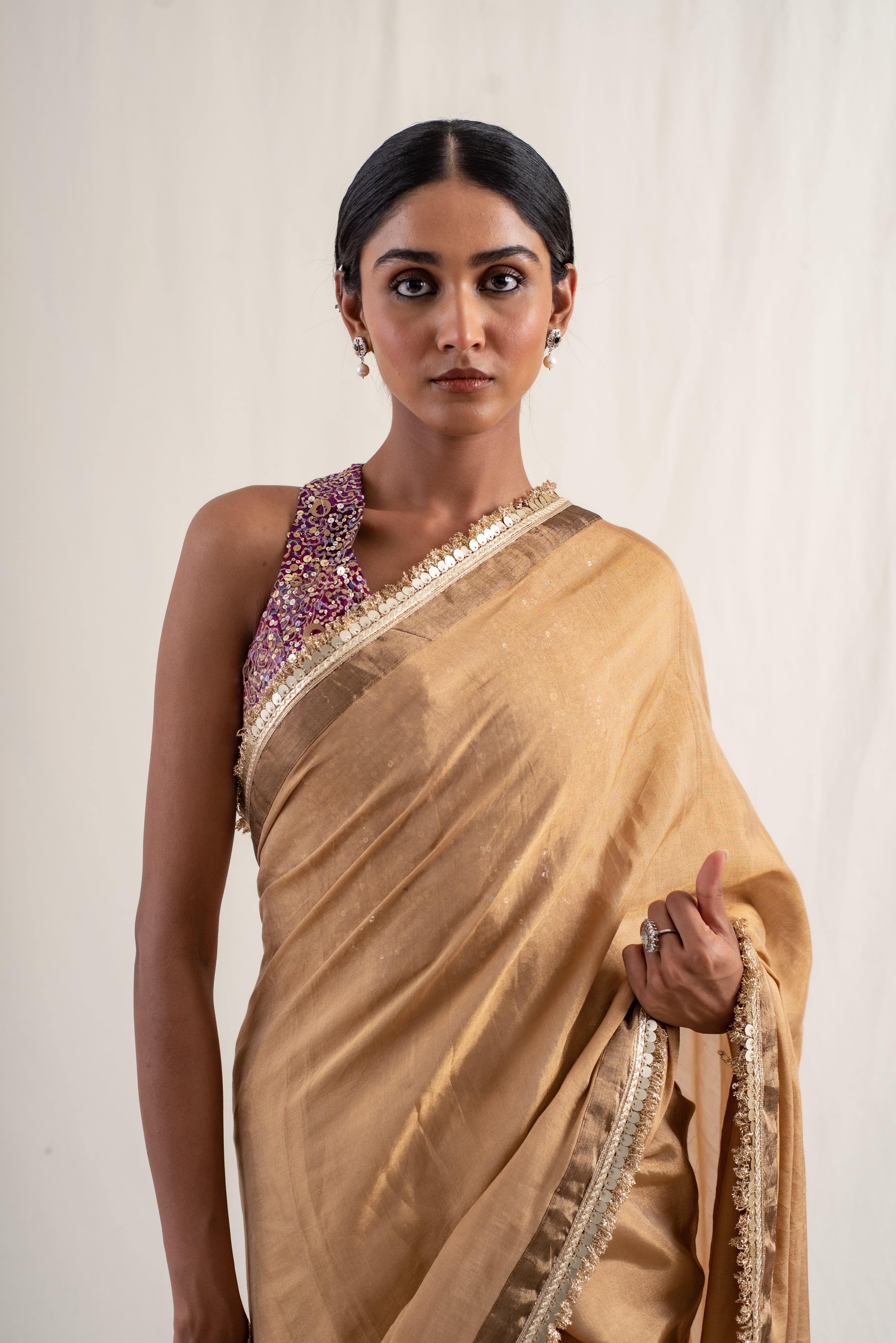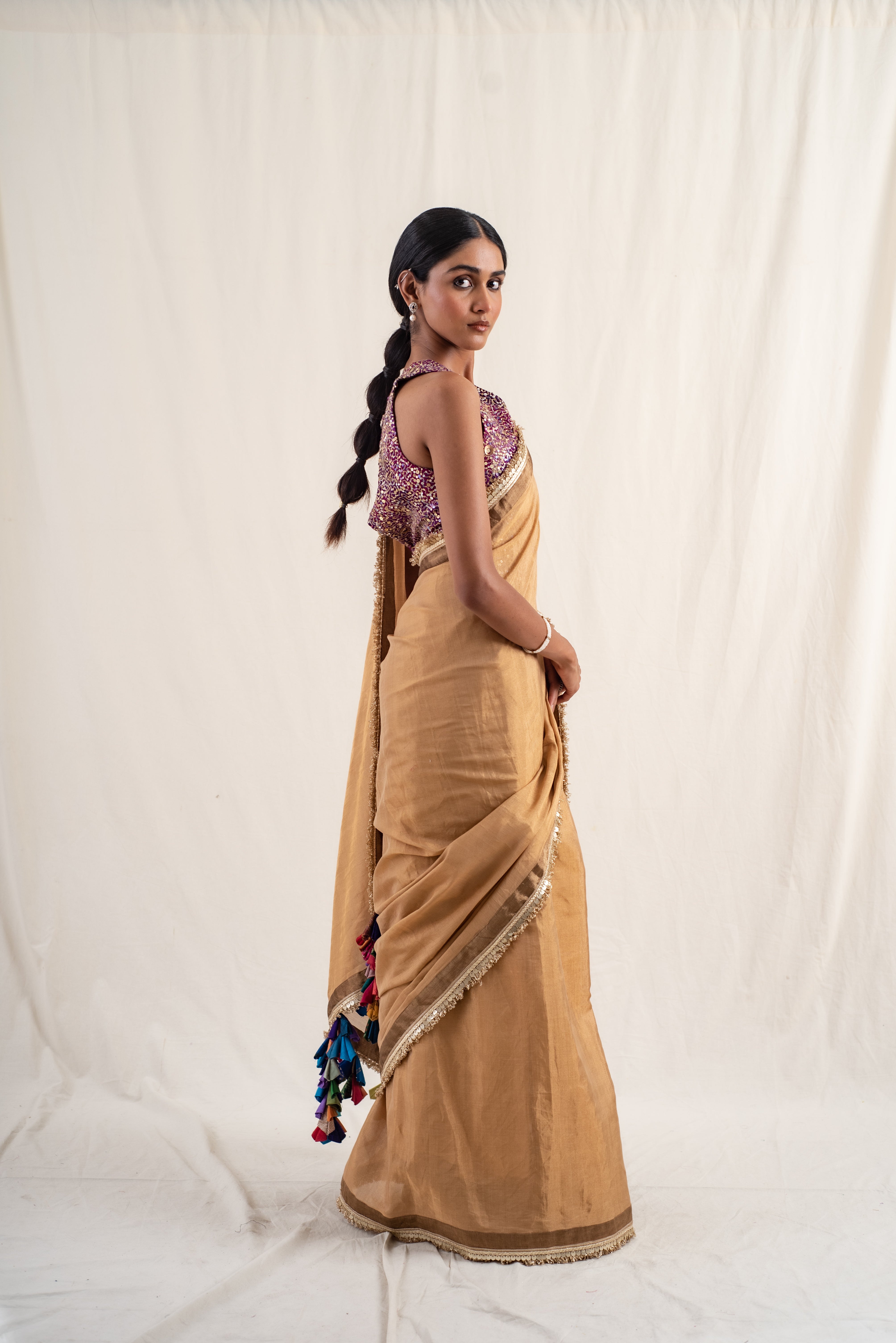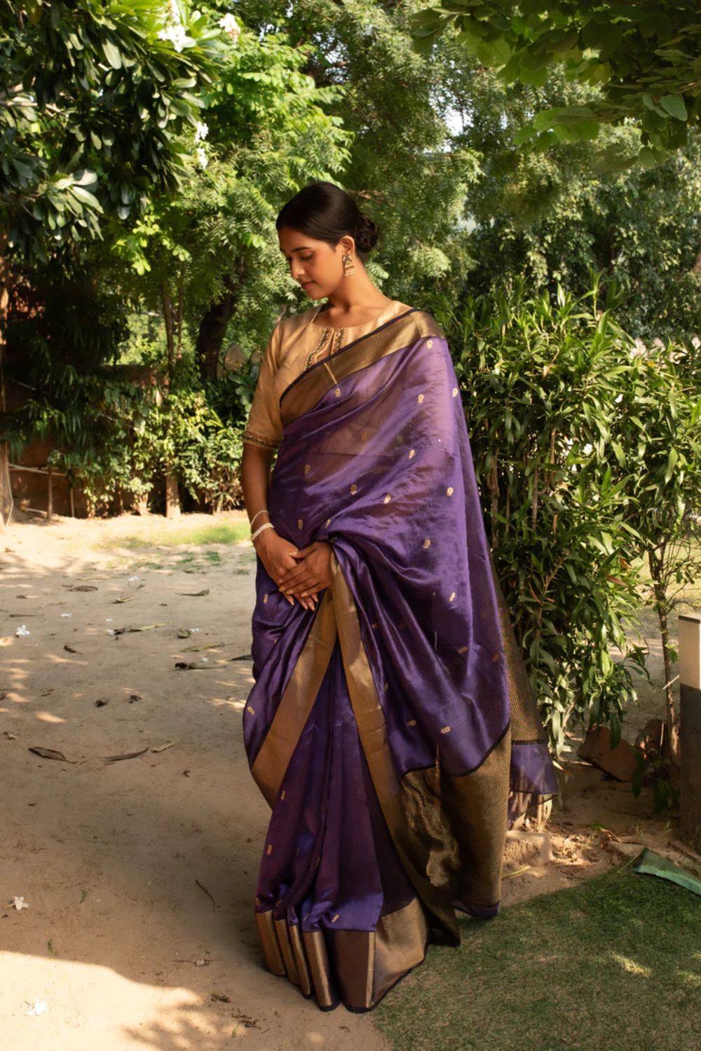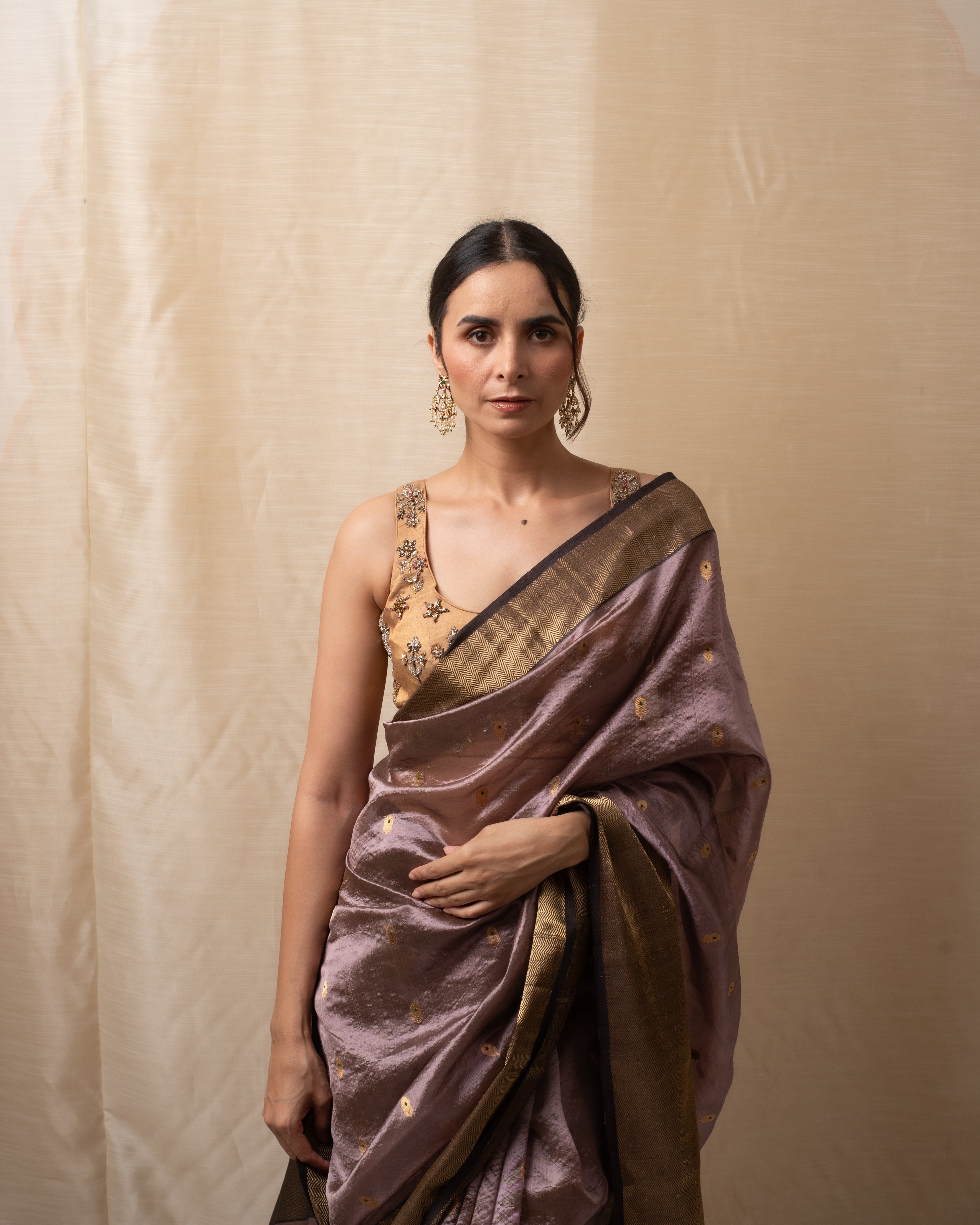 Janaki- Copper Purple Silk Chanderi Saree