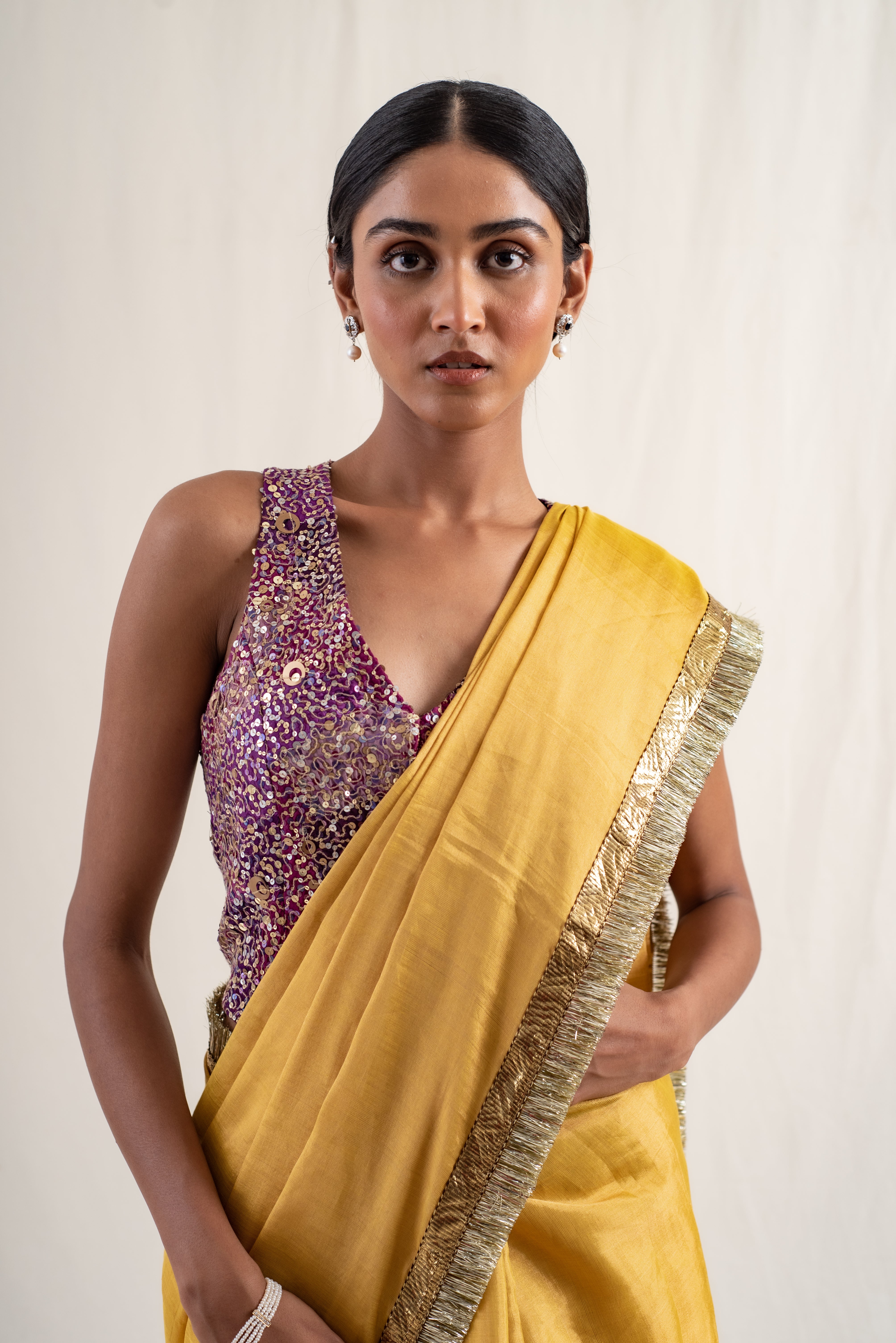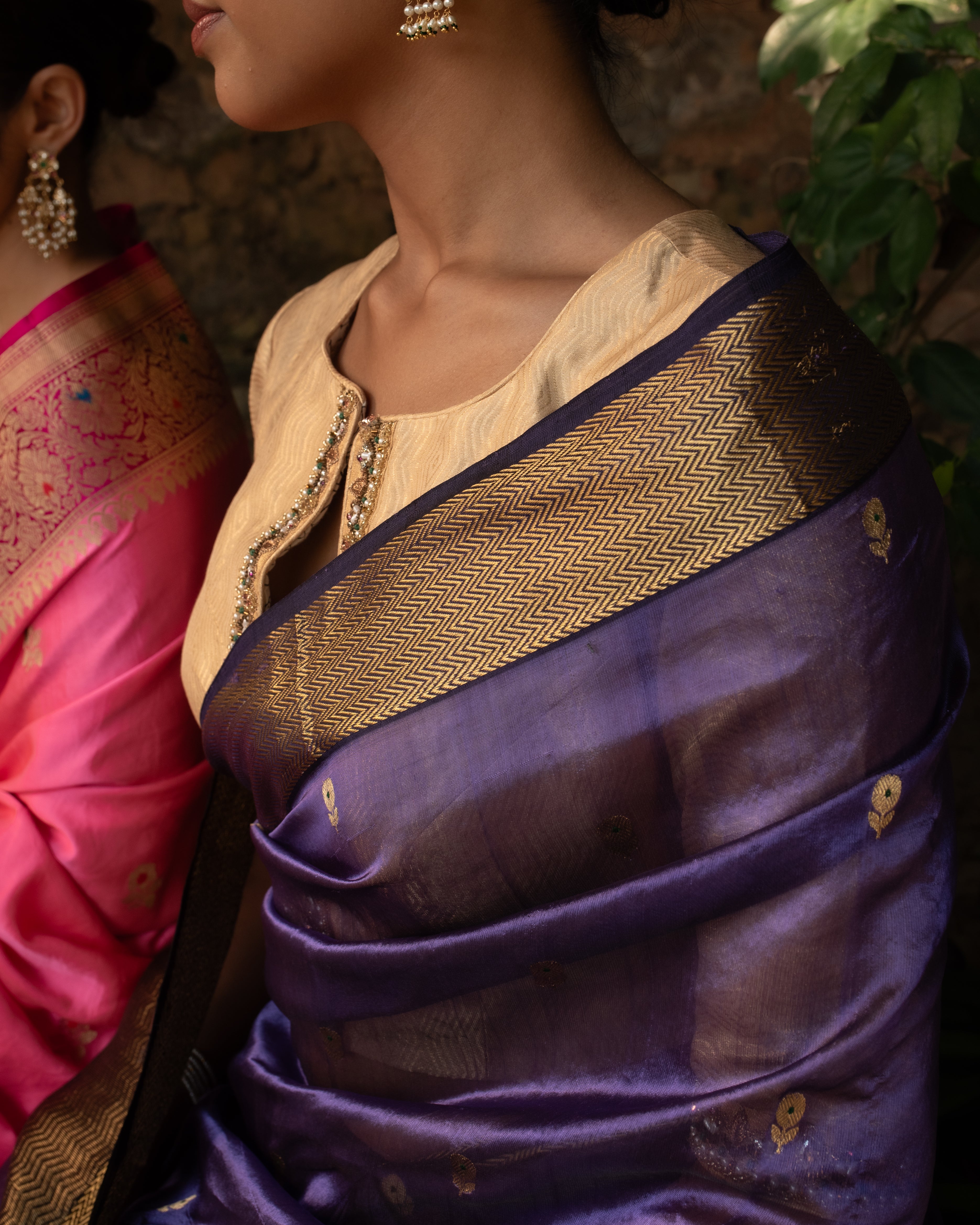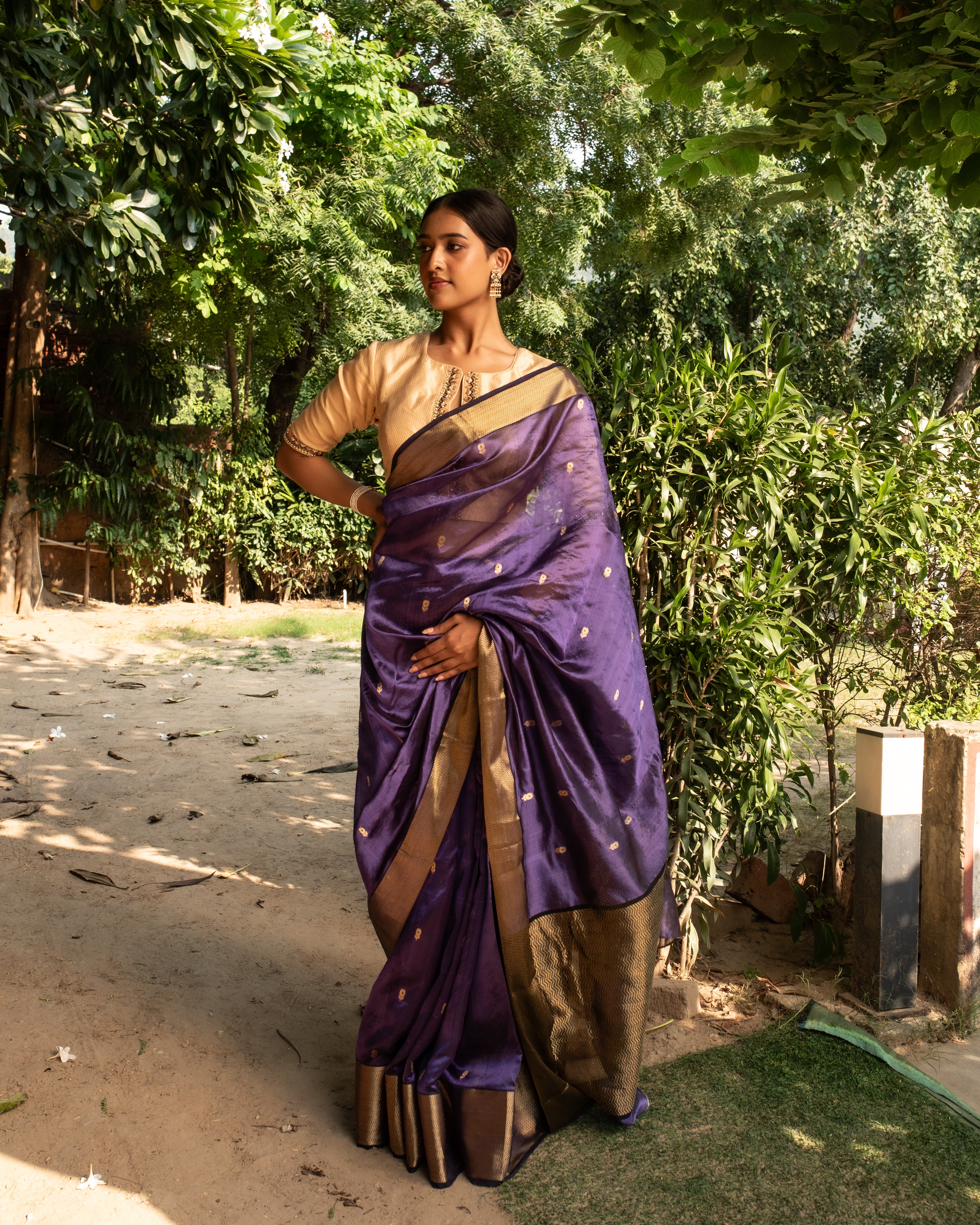 Triya - Purple Silk Chanderi Saree