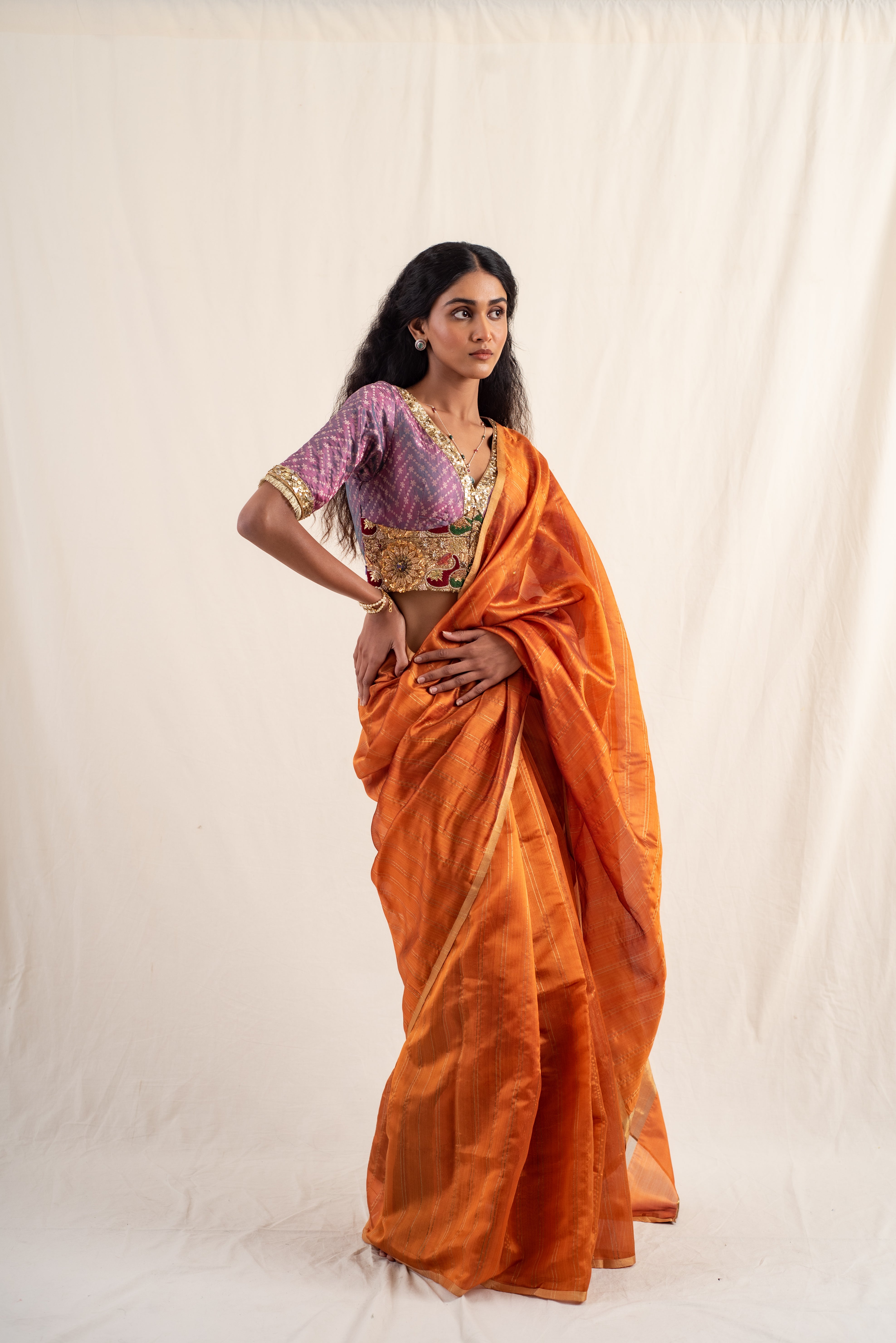 Triya - Orange Silk Chanderi Saree