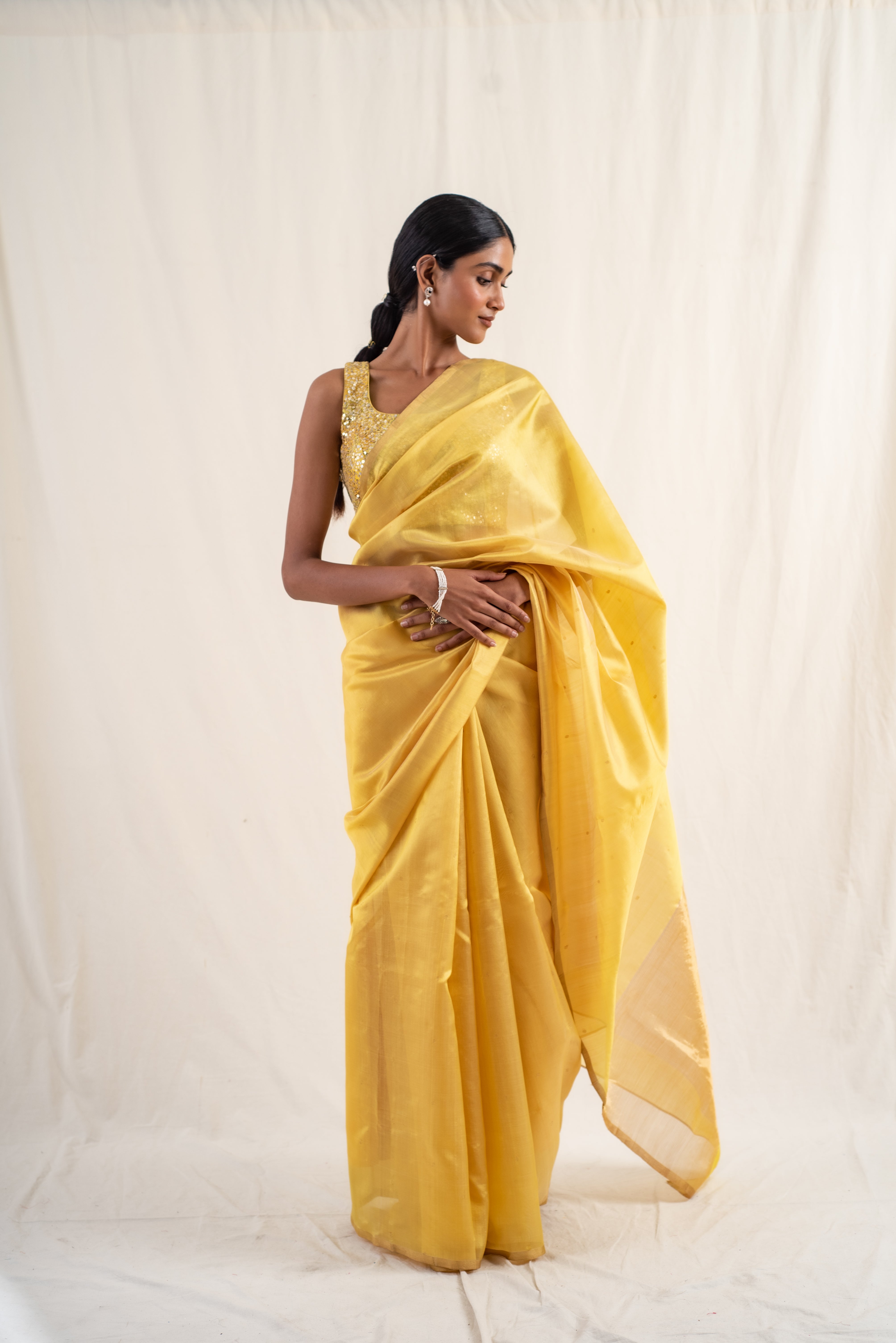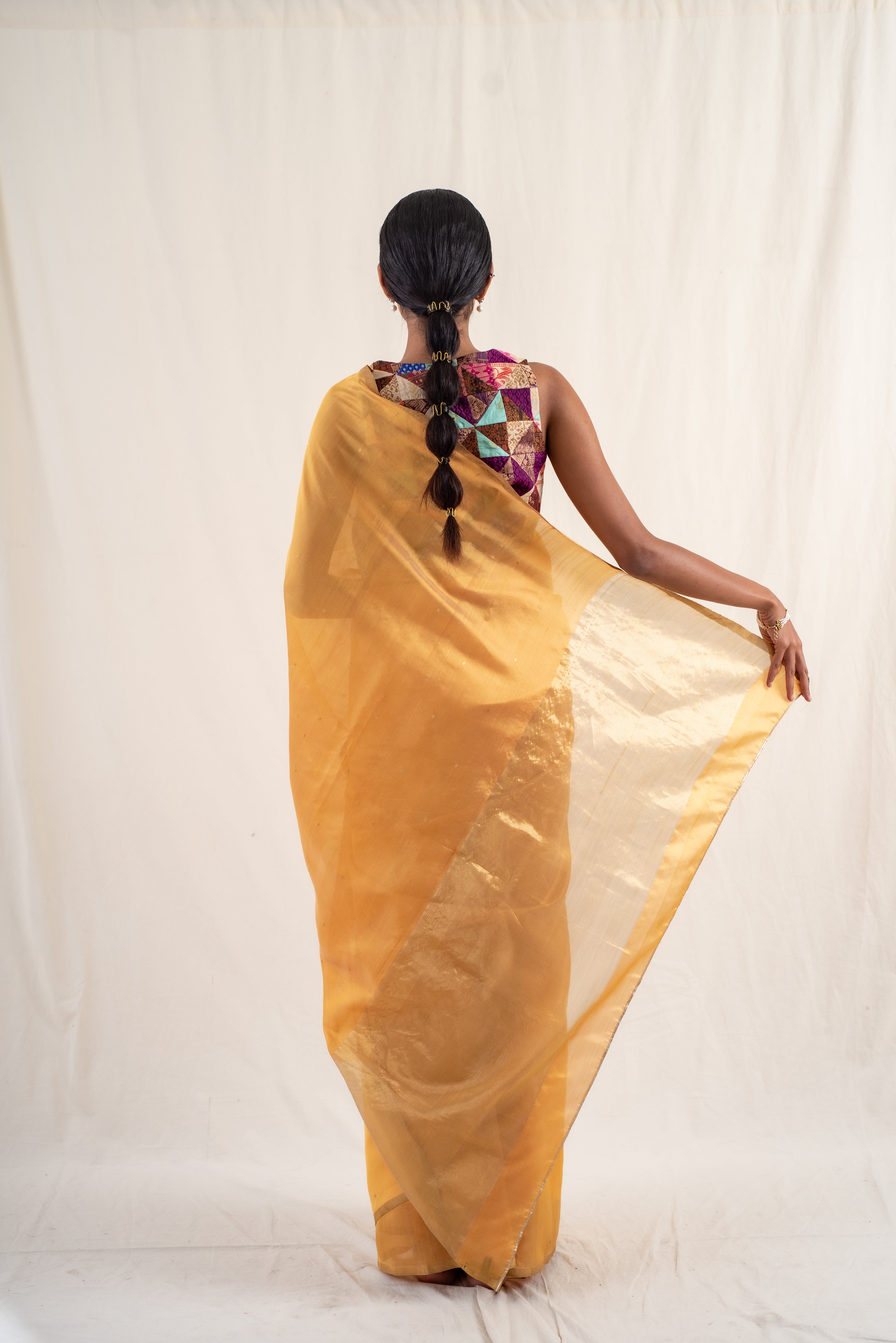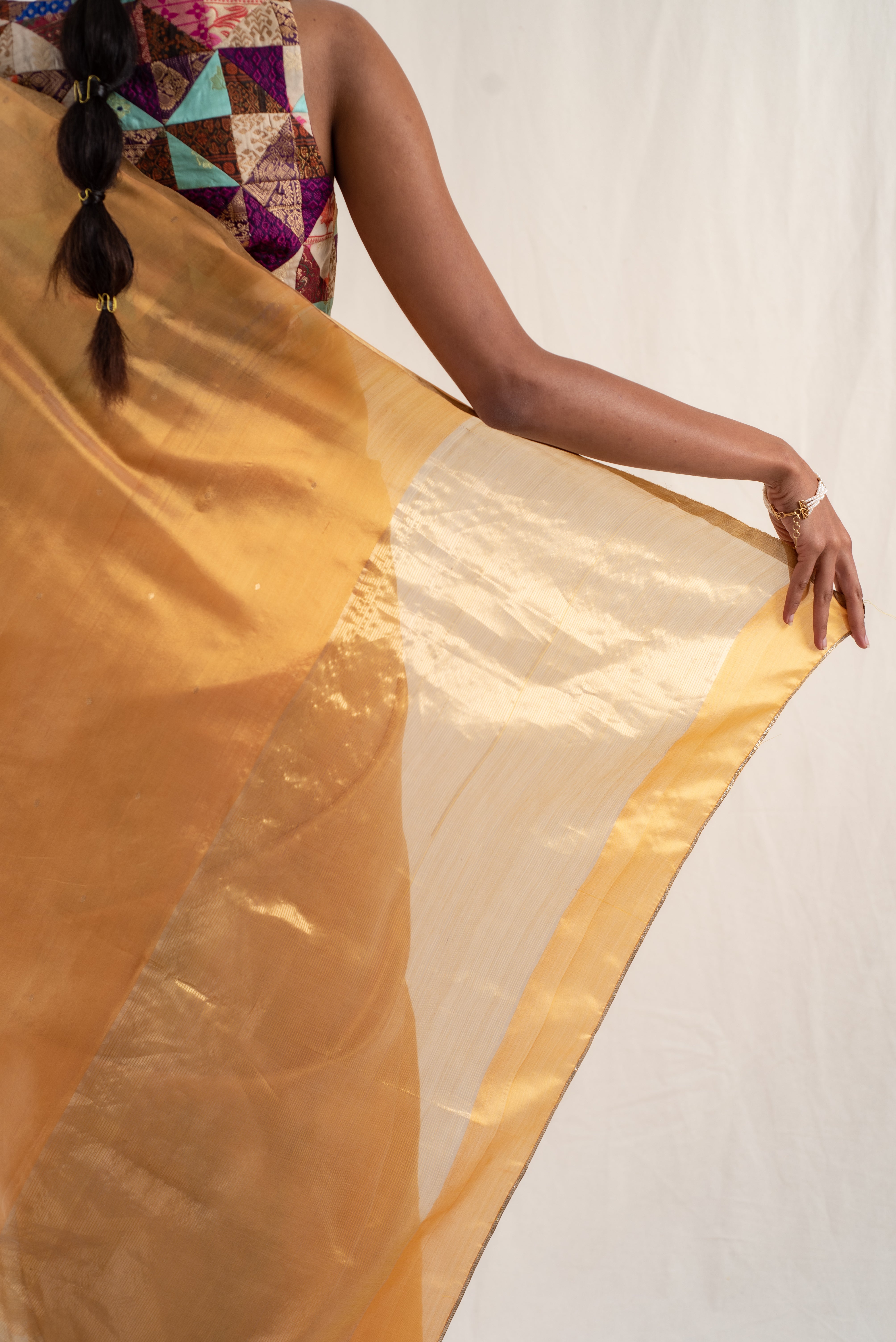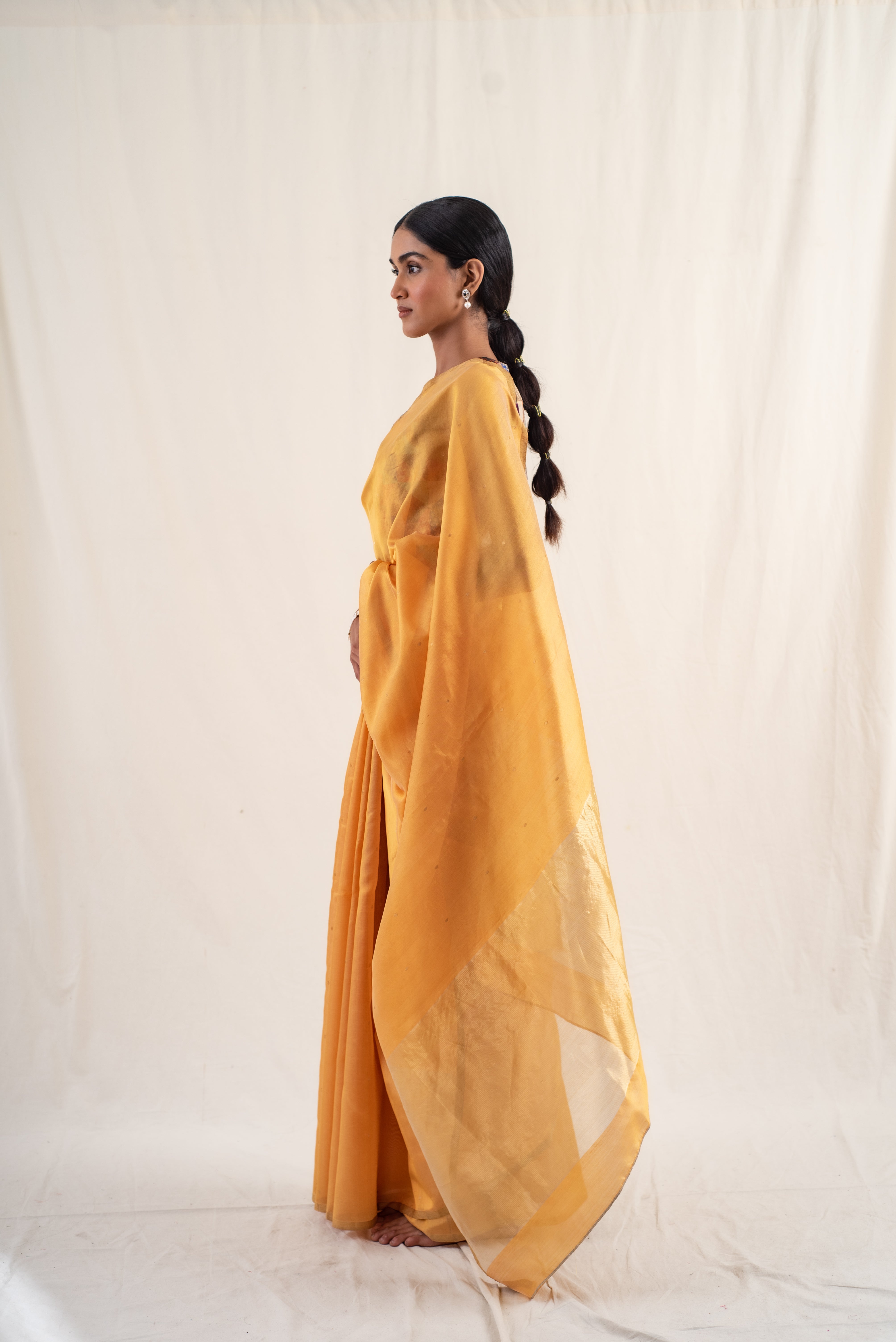 Kylee- Gold Silk Chanderi Saree