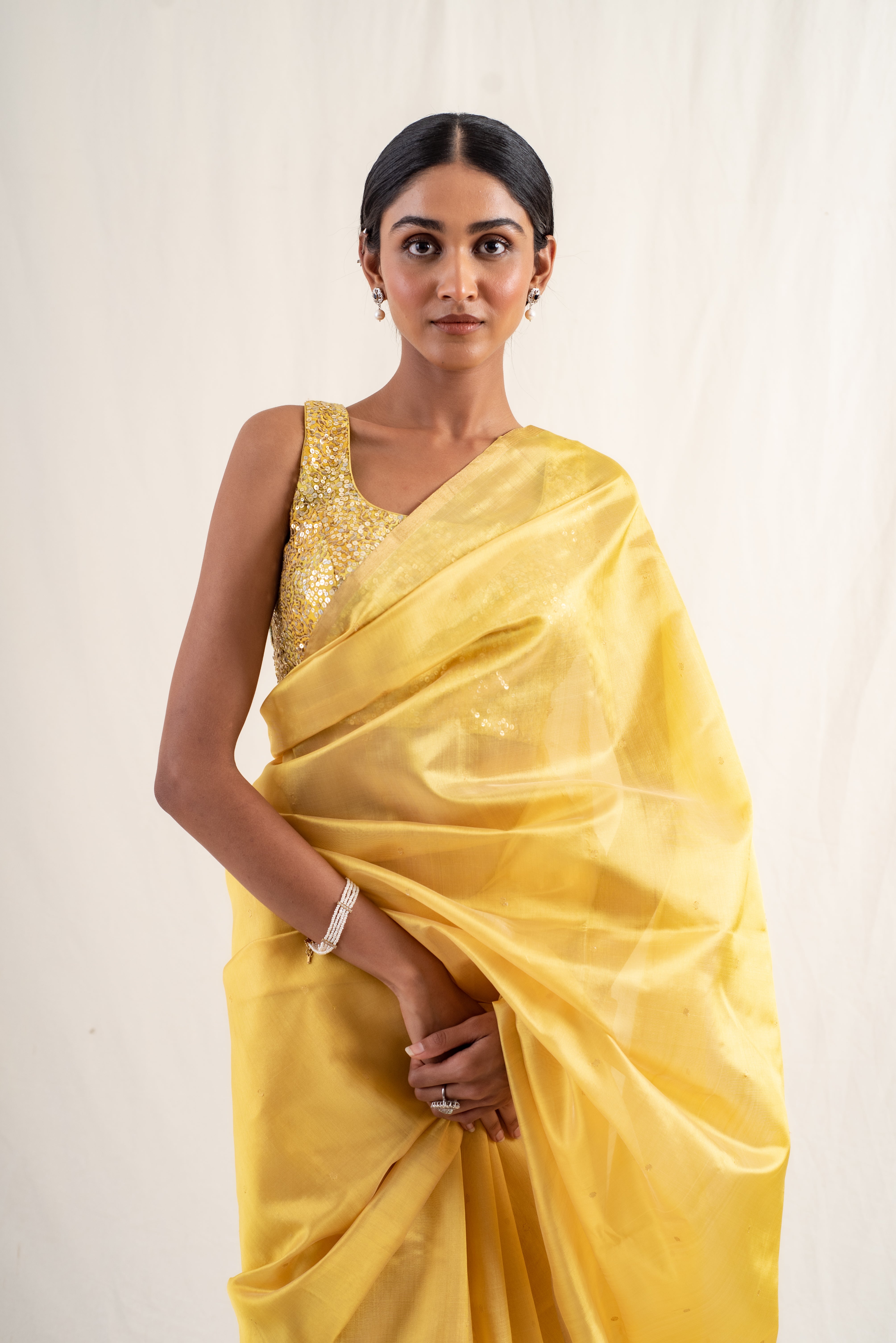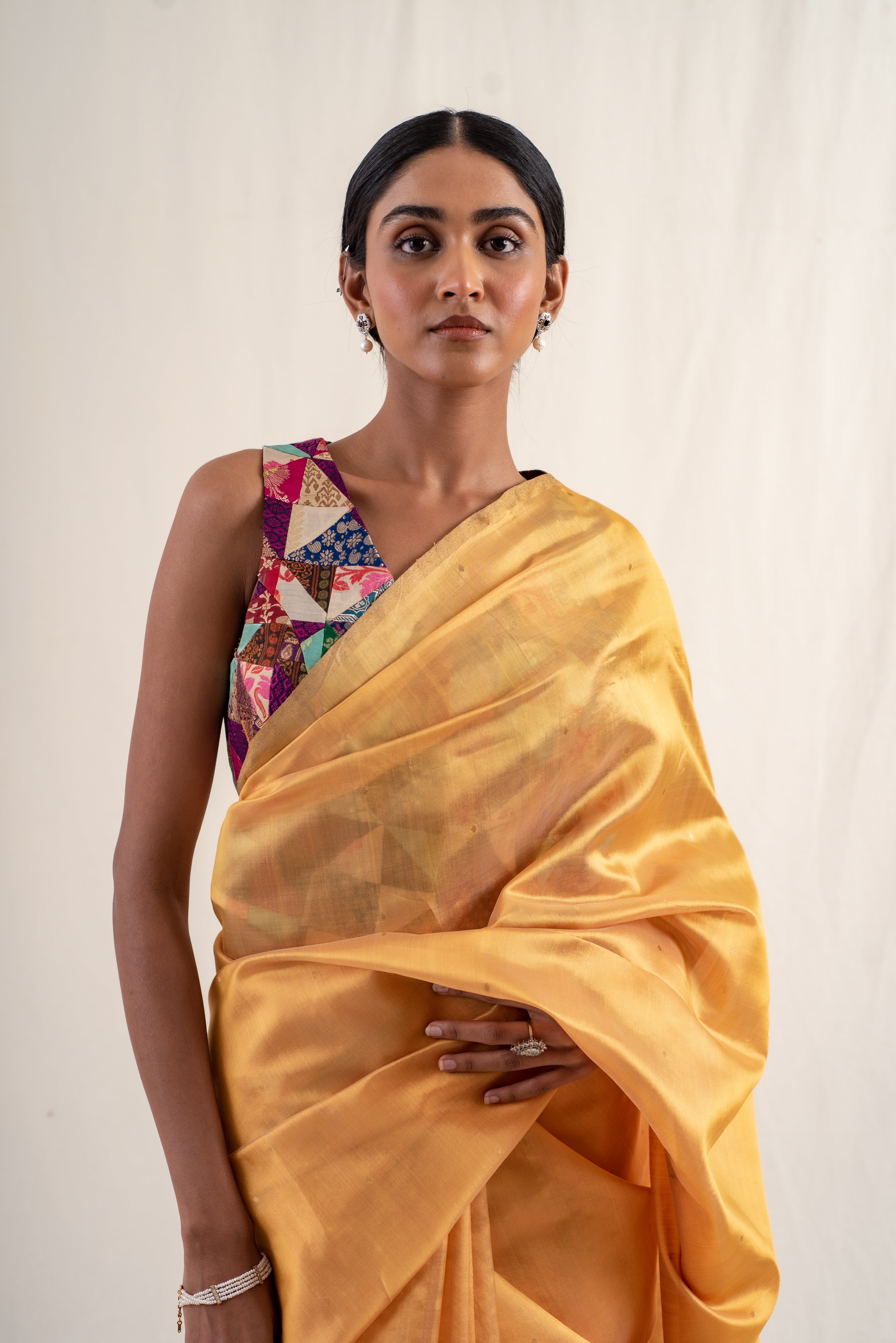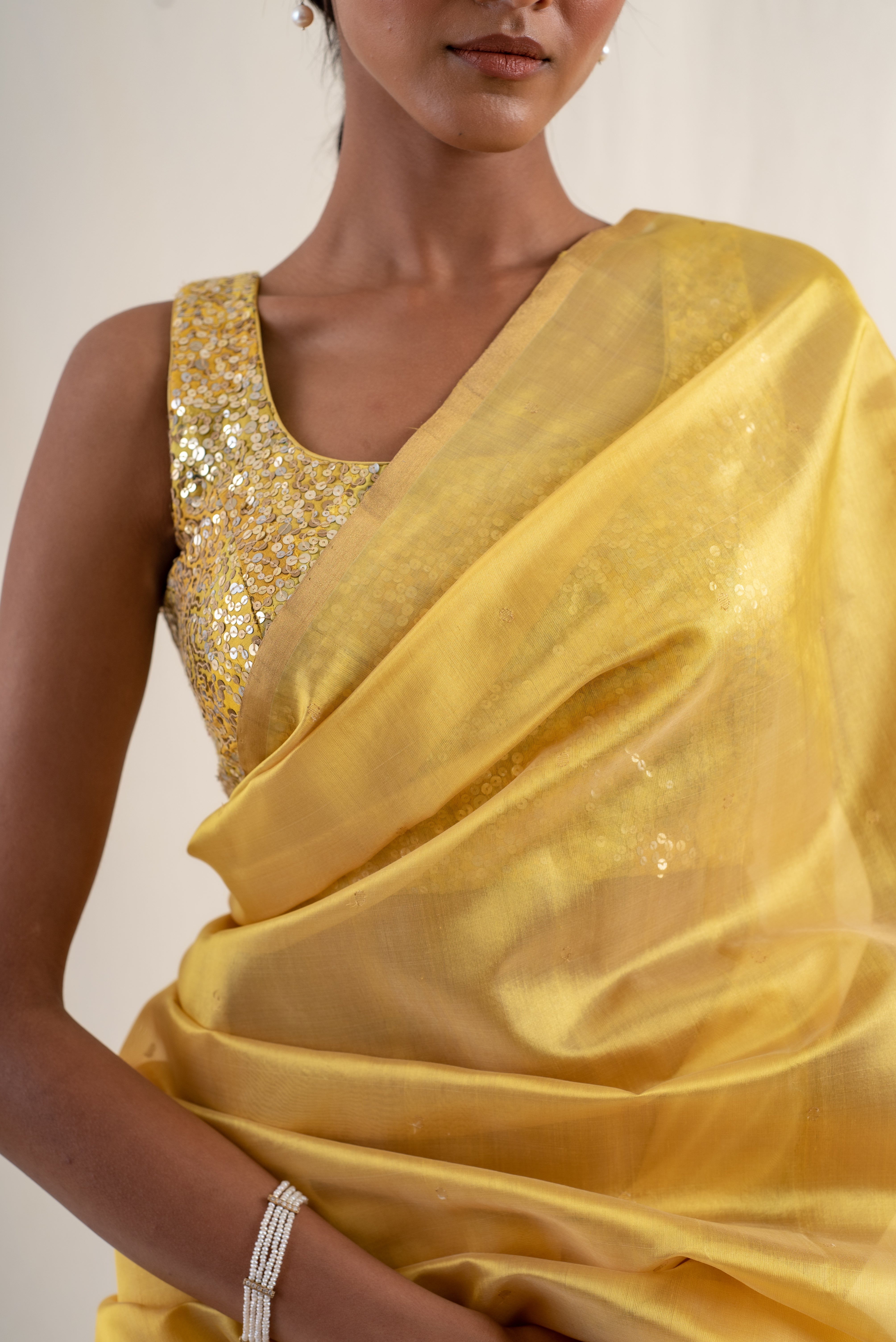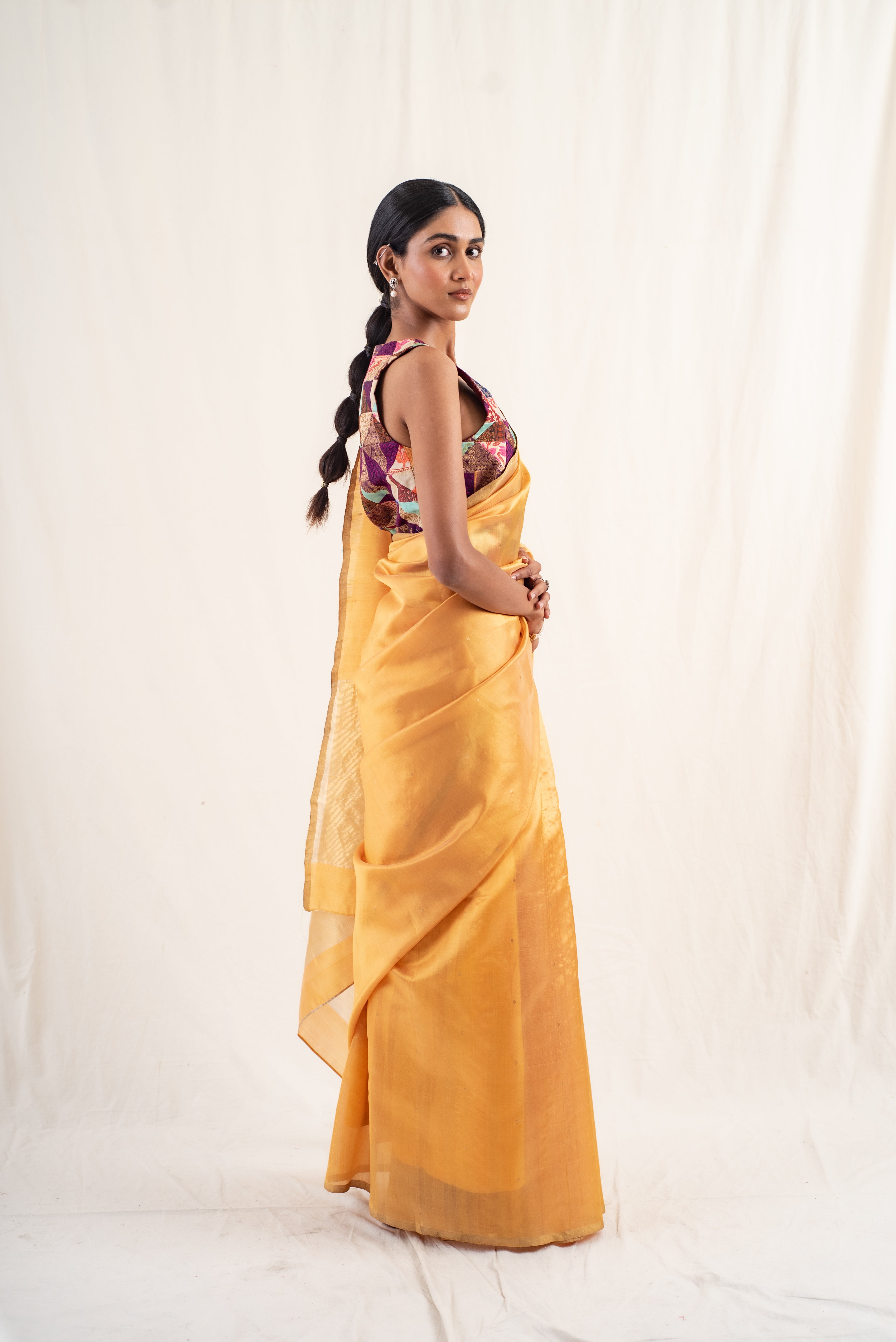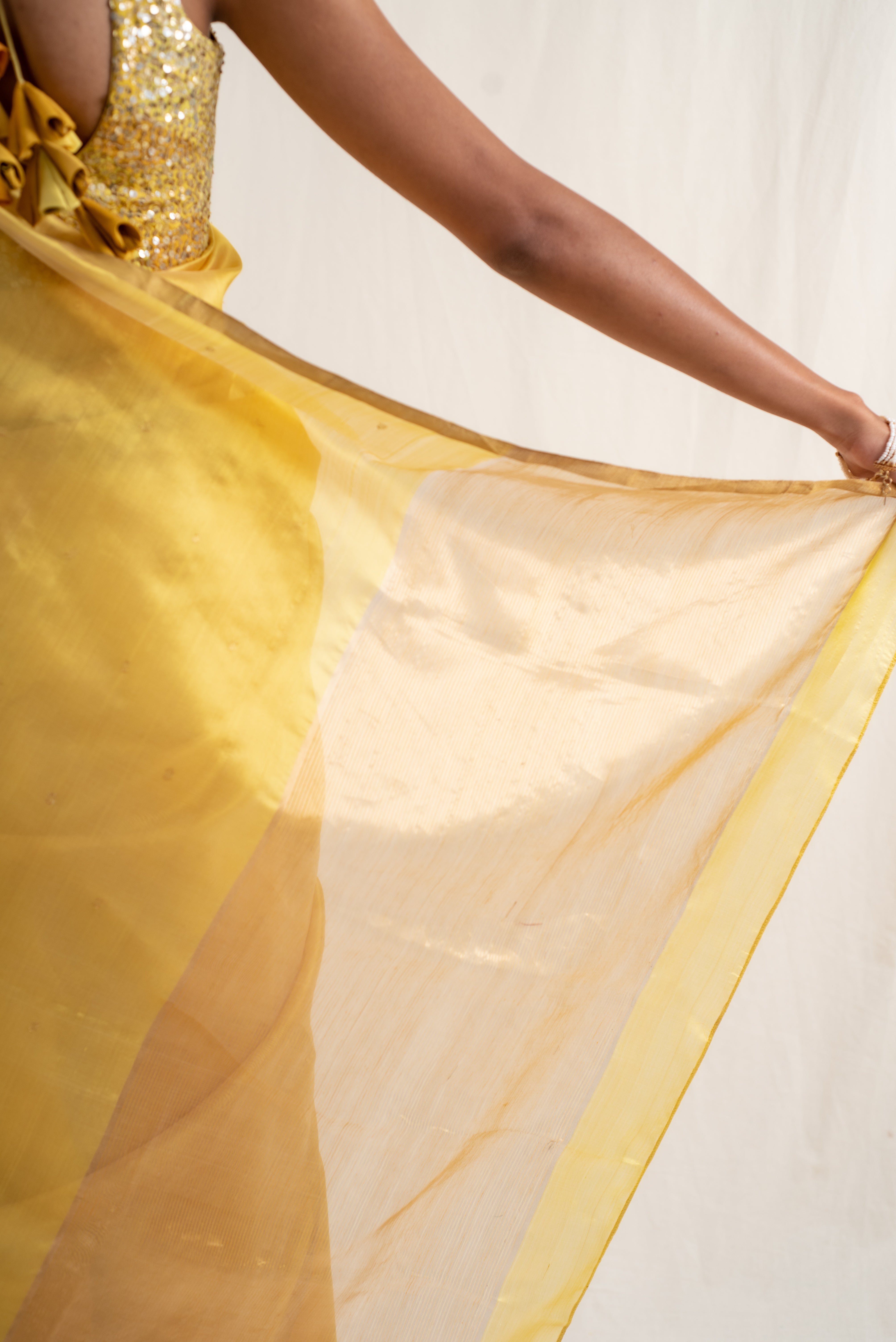 Kylee- Gold Silk Chanderi Saree