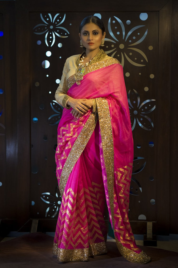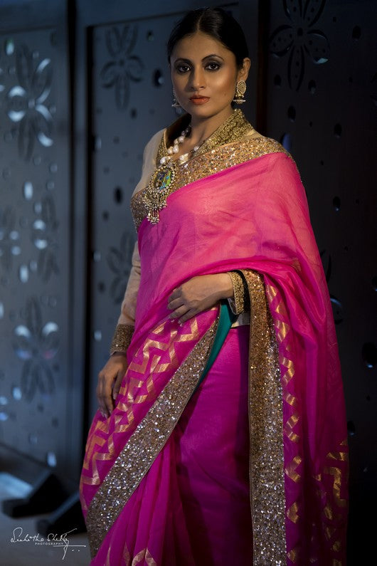 Chanderi silk sari with sequin hand embroidered borders