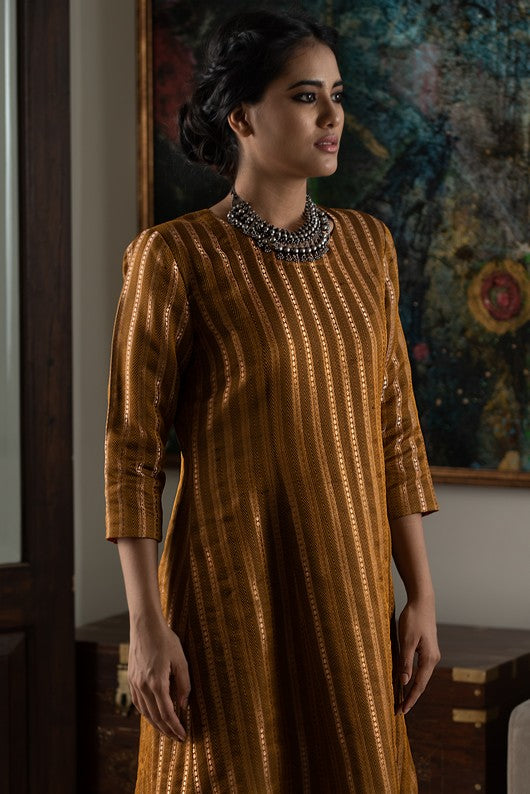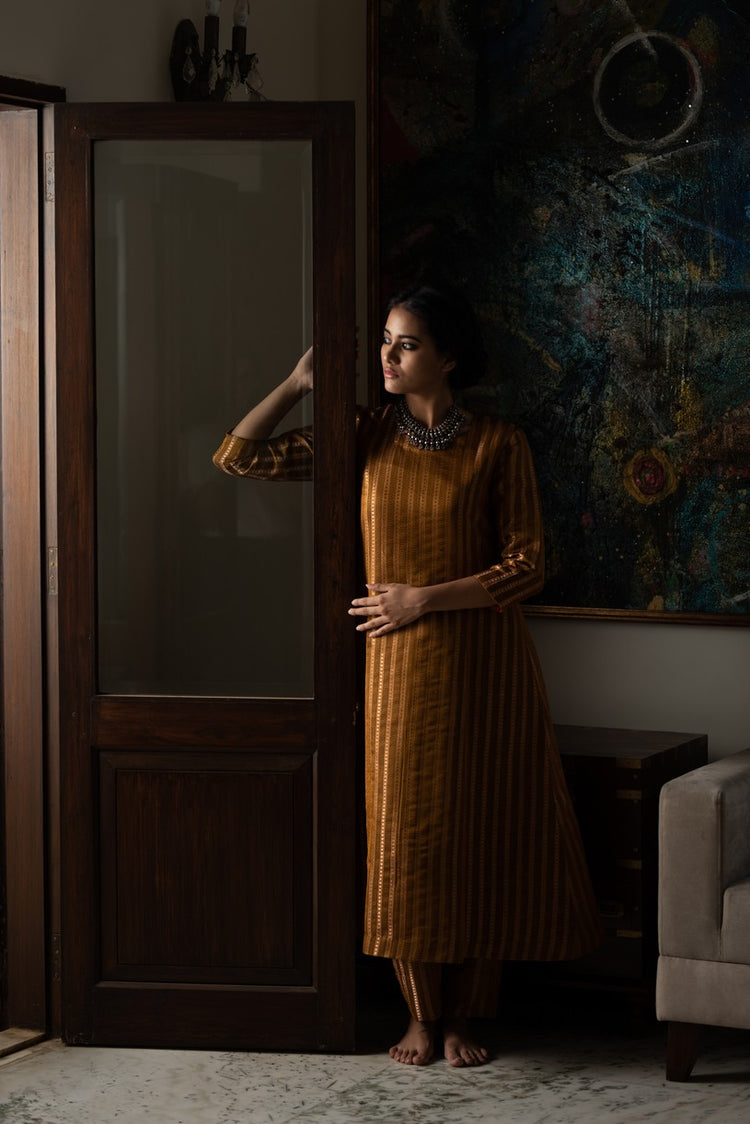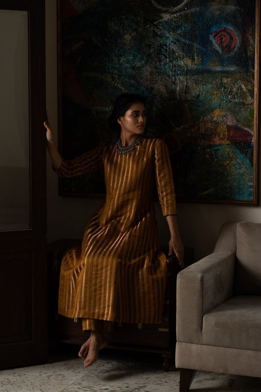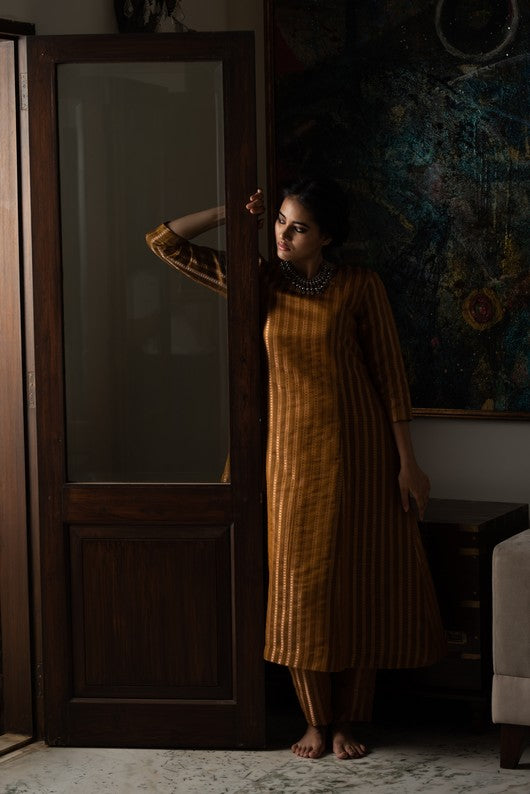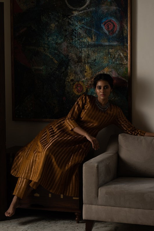 Silk brocade structured kurta with fitted trousers