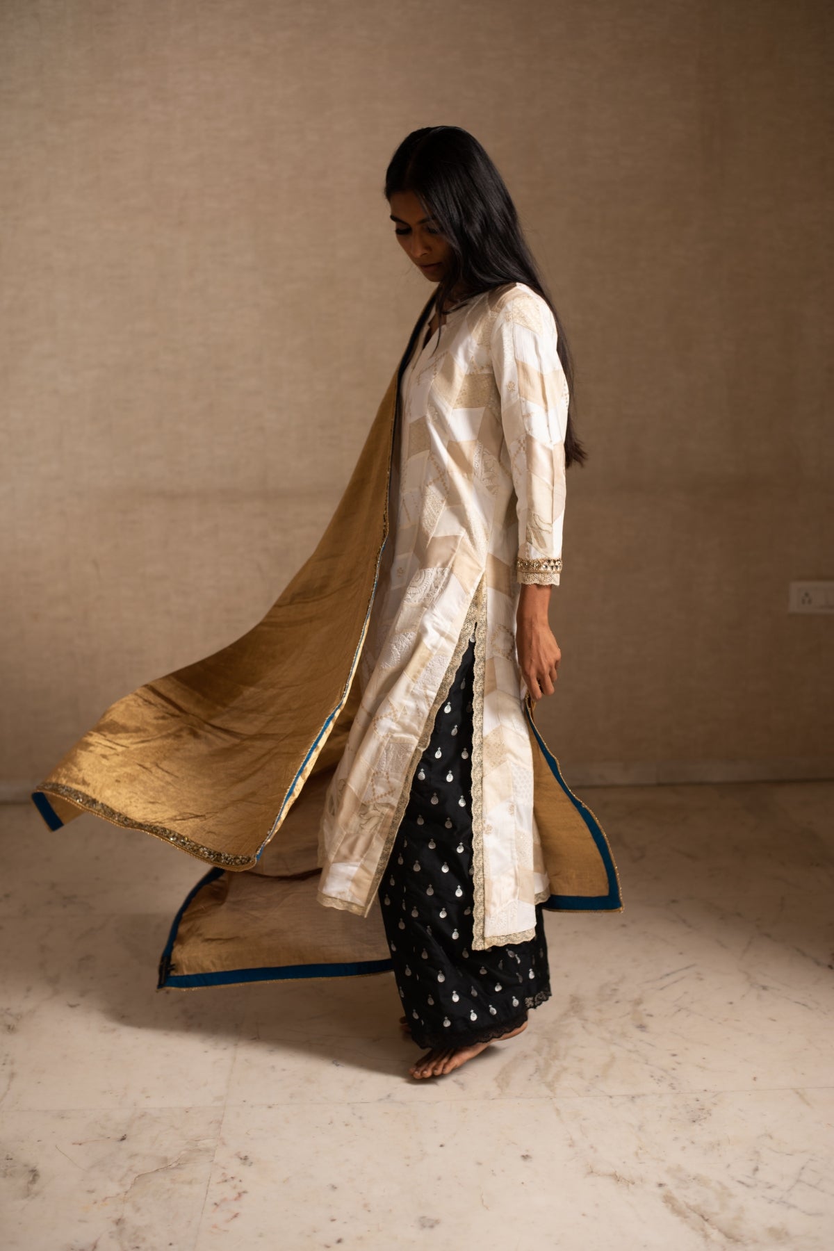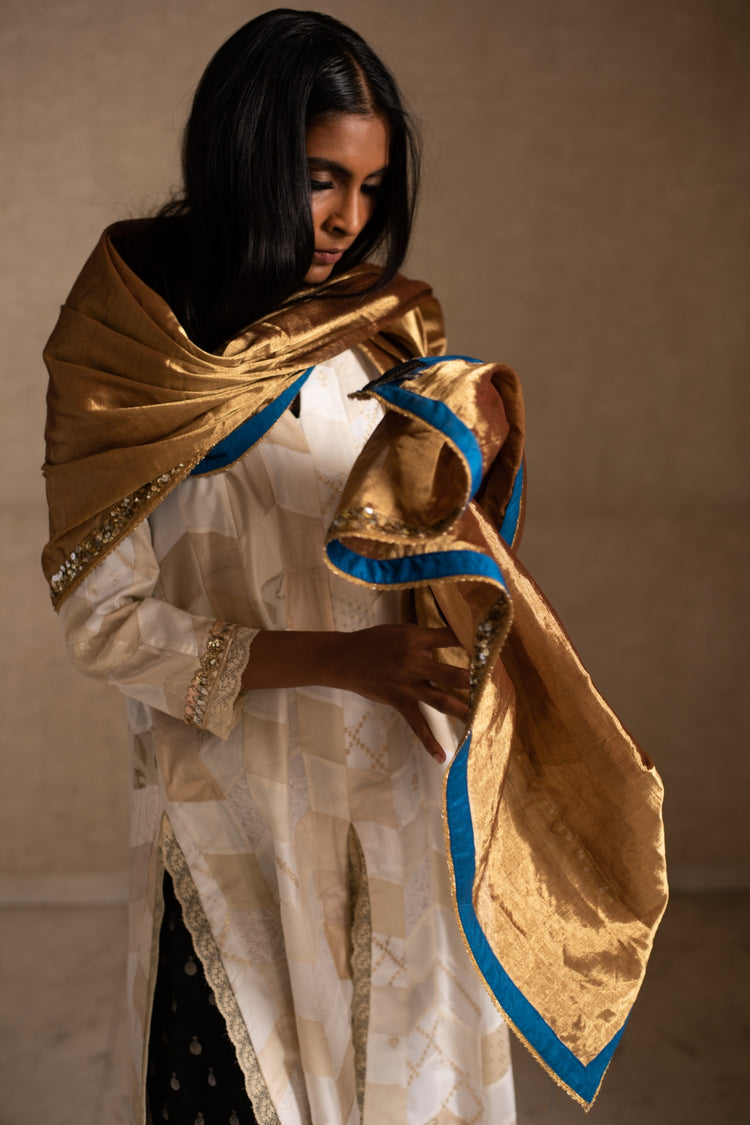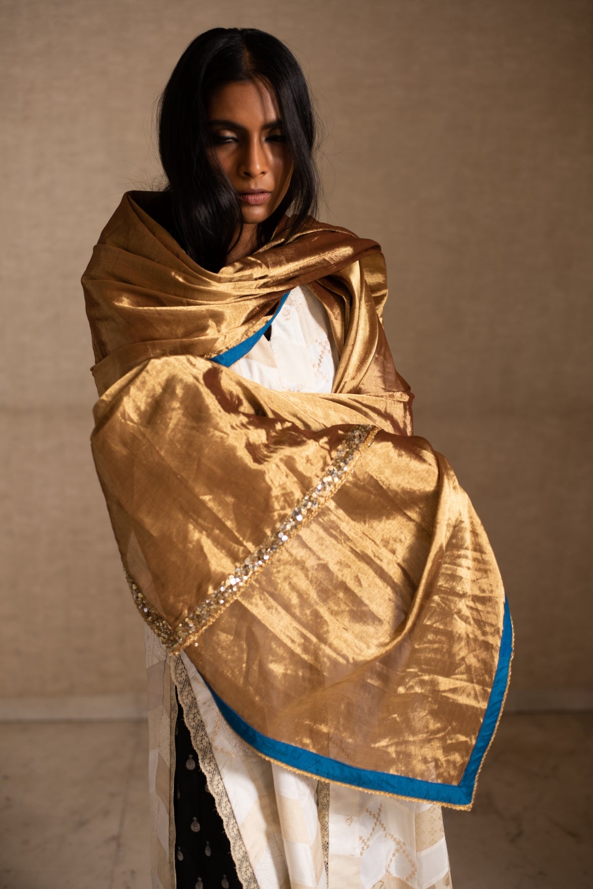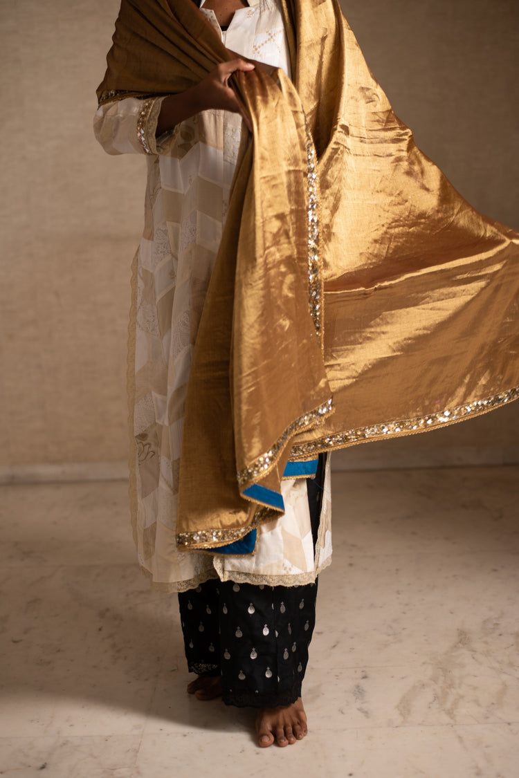 Aabha- Gold Silk Chanderi Tissue Upcycled Patchwork Dupatta
