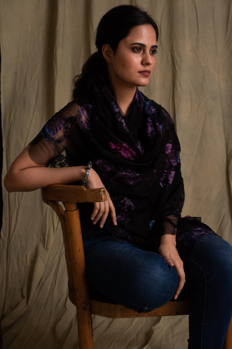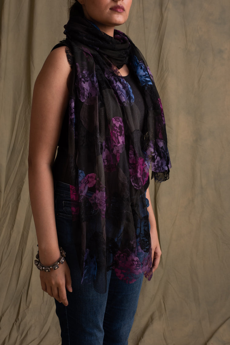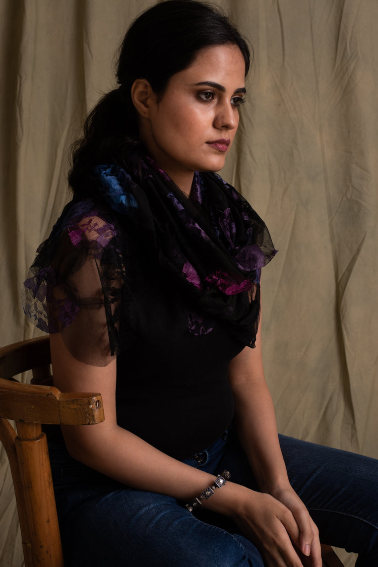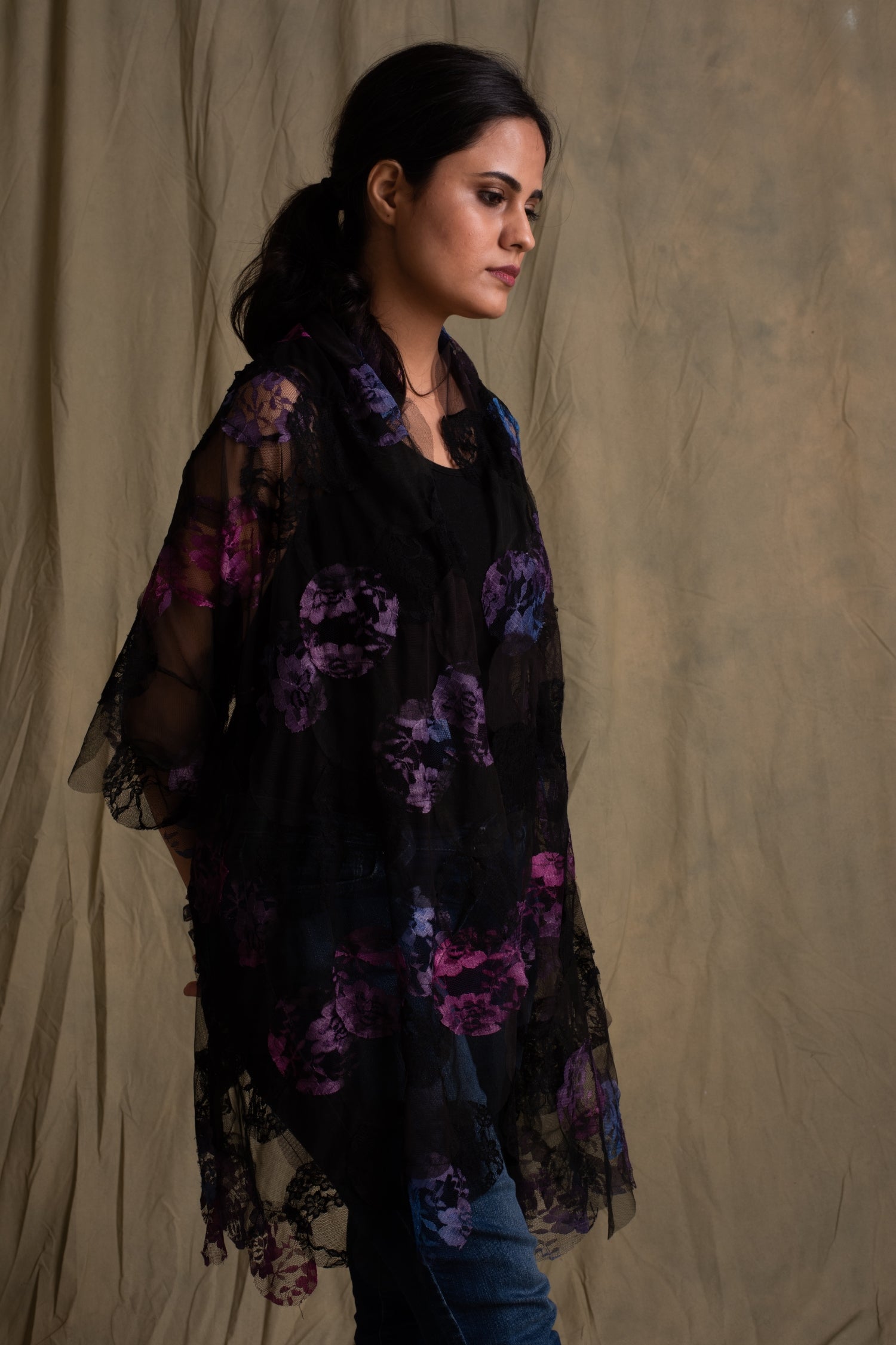 Aahana- Black Tulle Upcycled Patchwork Stole