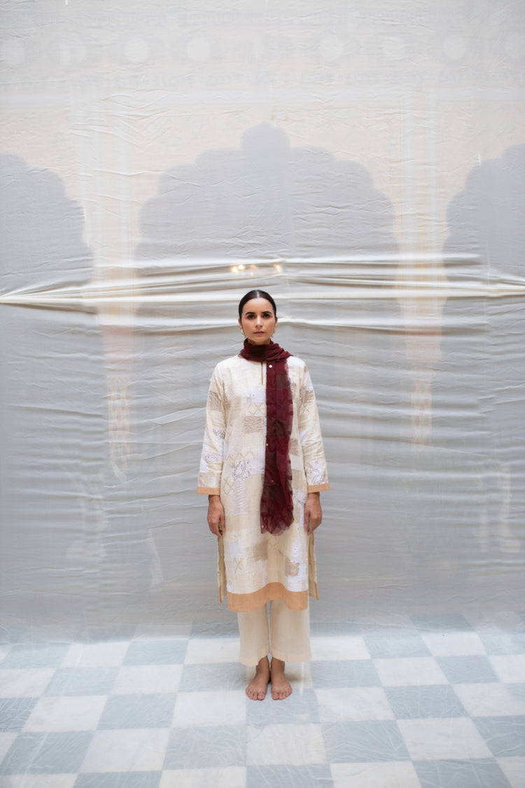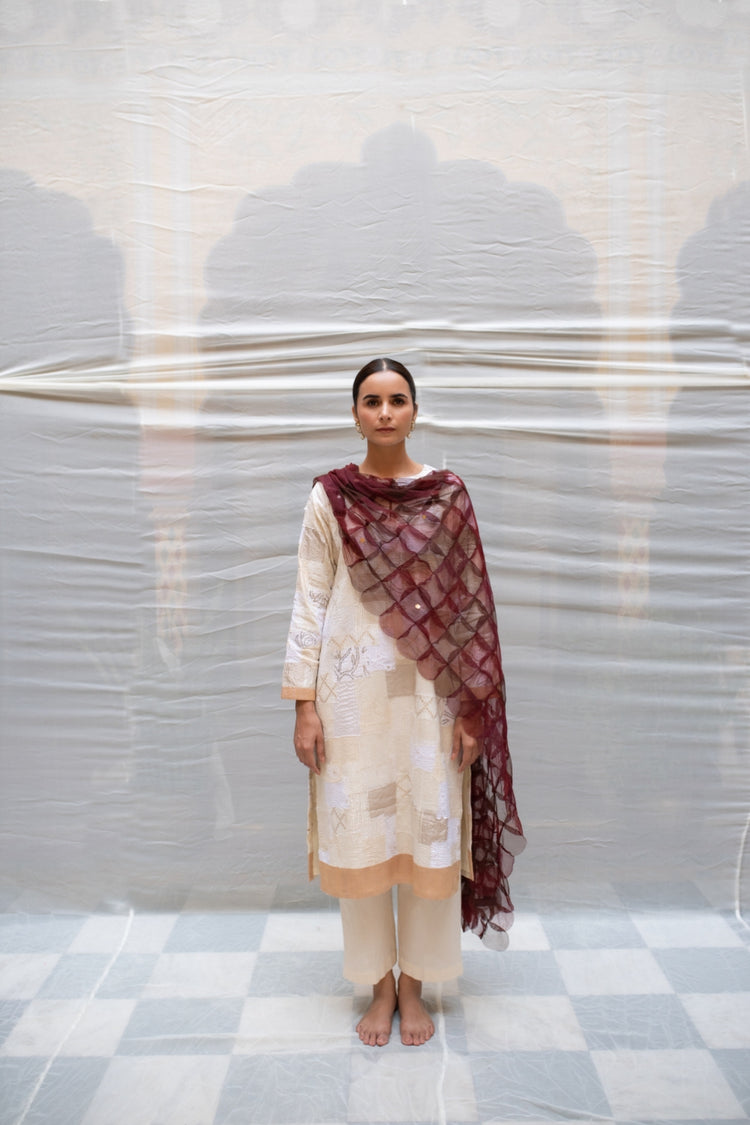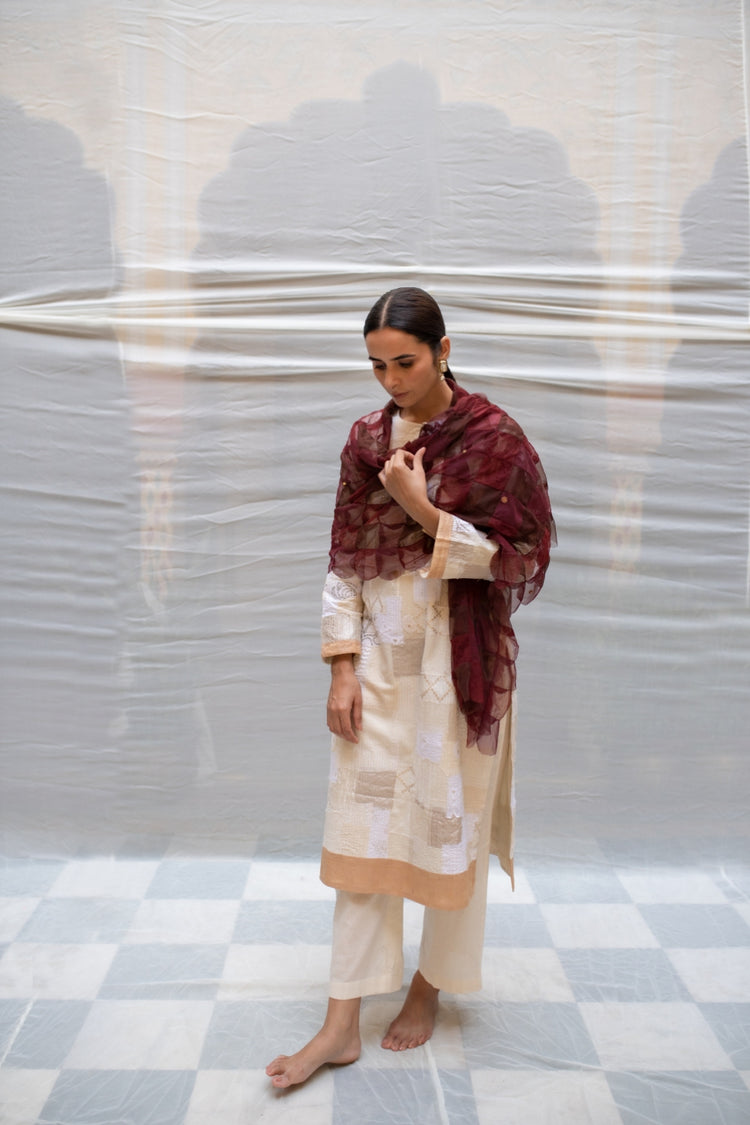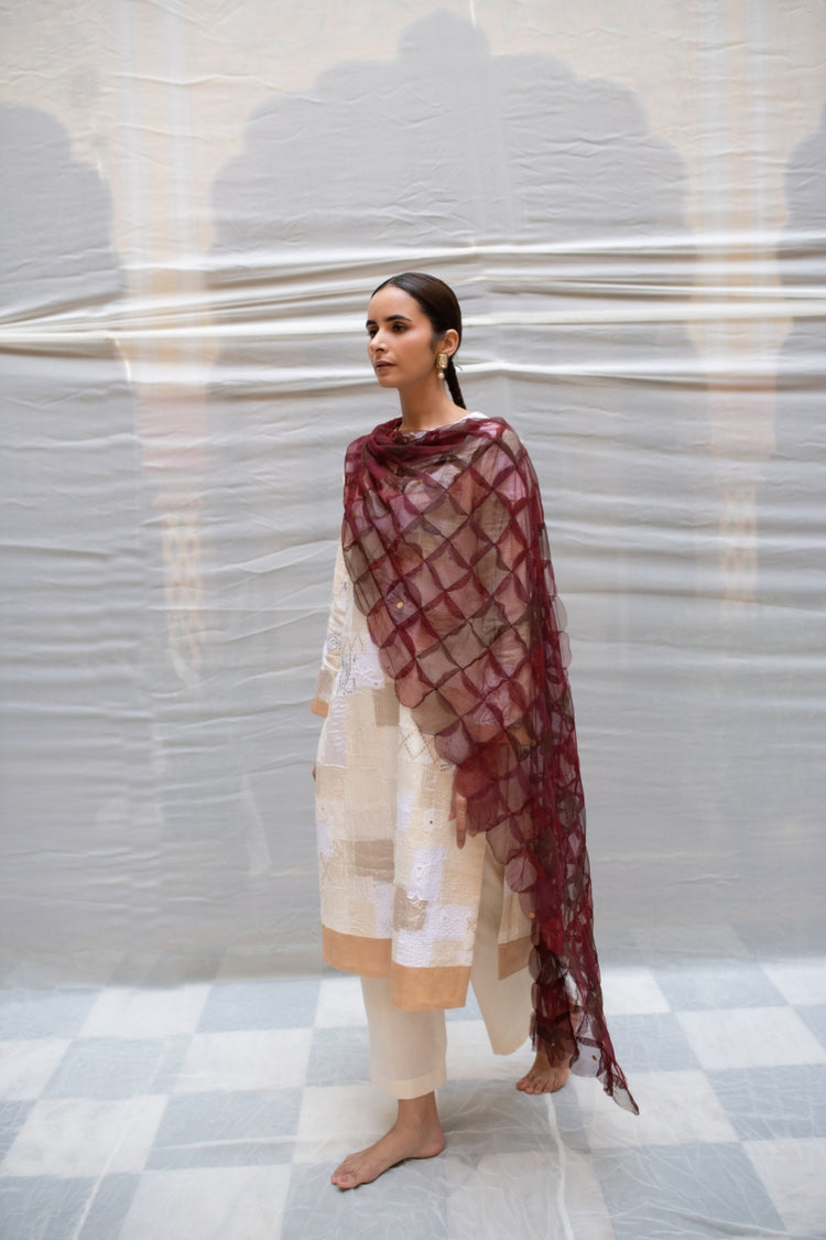 Abhilasha- Burgundy Upcycled Patchwork Stole