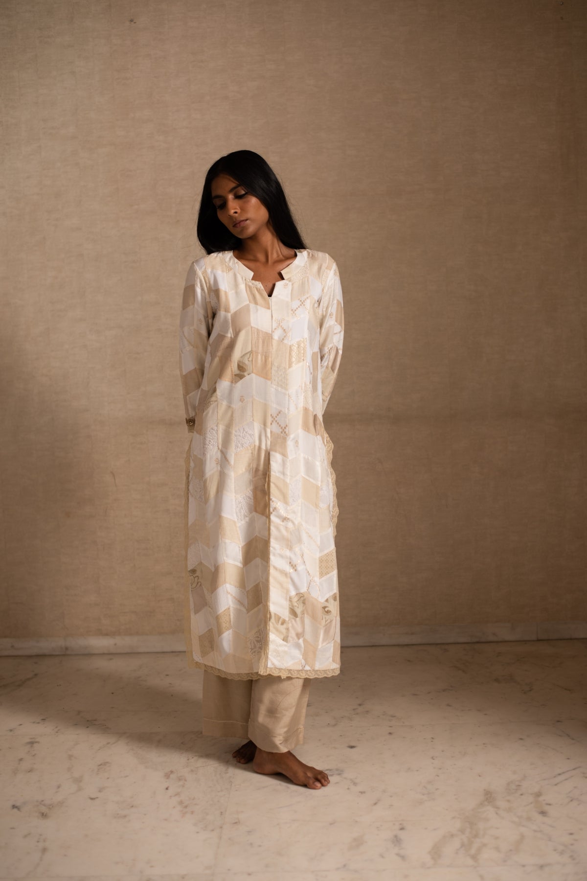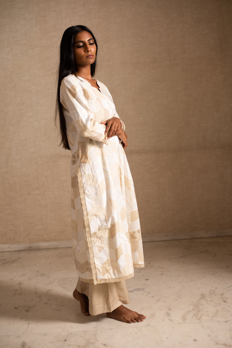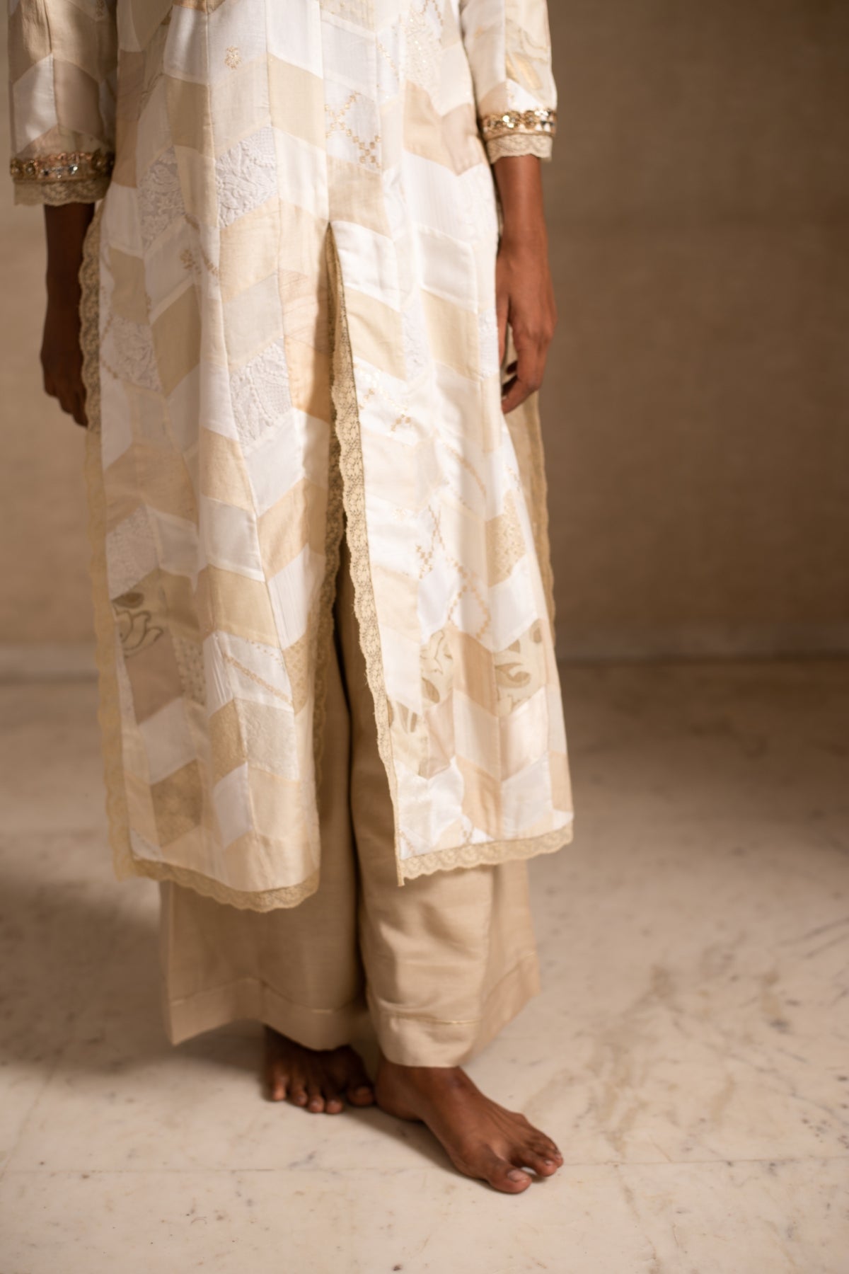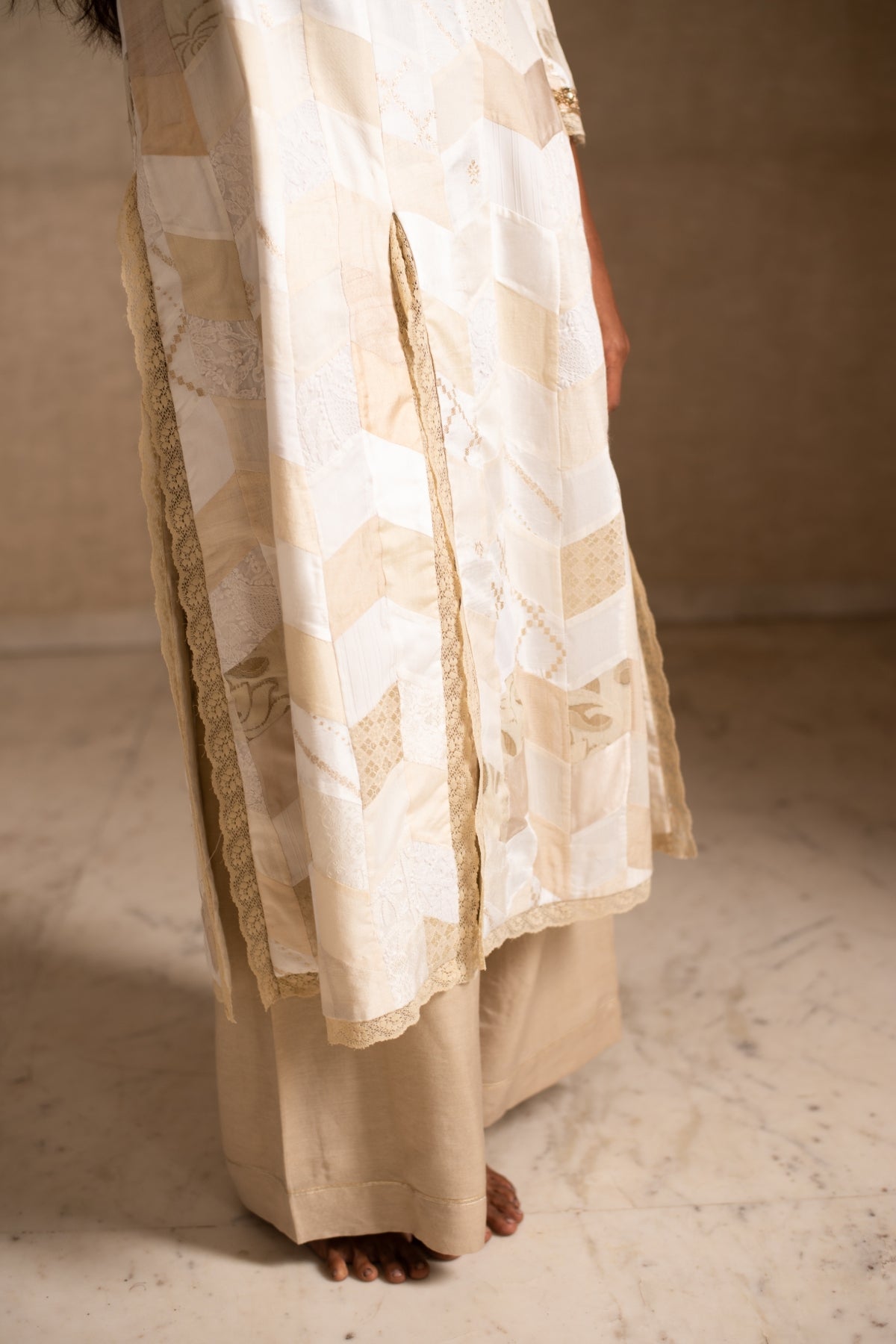 Adia & Benaj - Ivory Upcycled Patchwork Kurta with Silk Palazzo