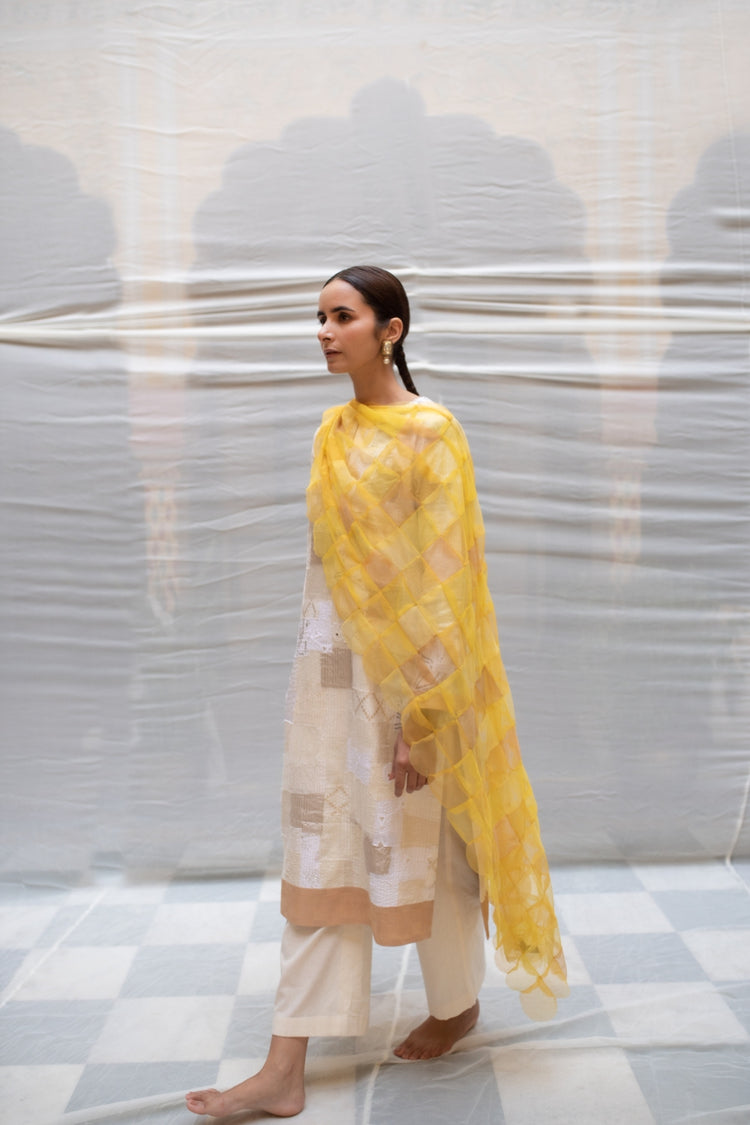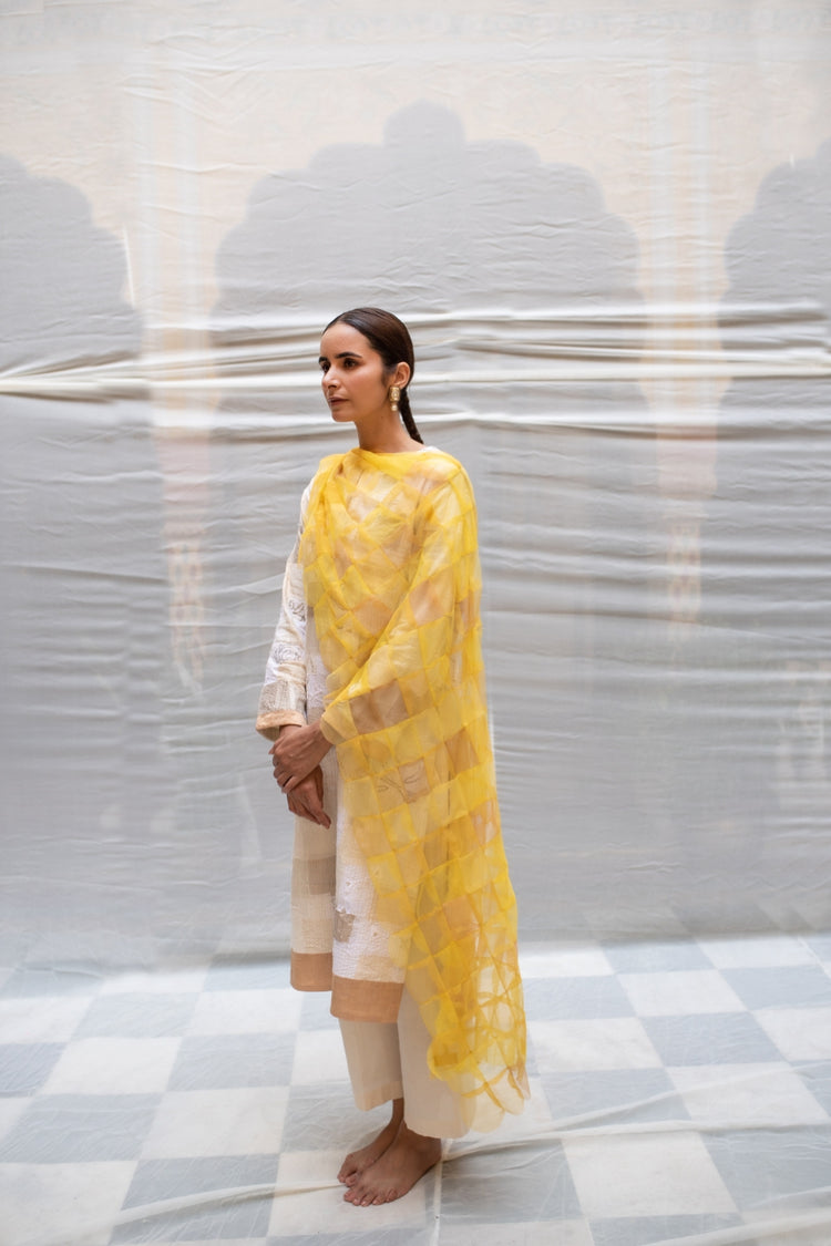 Amba- Yellow Tulle Upcycled Patchwork Stole