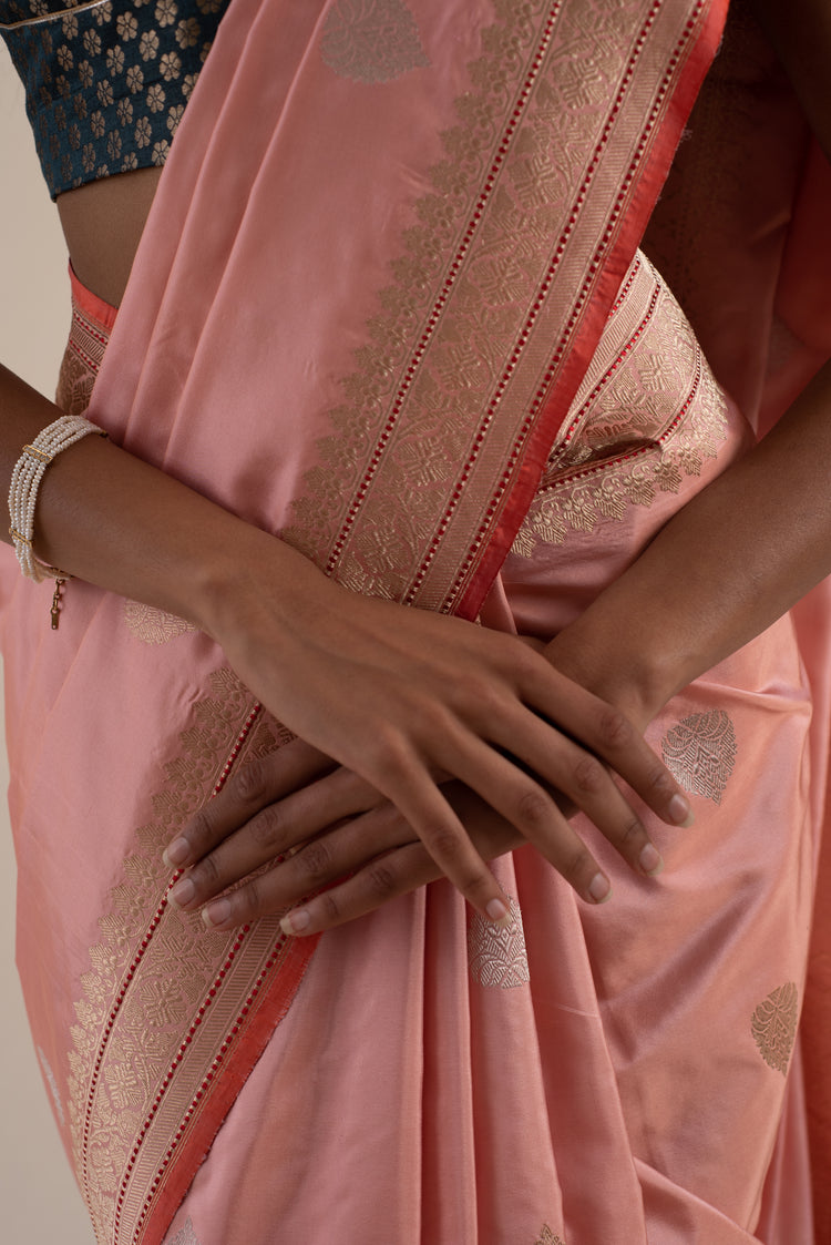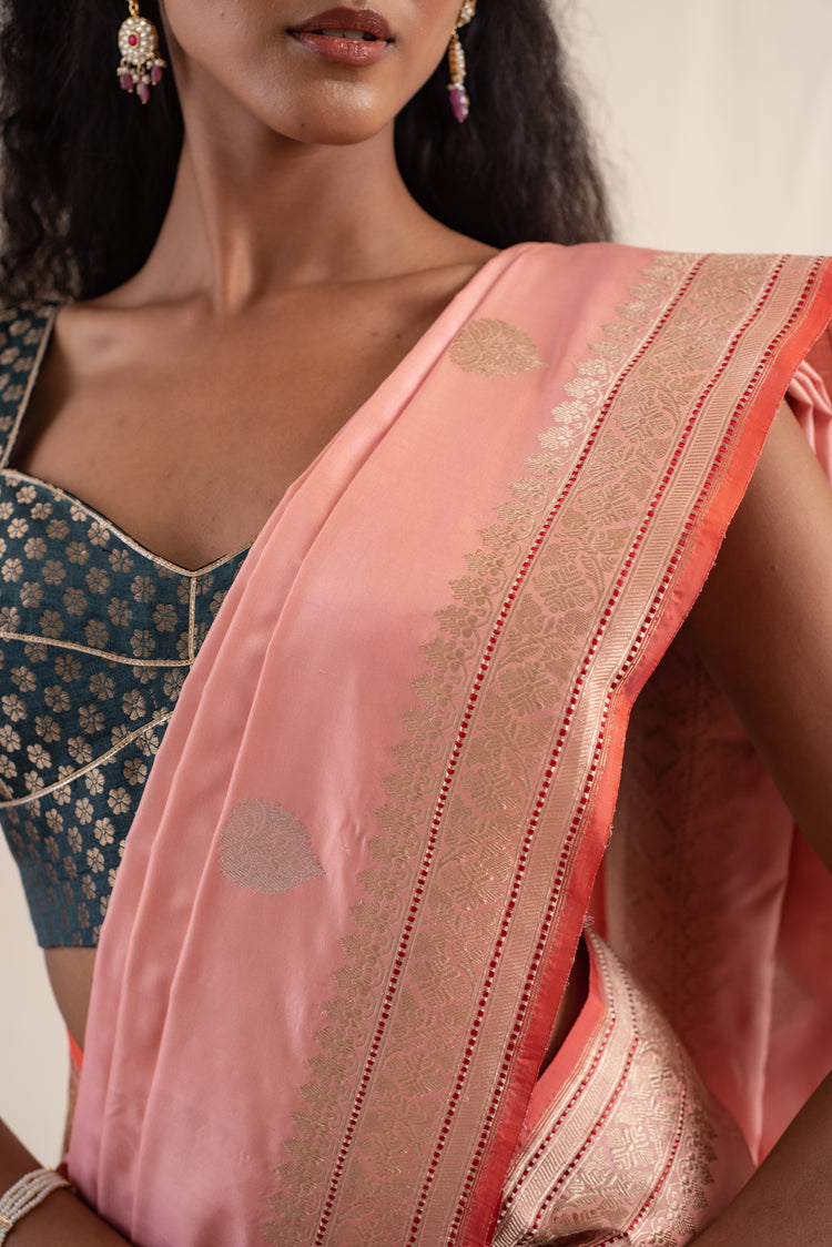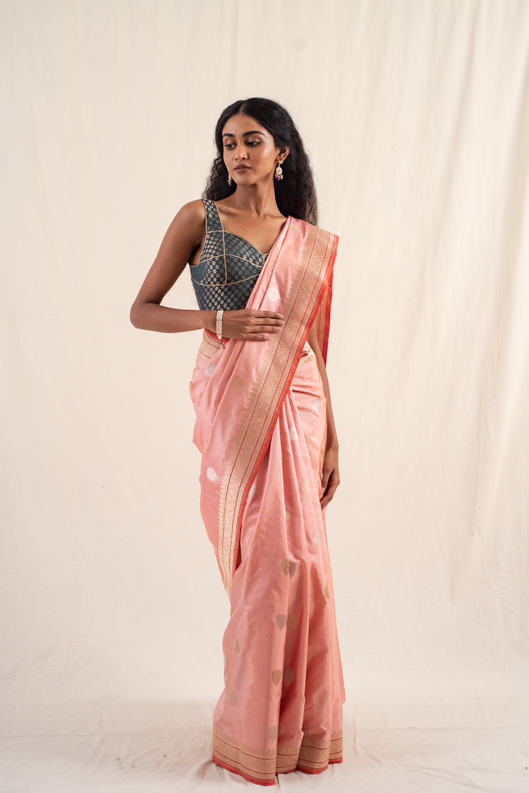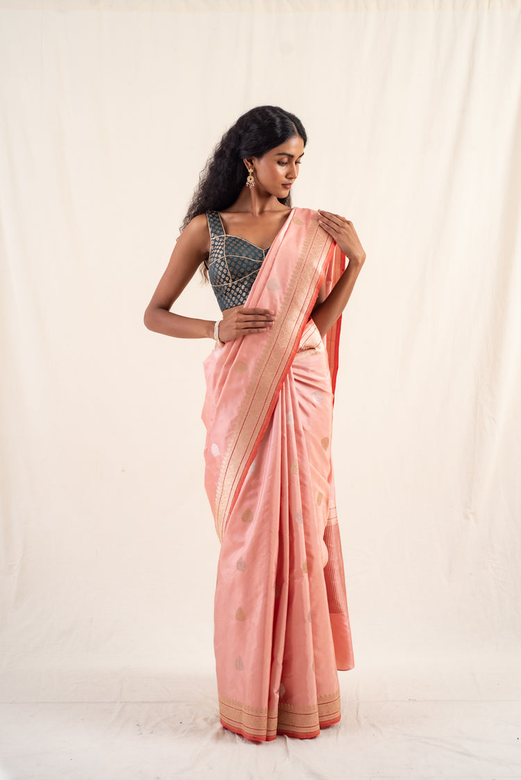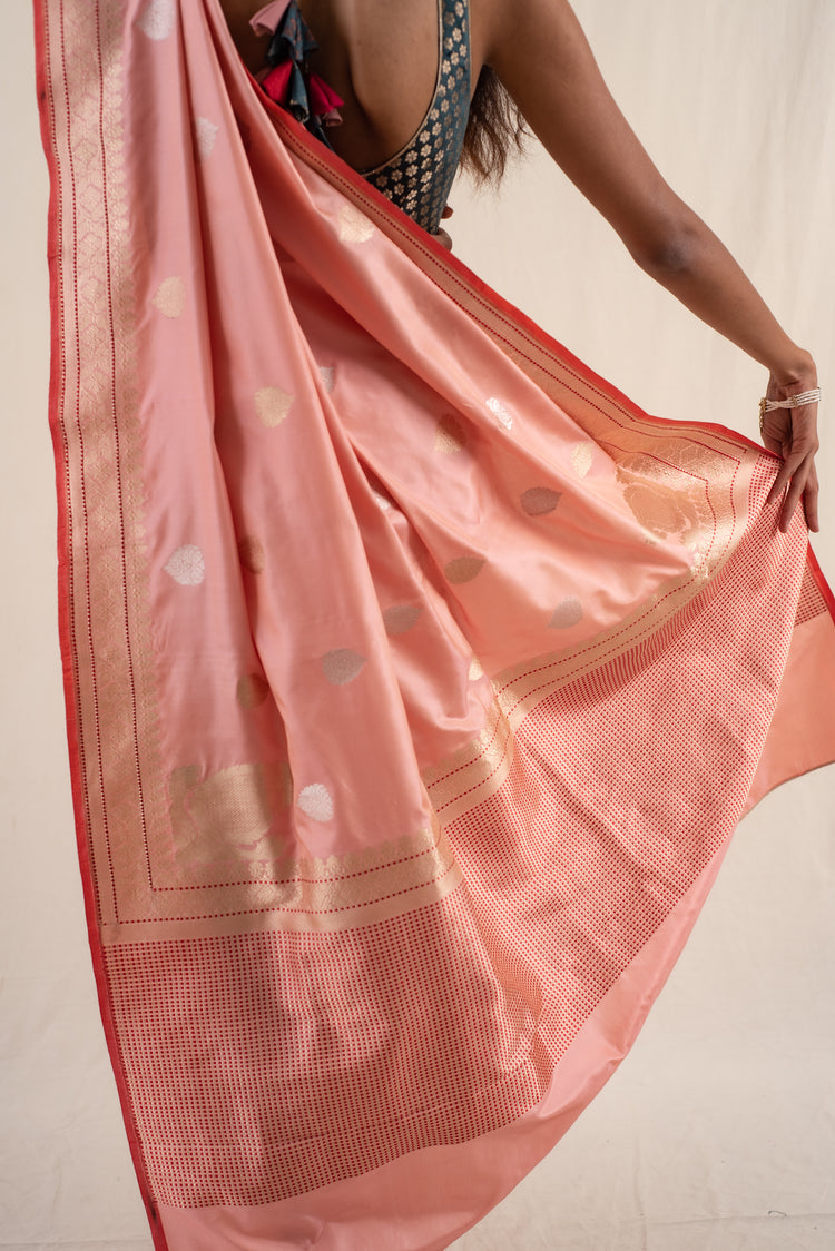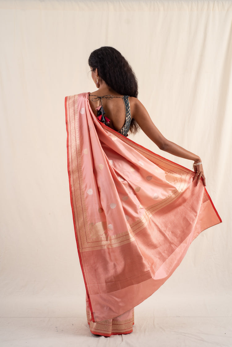 Arshiya- Coral Silk Brocade Banarasi Saree