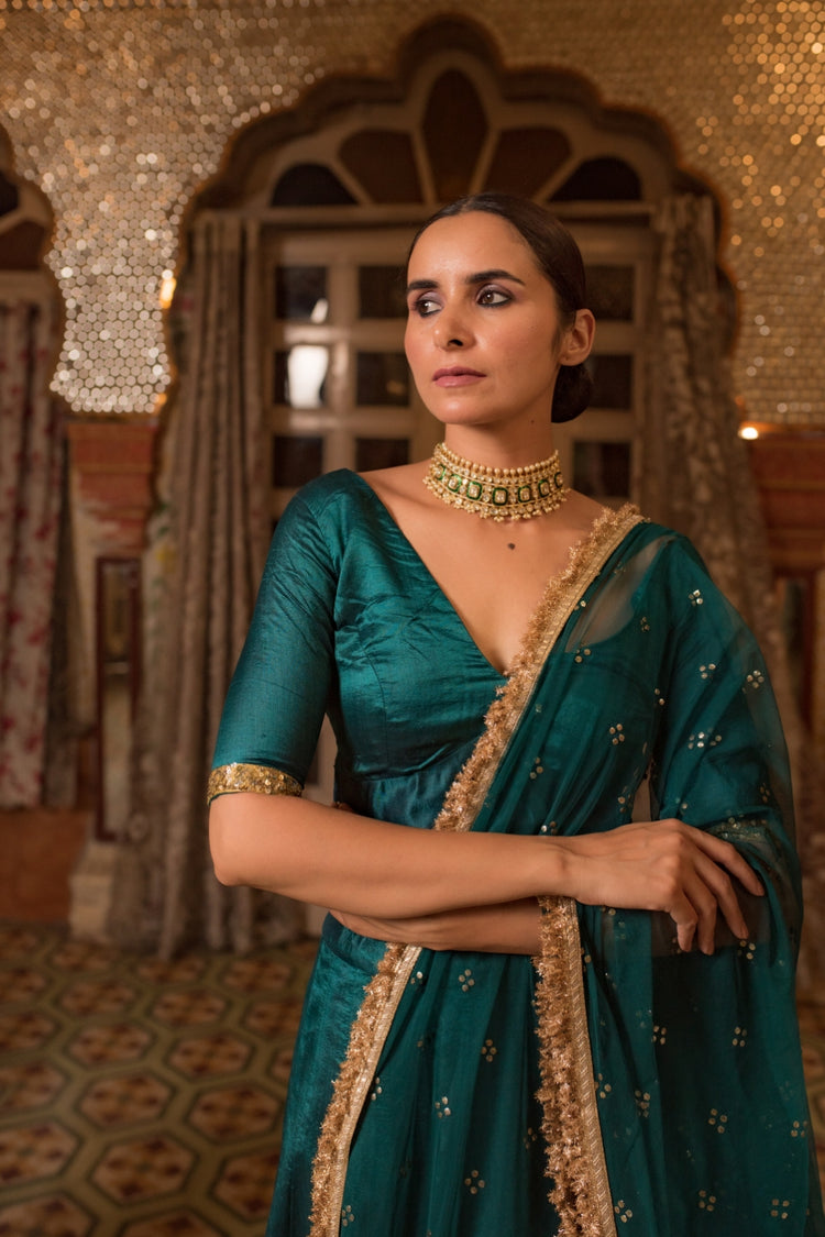 Jayalakshmi- Teal Silk Chanderi Lehanga