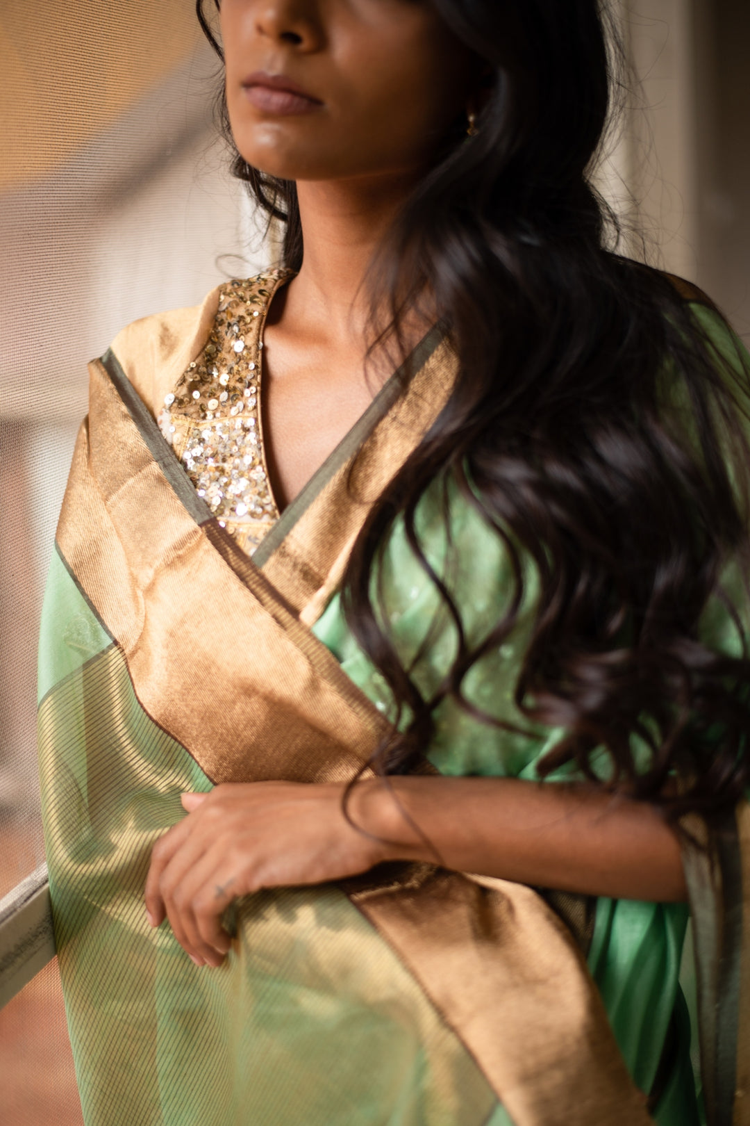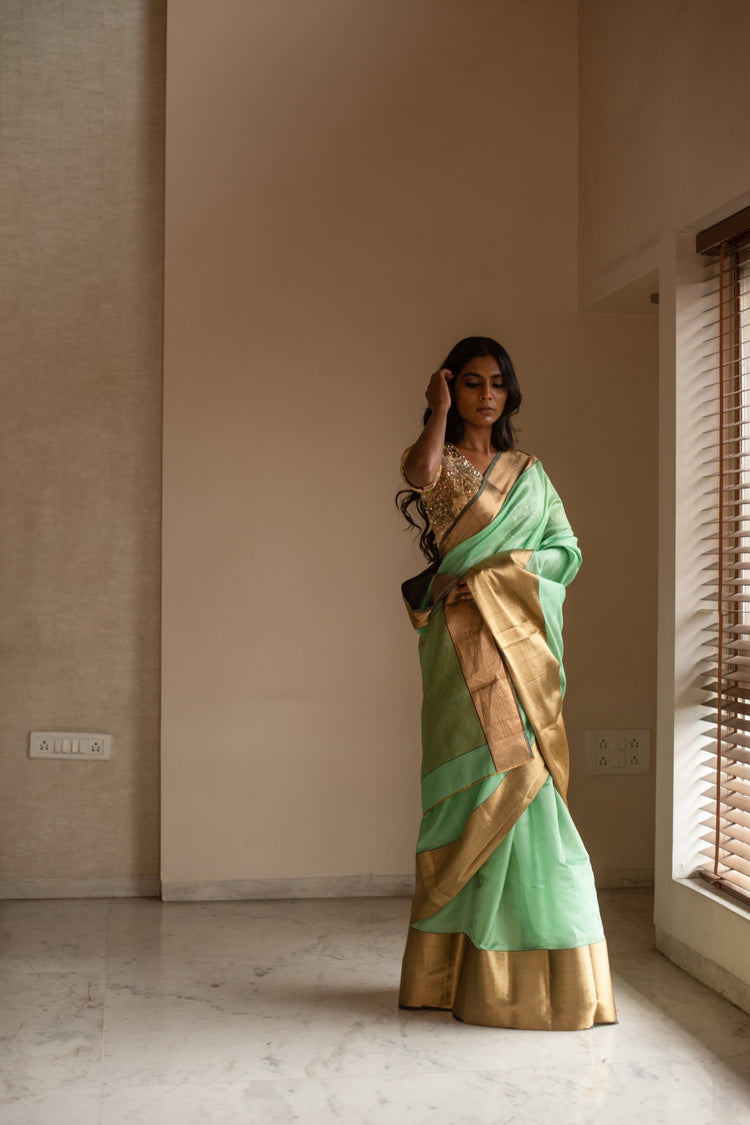 LOPA (GREEN)- Green Silk Chanderi Saree