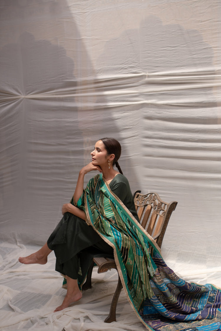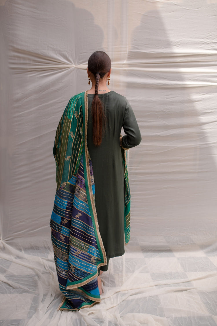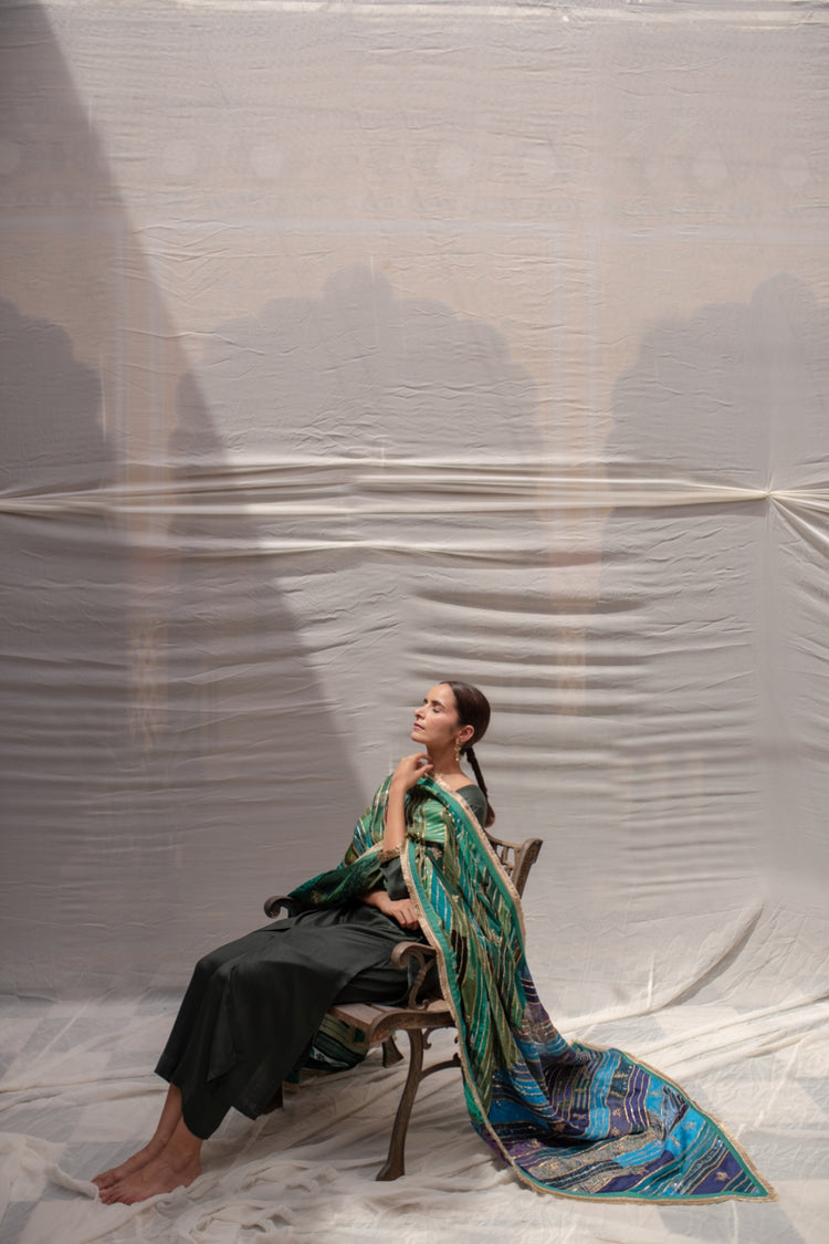 Meenakshi- Blue-Green Upcycled Patchwork Dupatta