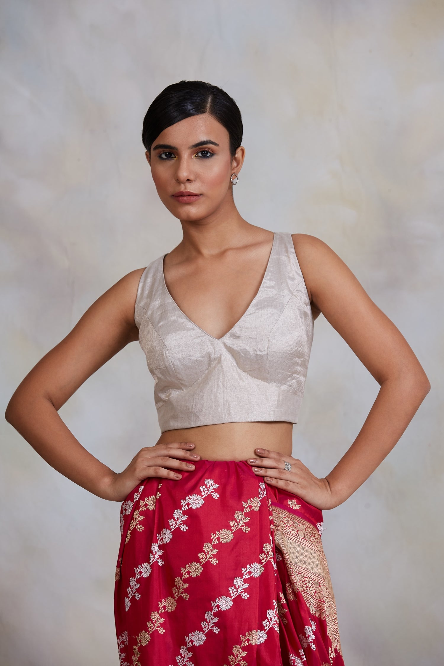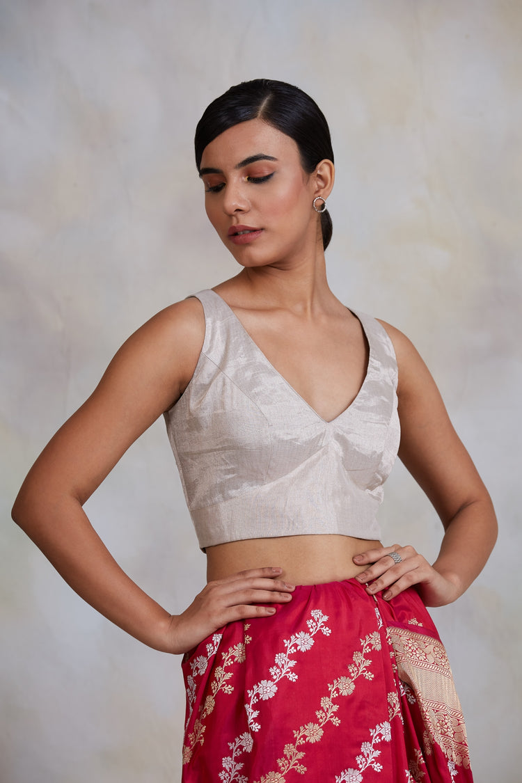 Mrinal- Silver Silk Chanderi Tissue Blouse