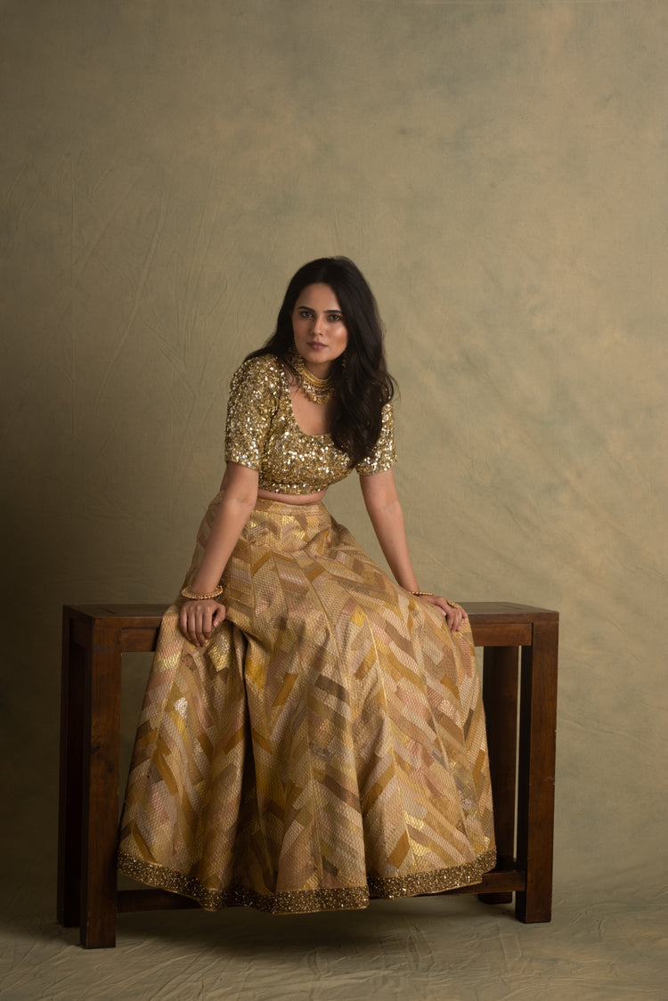 Rika- Gold Hand-Embroidered Sequin Blouse