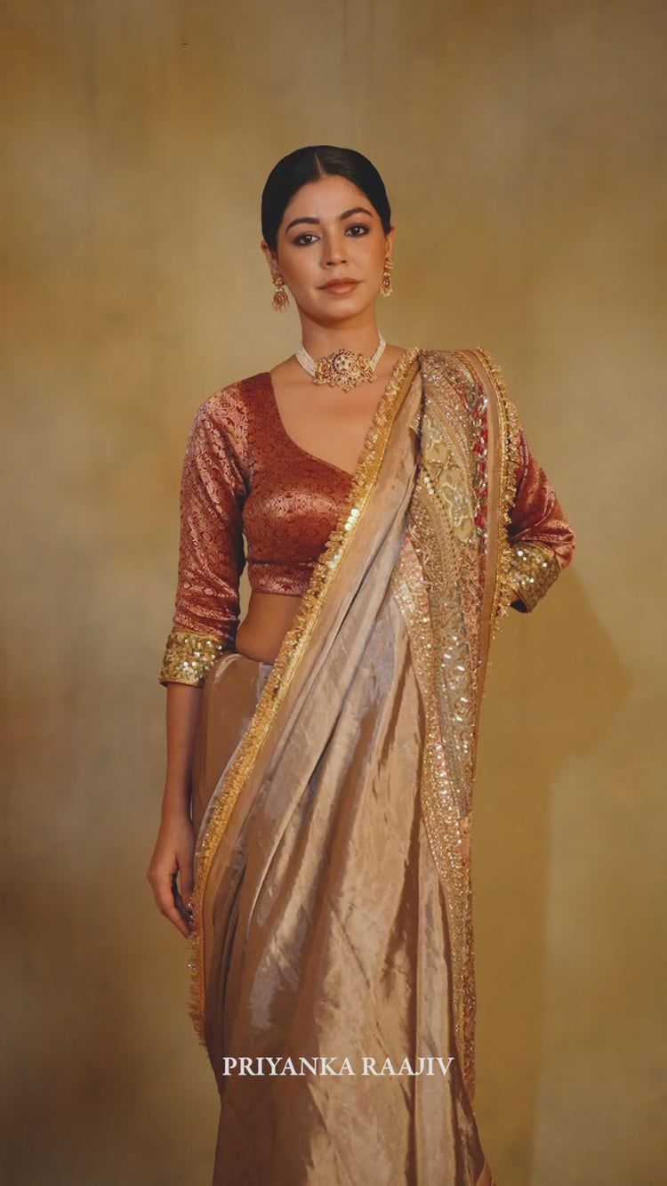 Saptami- Silver Silk Tissue Chanderi Upcycled Jod Saree