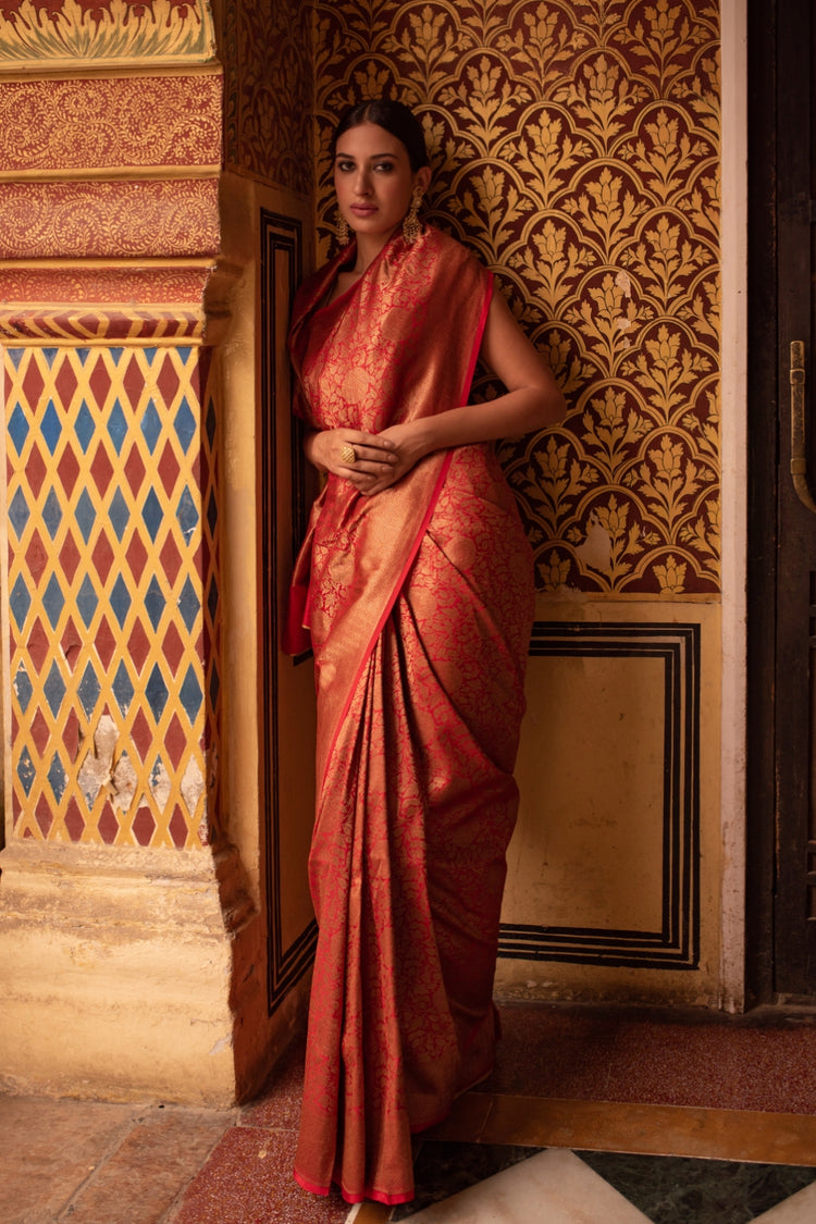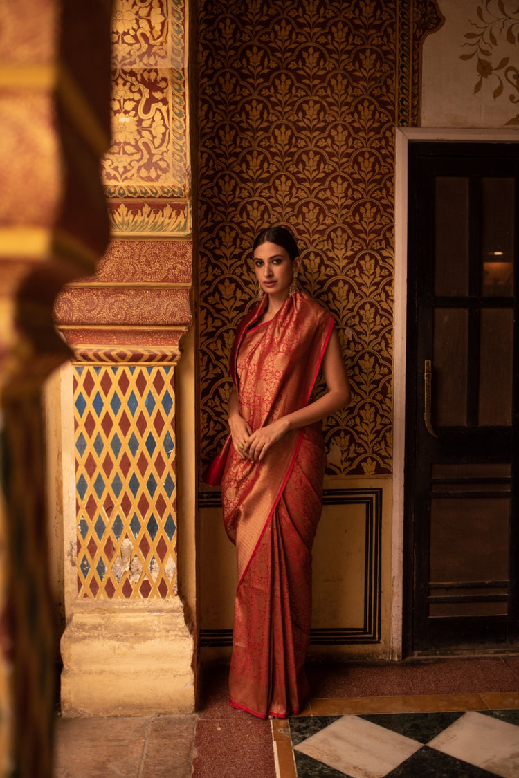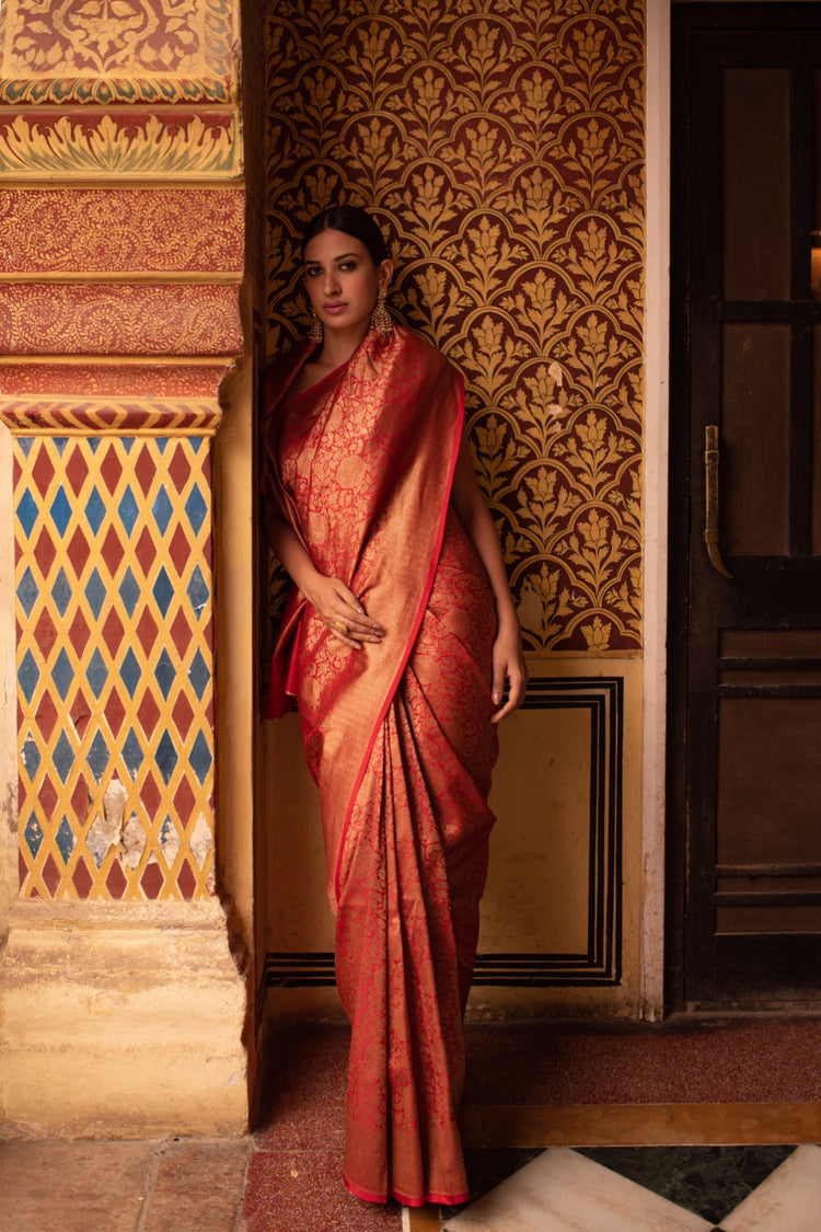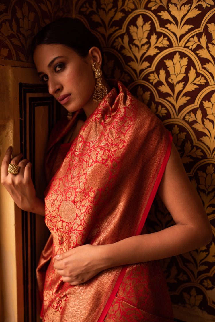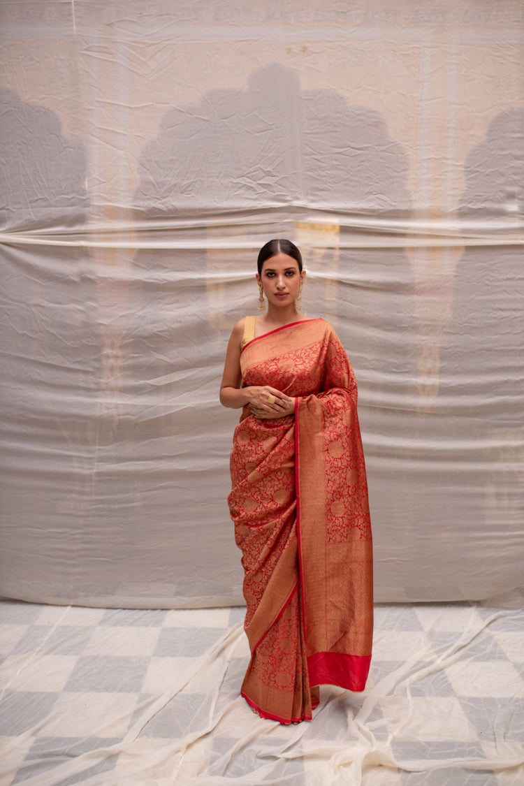 Tara Red- Silk Brocade Banarasi Saree