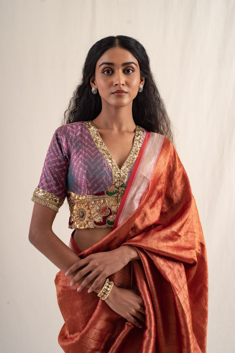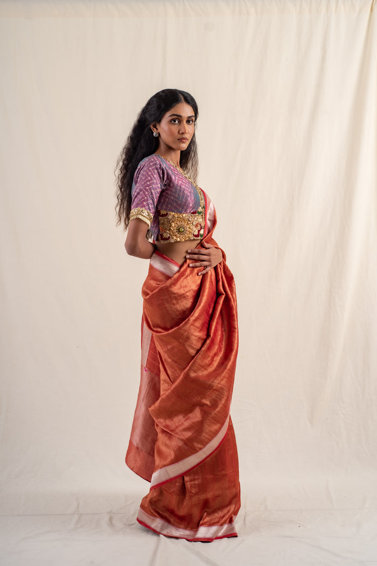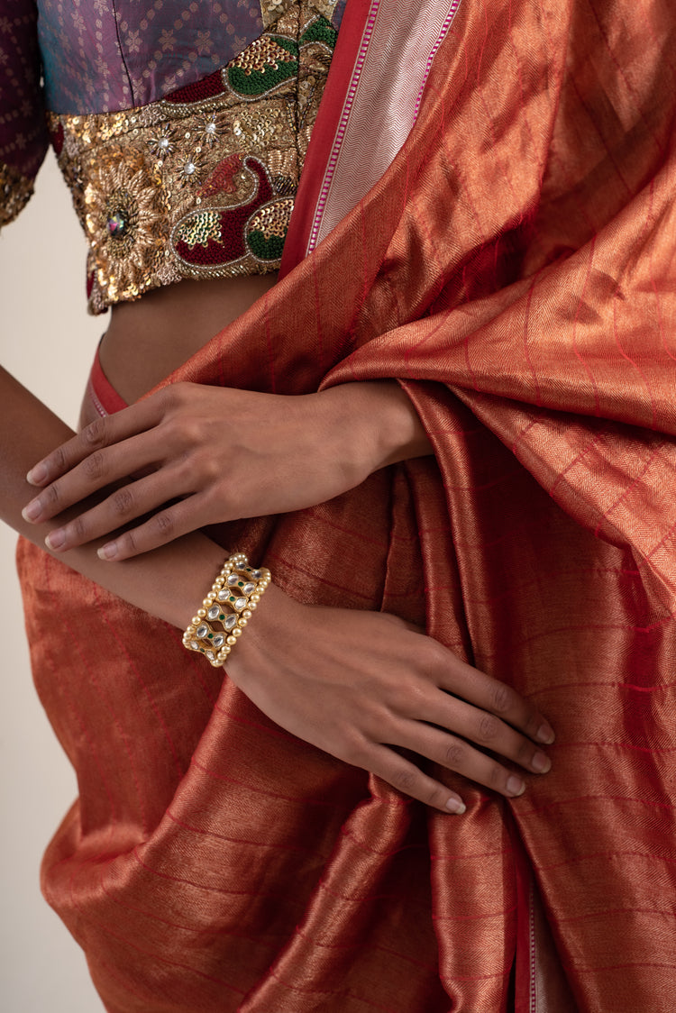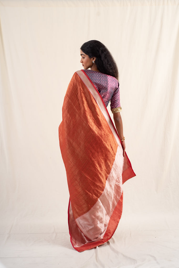 Zaveri - Burnt Orange Silk Banarasi Saree