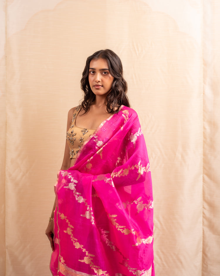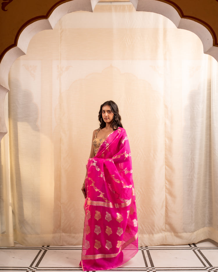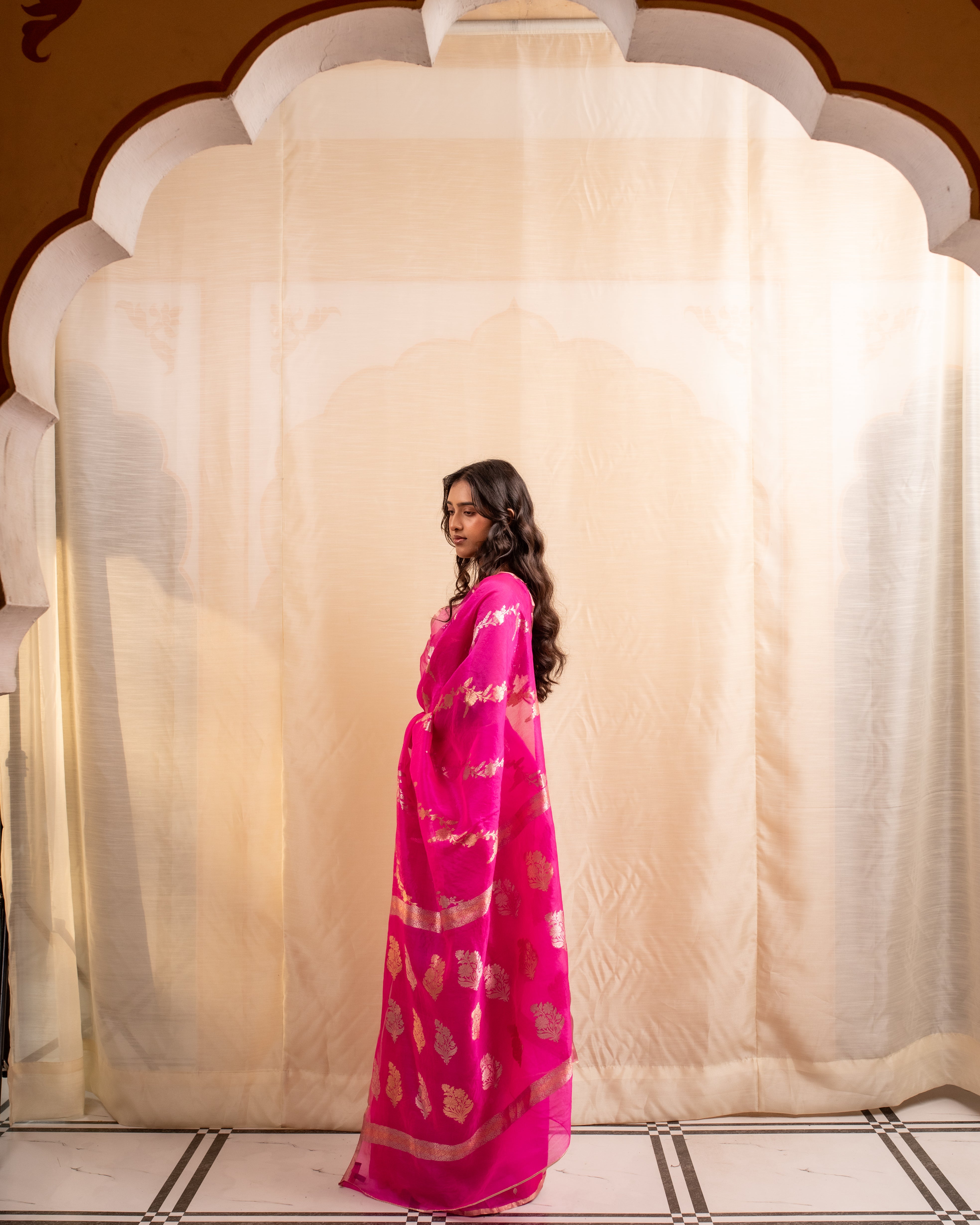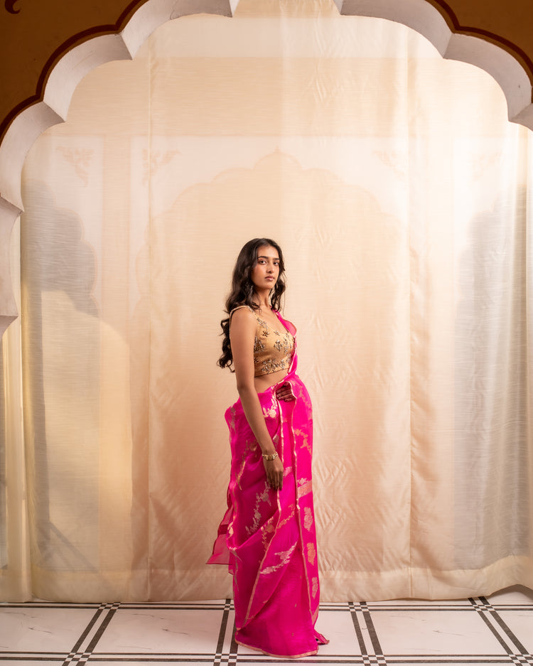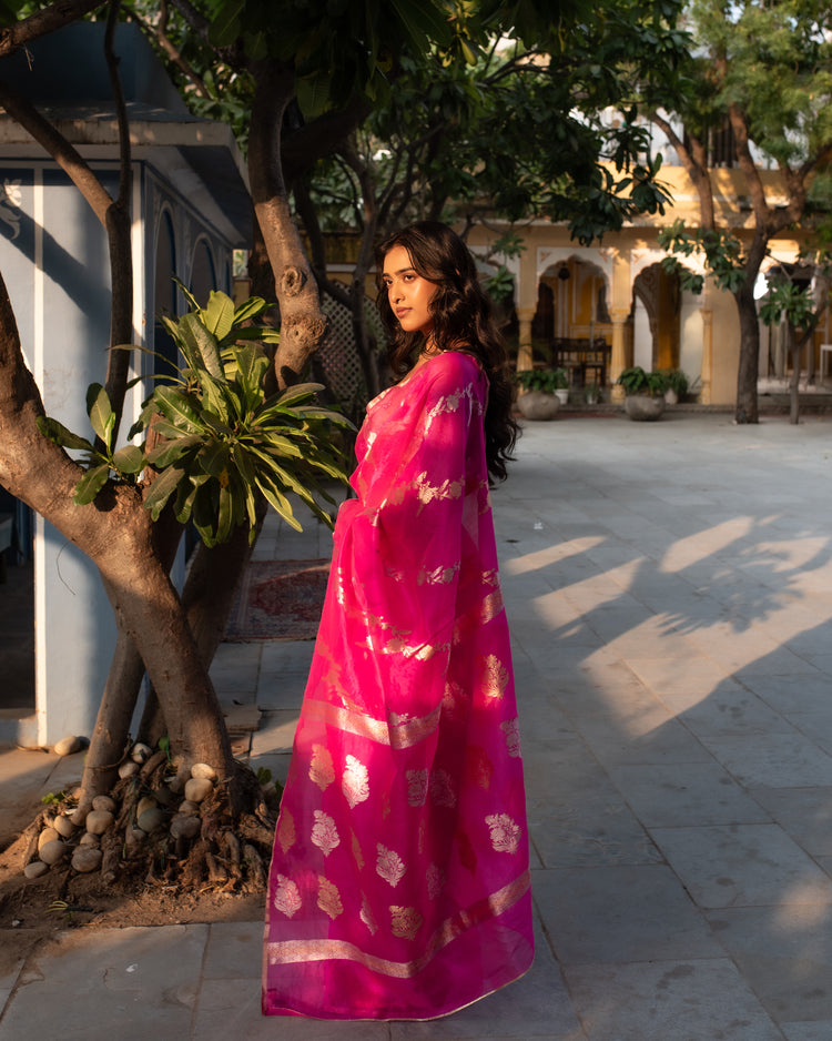 Manik- Indian Pink Silk Organza Banarasi Saree