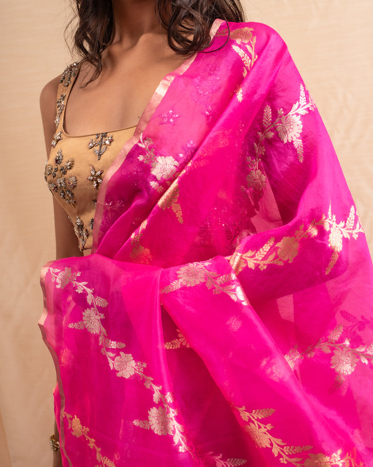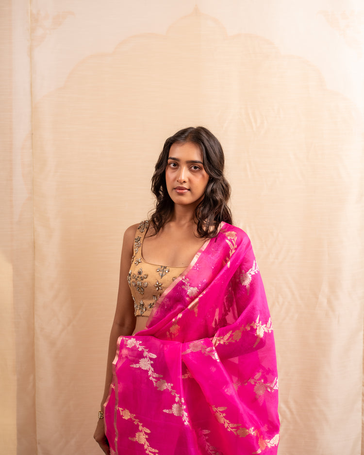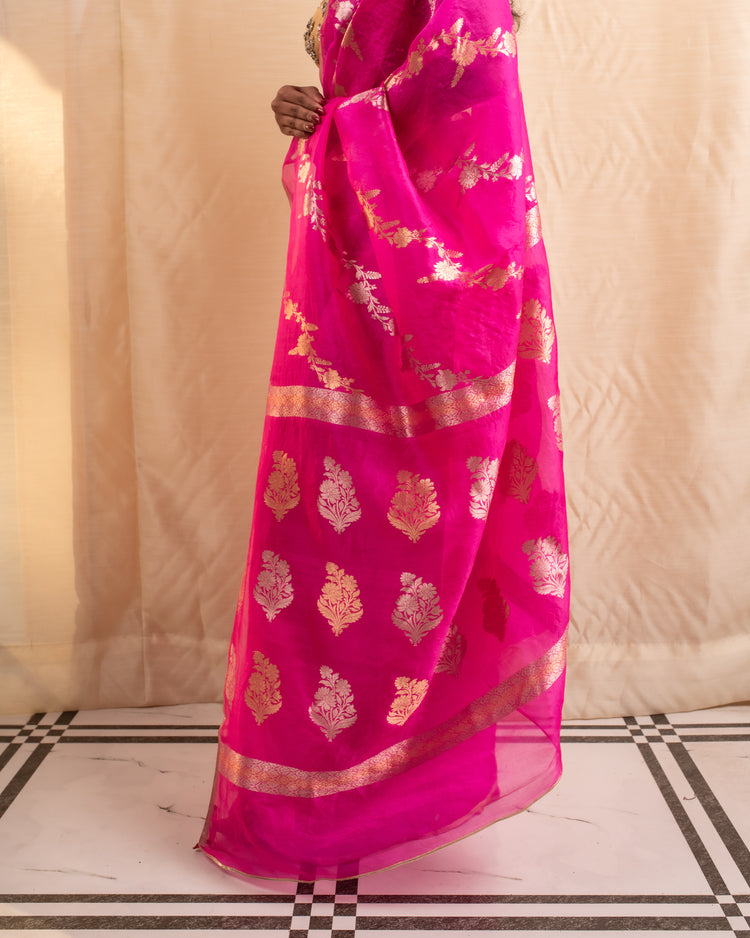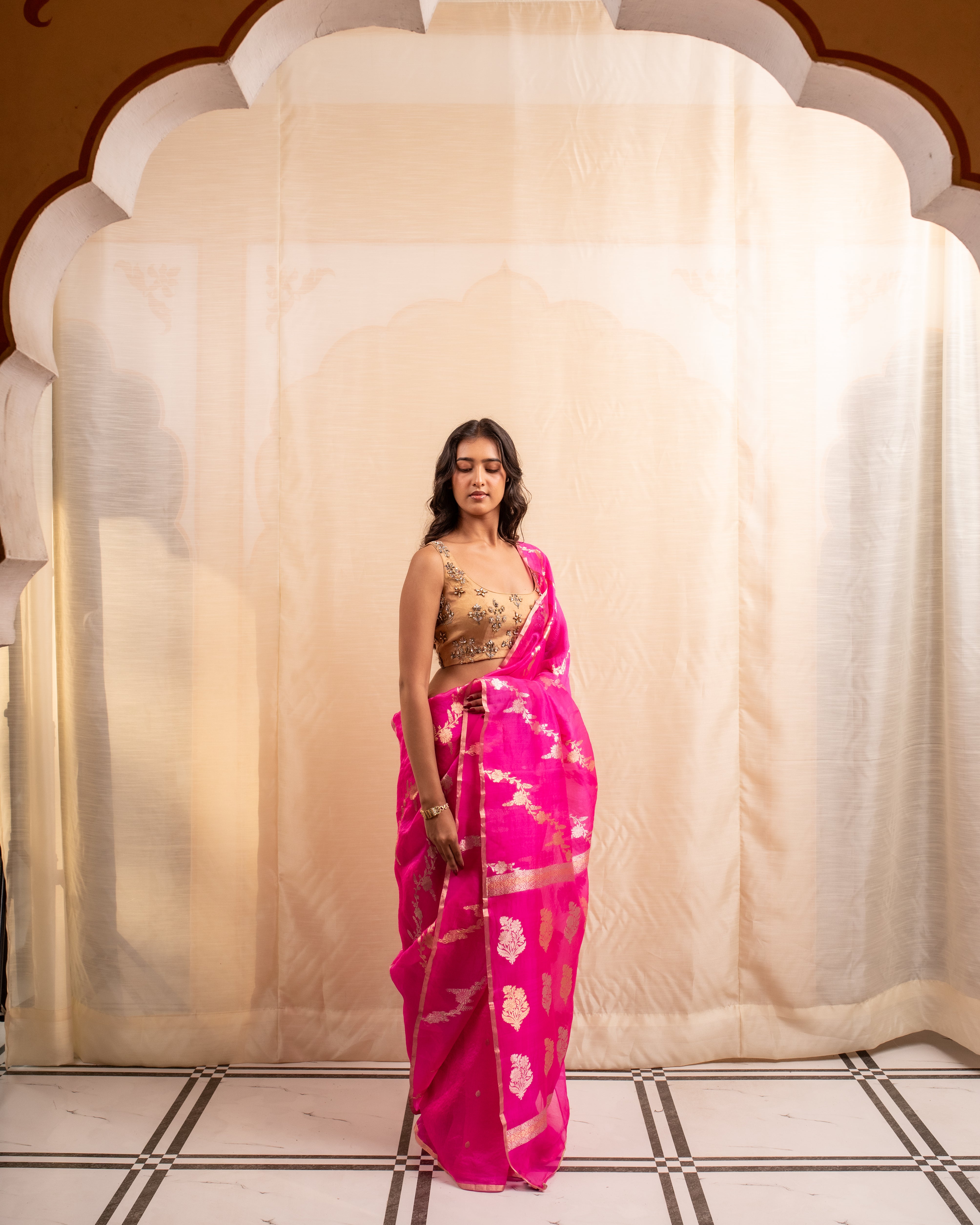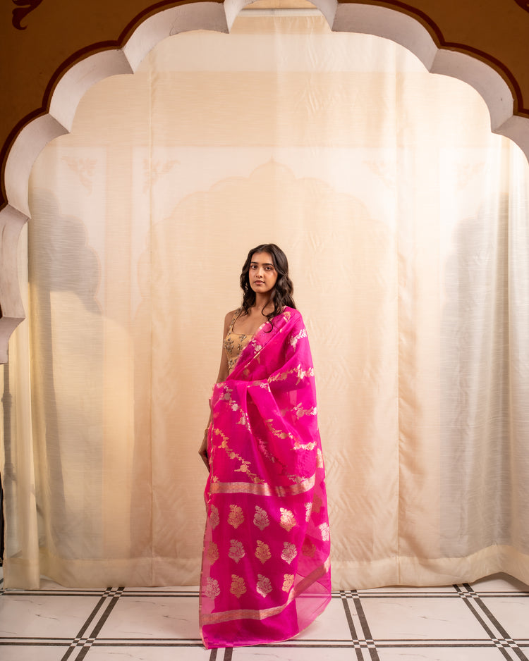 Manik- Indian Pink Silk Organza Banarasi Saree