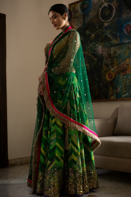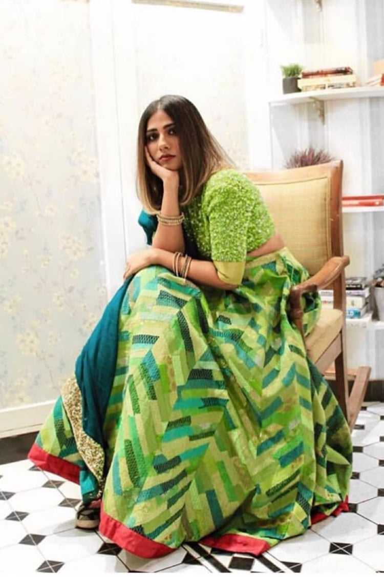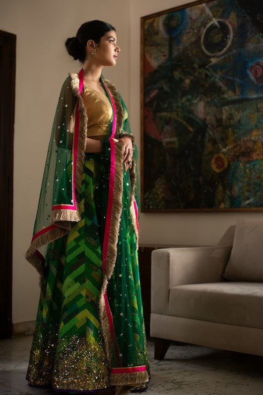 Heera Panna- Green Upcycled Patchwork Lehenga