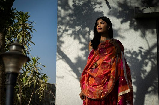 Moonga- Red Hand-Embroidered Sequinned Lehenga