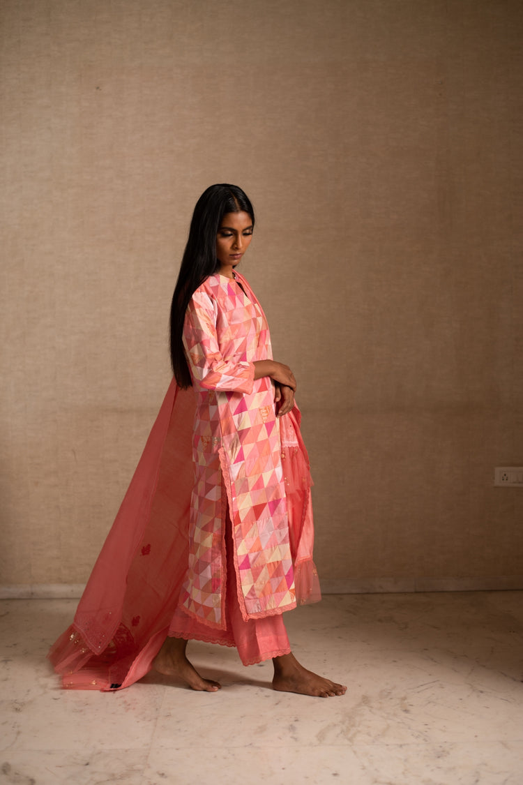 Afsa - Pink Upcycled Patchwork Kurta with Palazzo and Dupatta