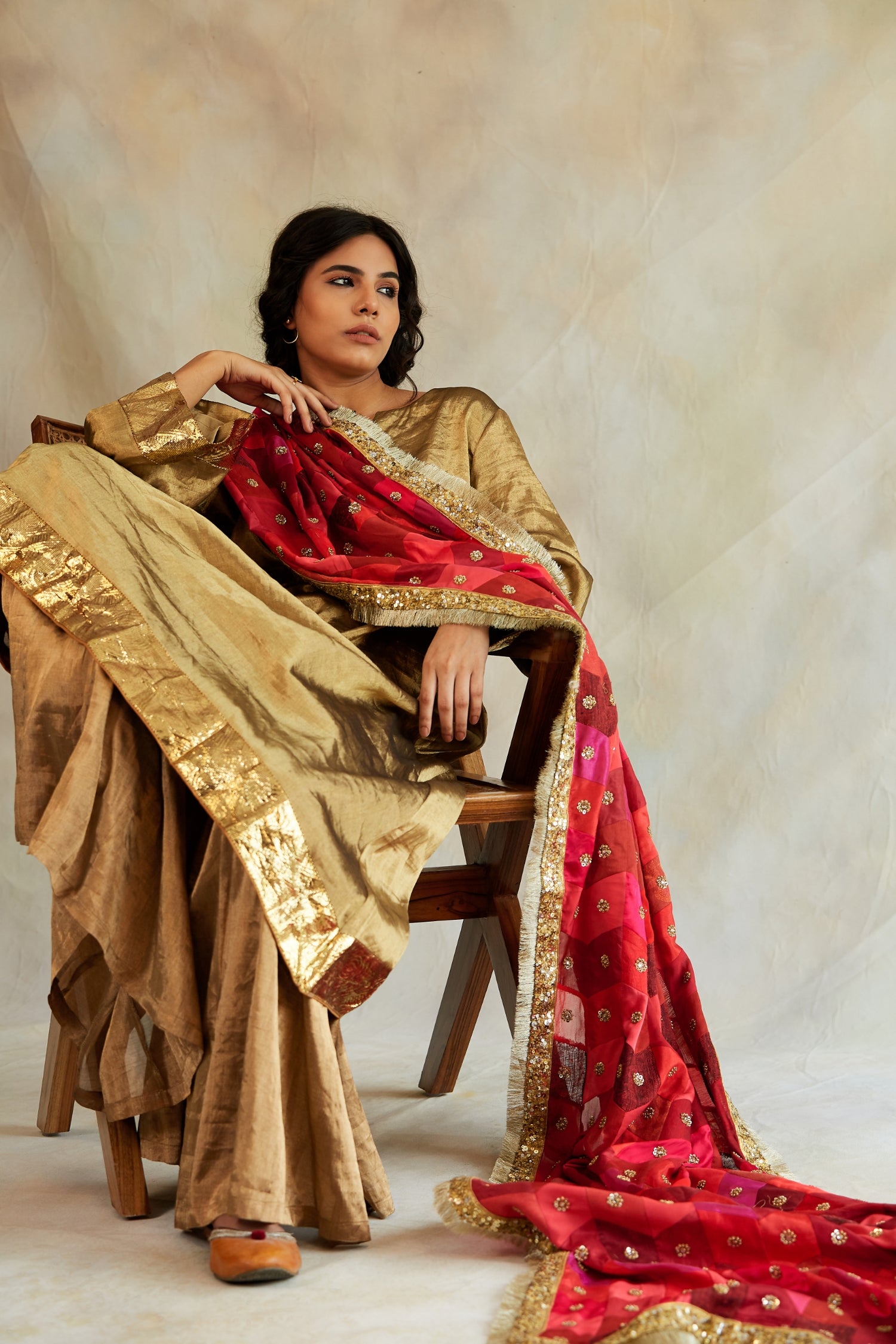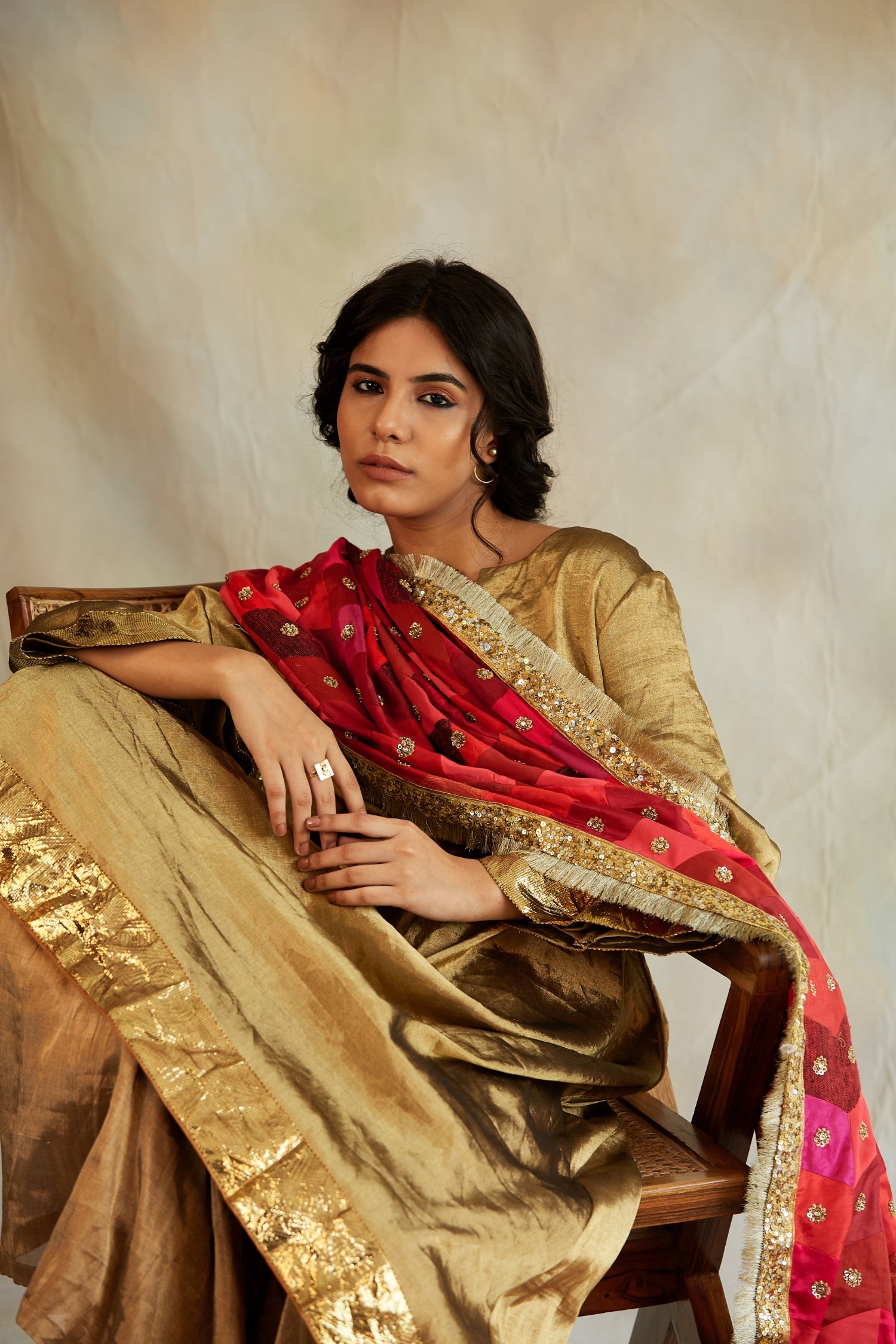 The upcycled designer dupatta is a sustainable fashion classic piece which has transformed waste fabric surplus into unique , high quality pieces. This innovative approach reduces fashion waste but also adds an element of individuality and creativity to the fashion industry, making eco conscious style both chic and responsible.