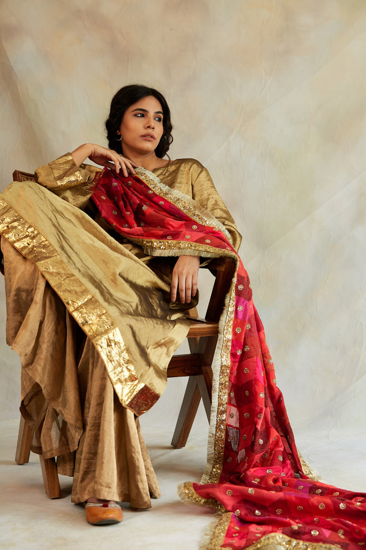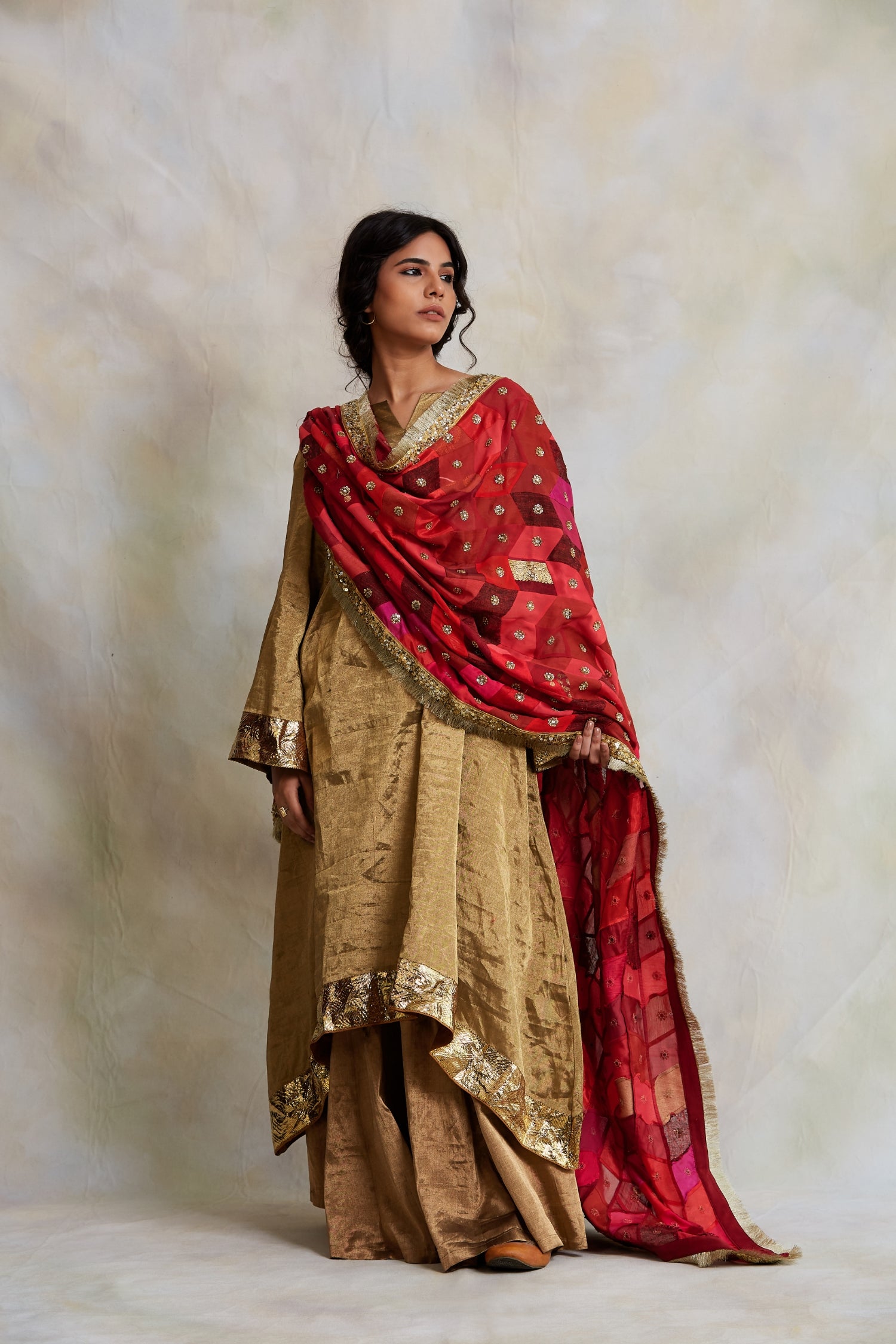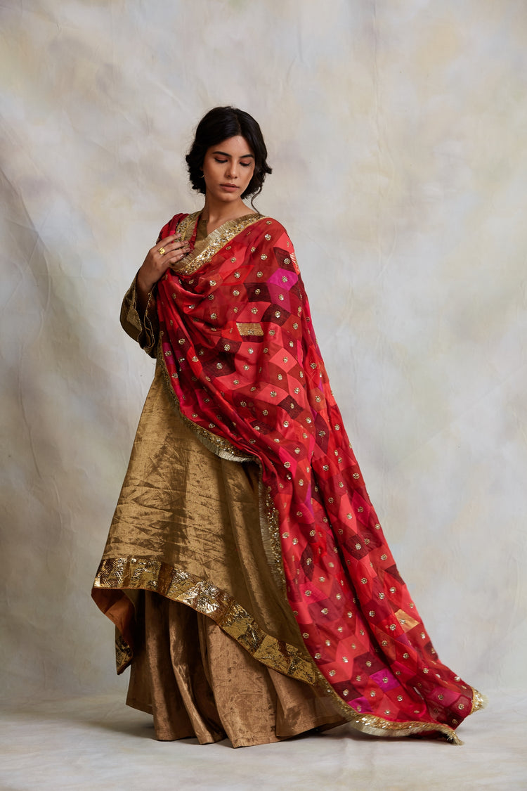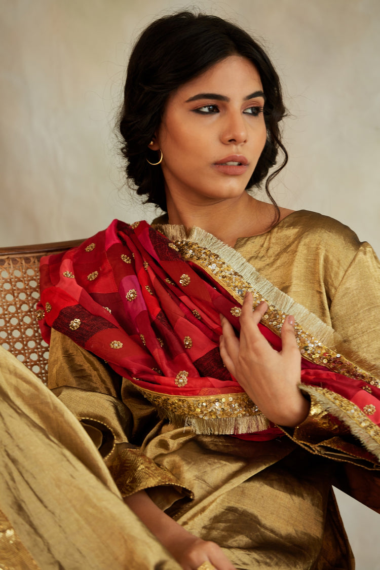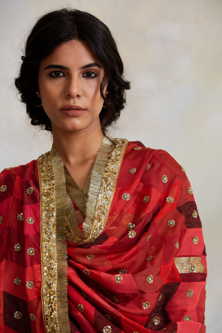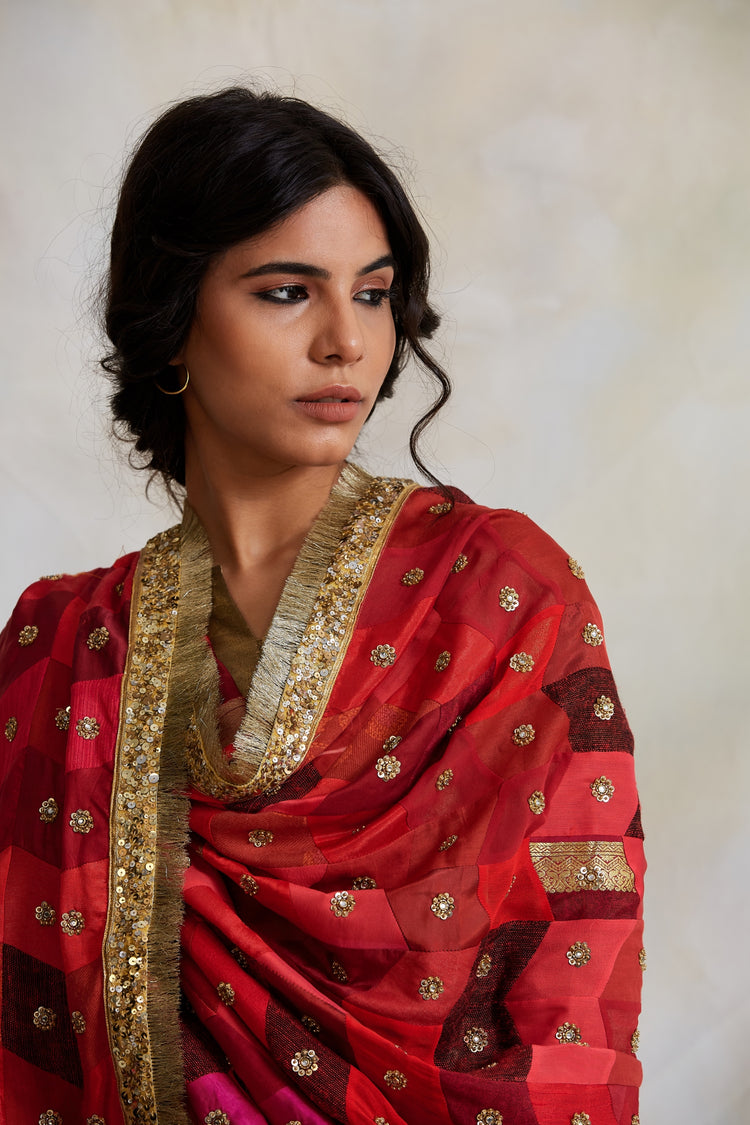 Gulshan- Red and Pink Upcycled Patchwork Dupatta