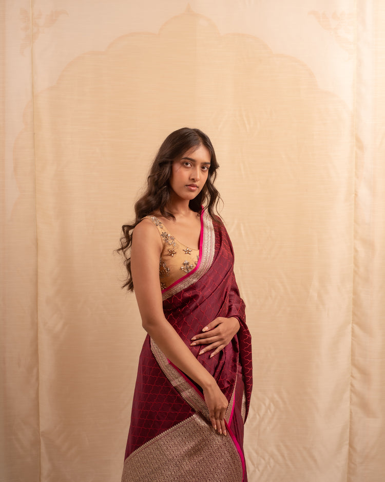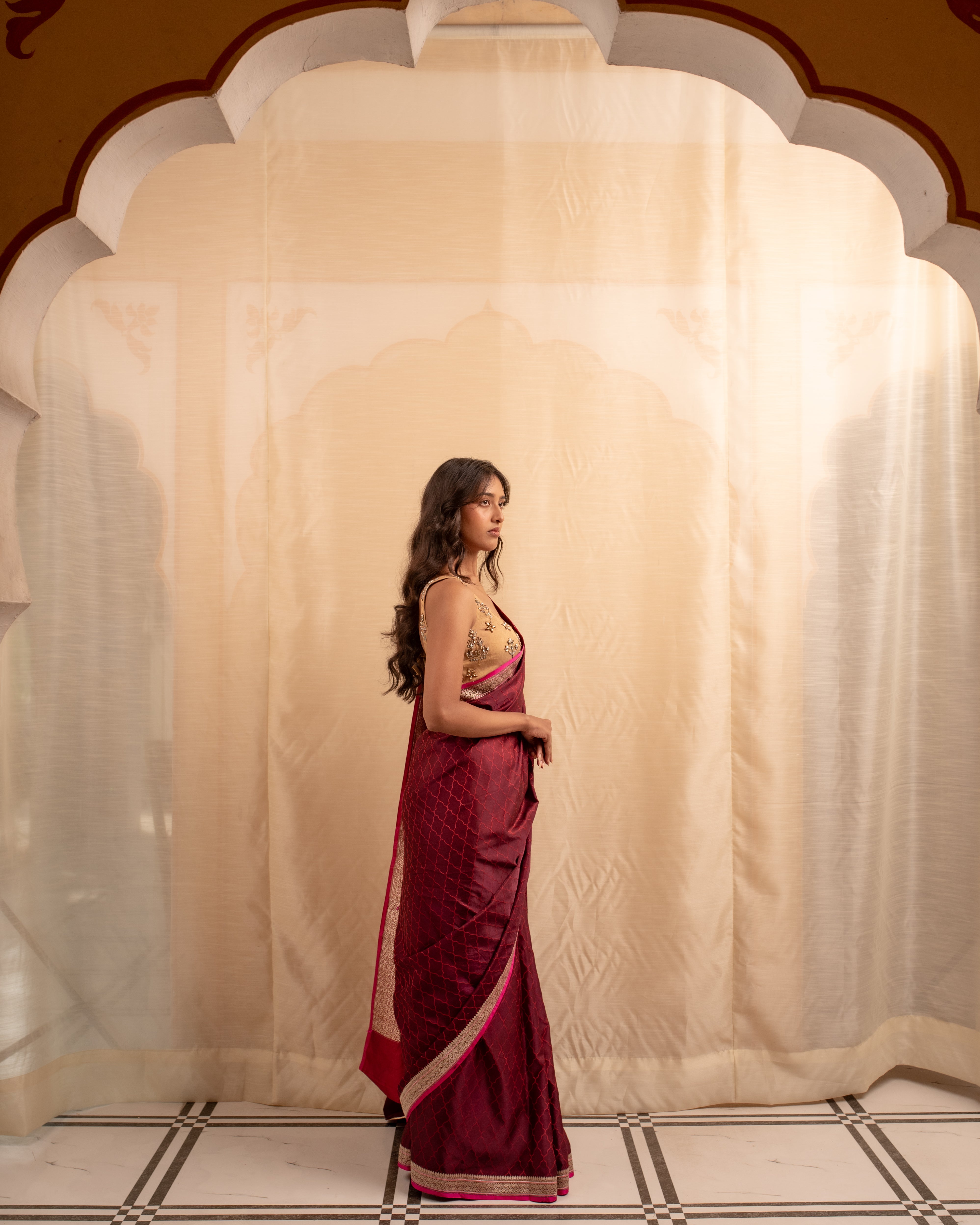 Manikya- Burgundy Silk Brocade Banarasi Saree