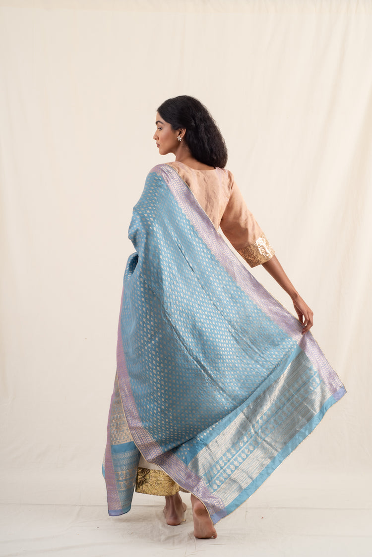 Shor - Cobalt Blue Silk Banarsi Dupatta