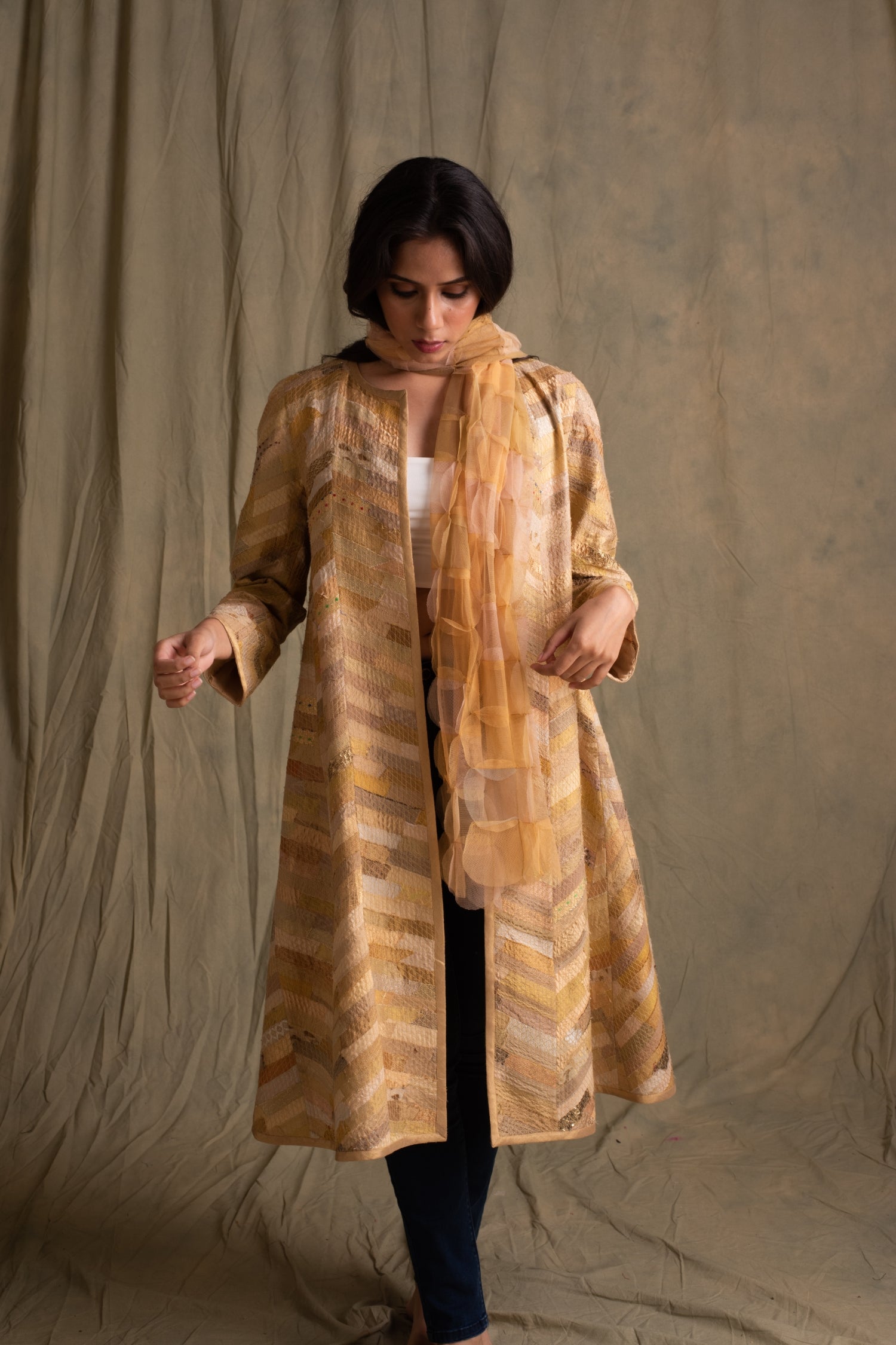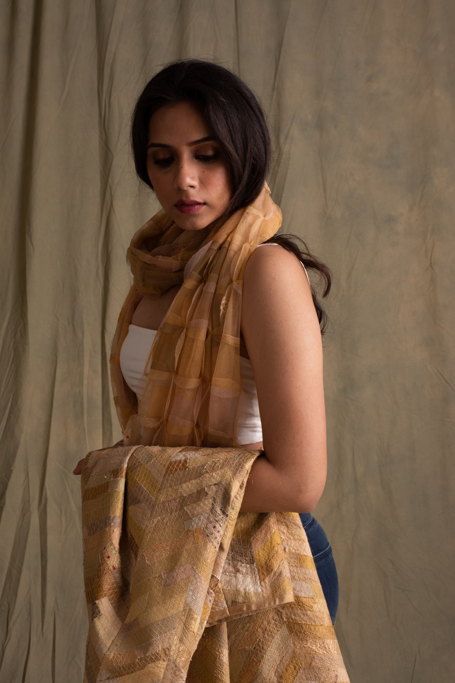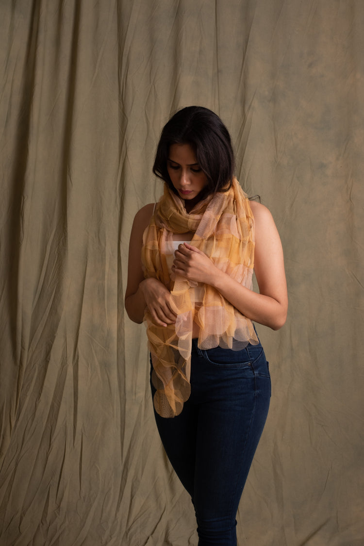 Beige upcycled tulle patchwork 3D stole