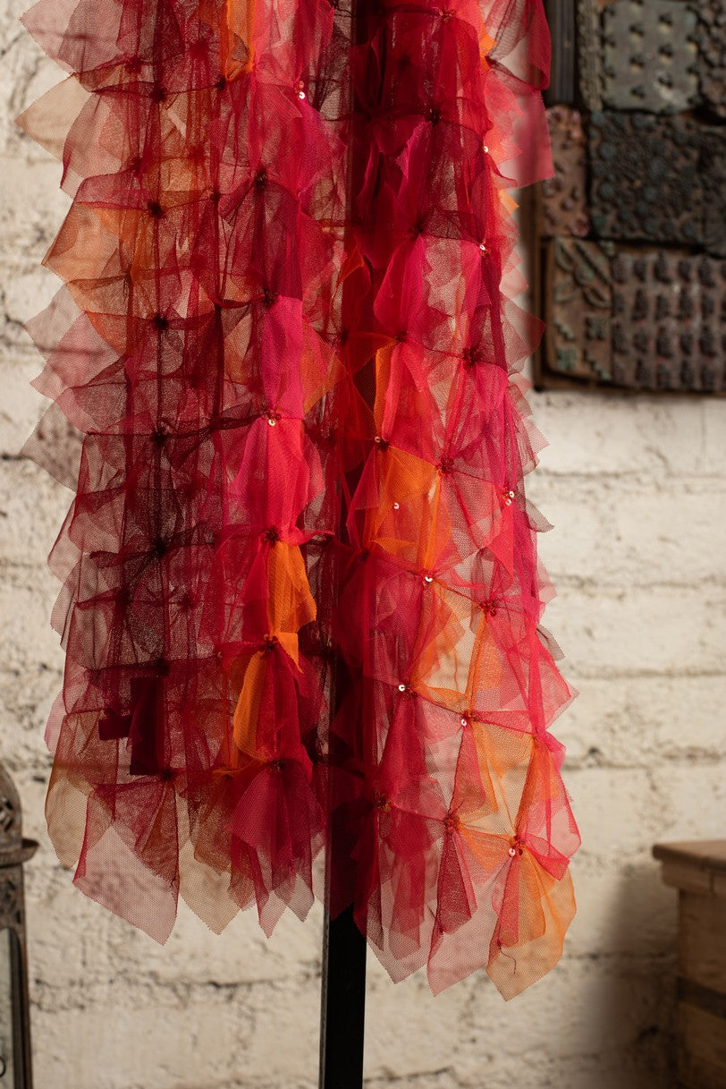Bithi- Red Tulle Upcycled Patchwork Stole
