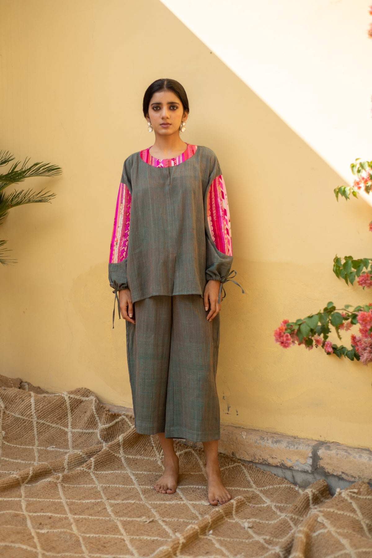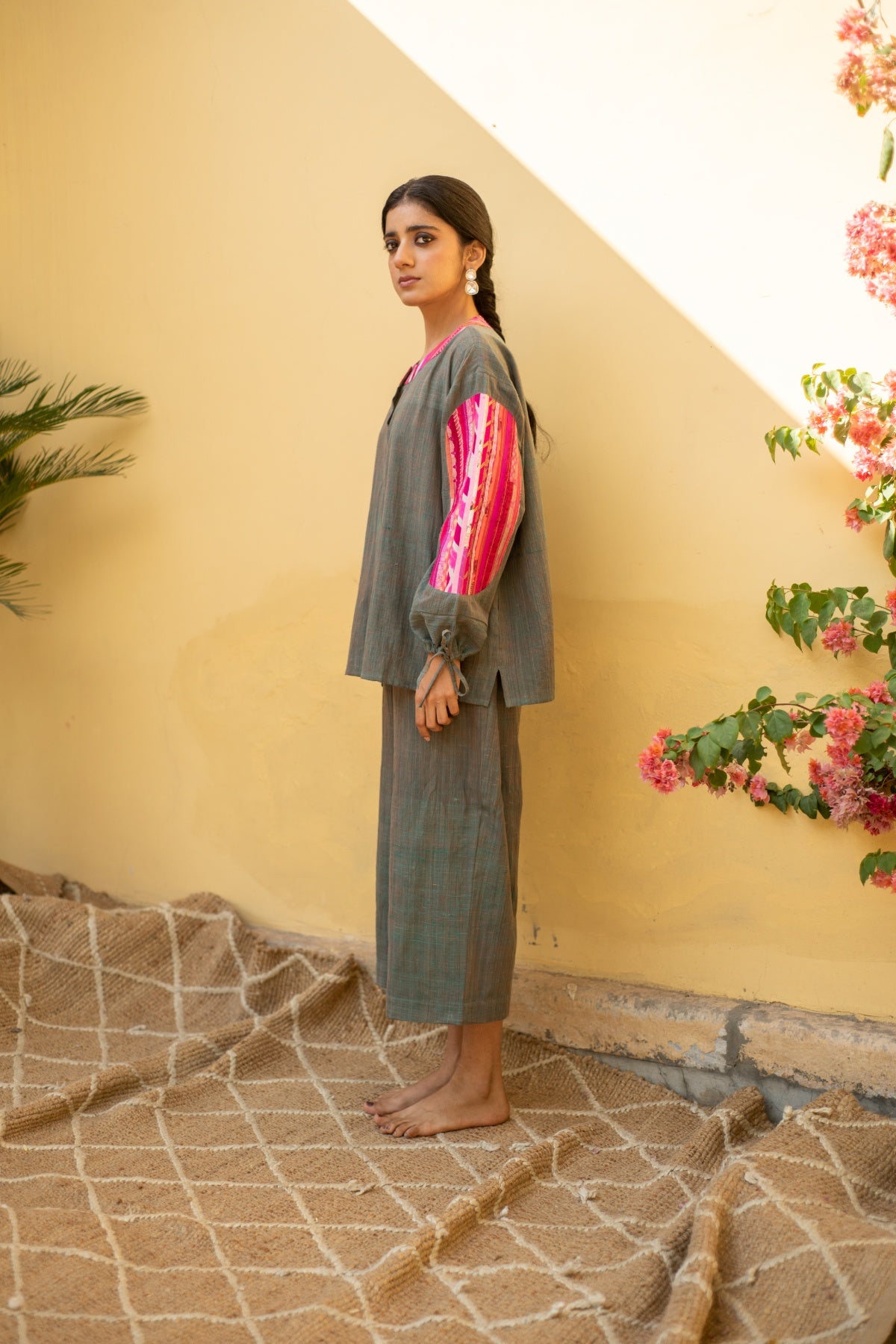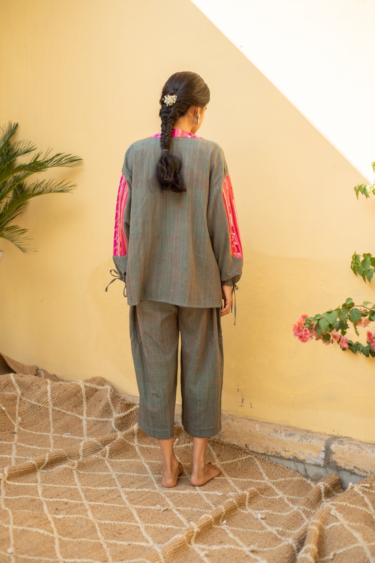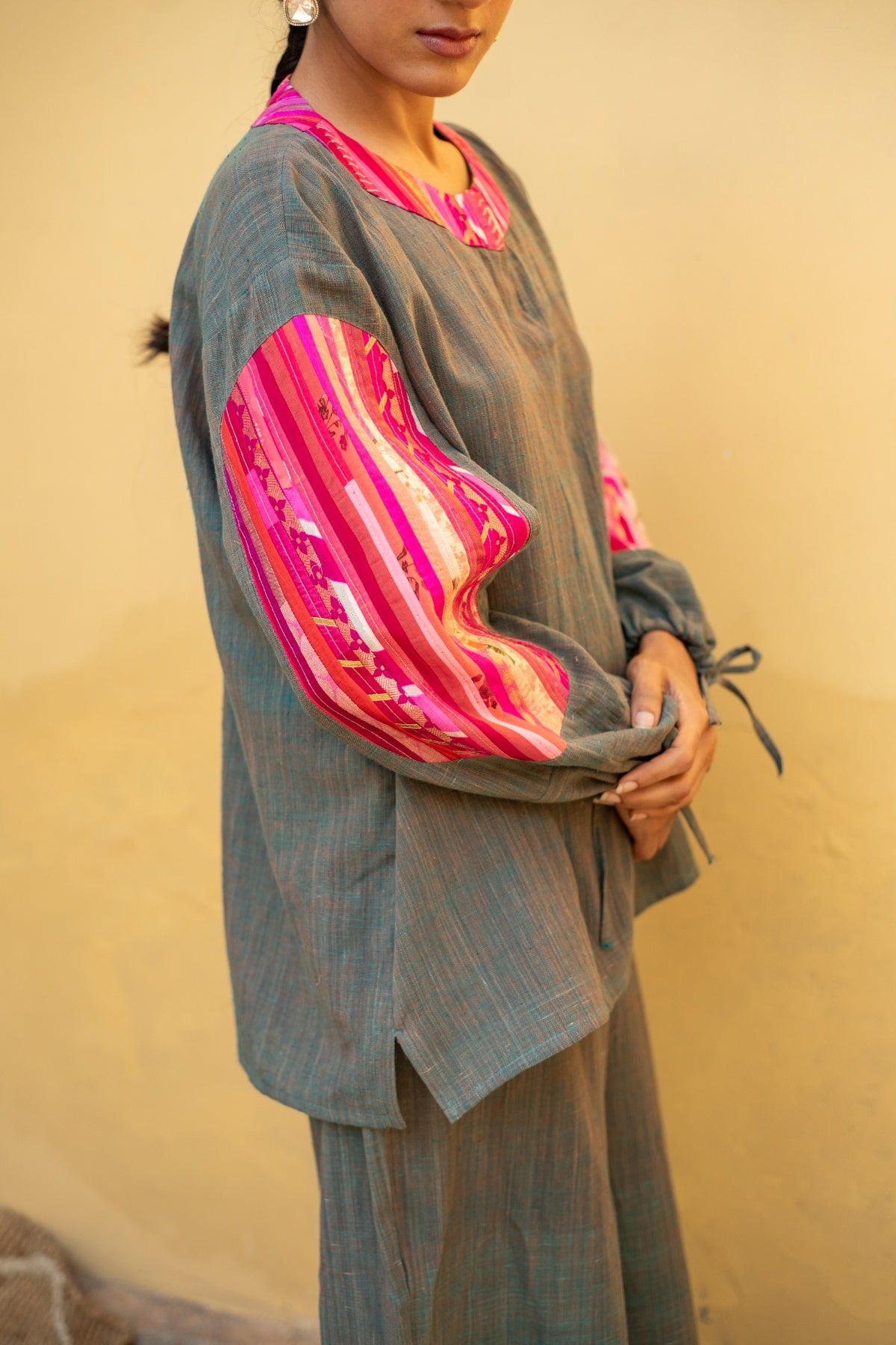 This collection features easy and breathable silhouettes of co-ords and kurta sets made from ethically crafted yarn dyed Kala Cotton and remnants of fabric. The theme of new beginnings and spirituality is reflected in the designs, which promote calmness and inner peace. Each piece is designed with care and attention to detail, meeting high standards of sustainability and ethical production. The collection offers a beautiful blend of style and sustainability, perfect for conscious consumers who care about fashion and the planet.