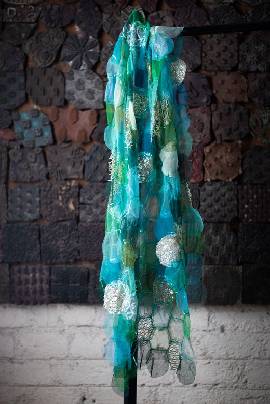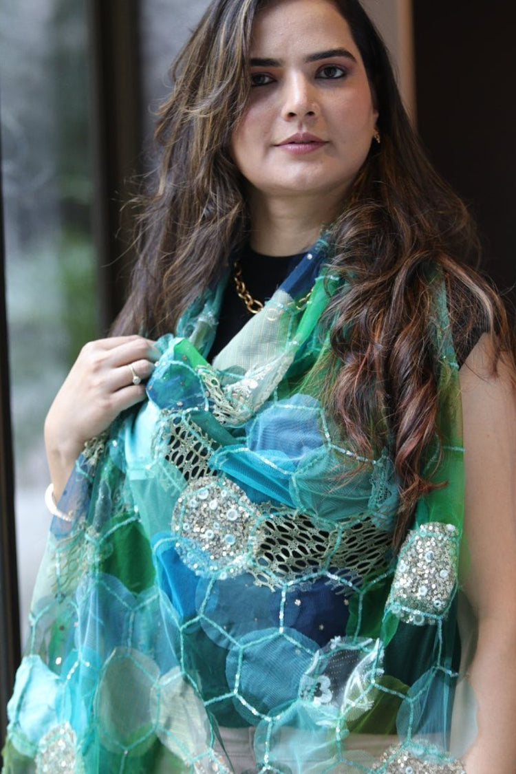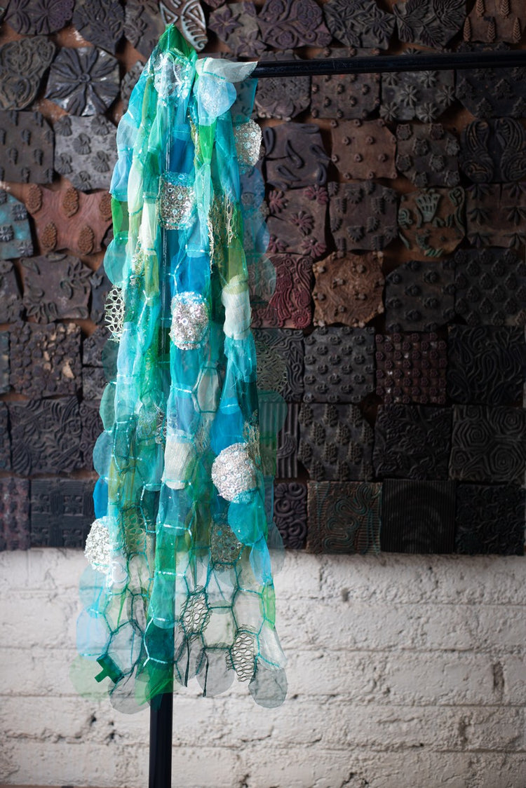 Aliza- Blue Tulle Upcycled Patchwork Stole
