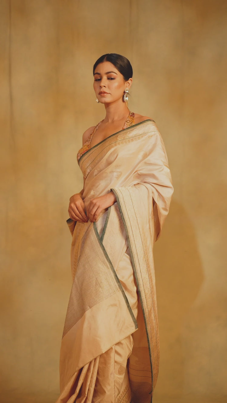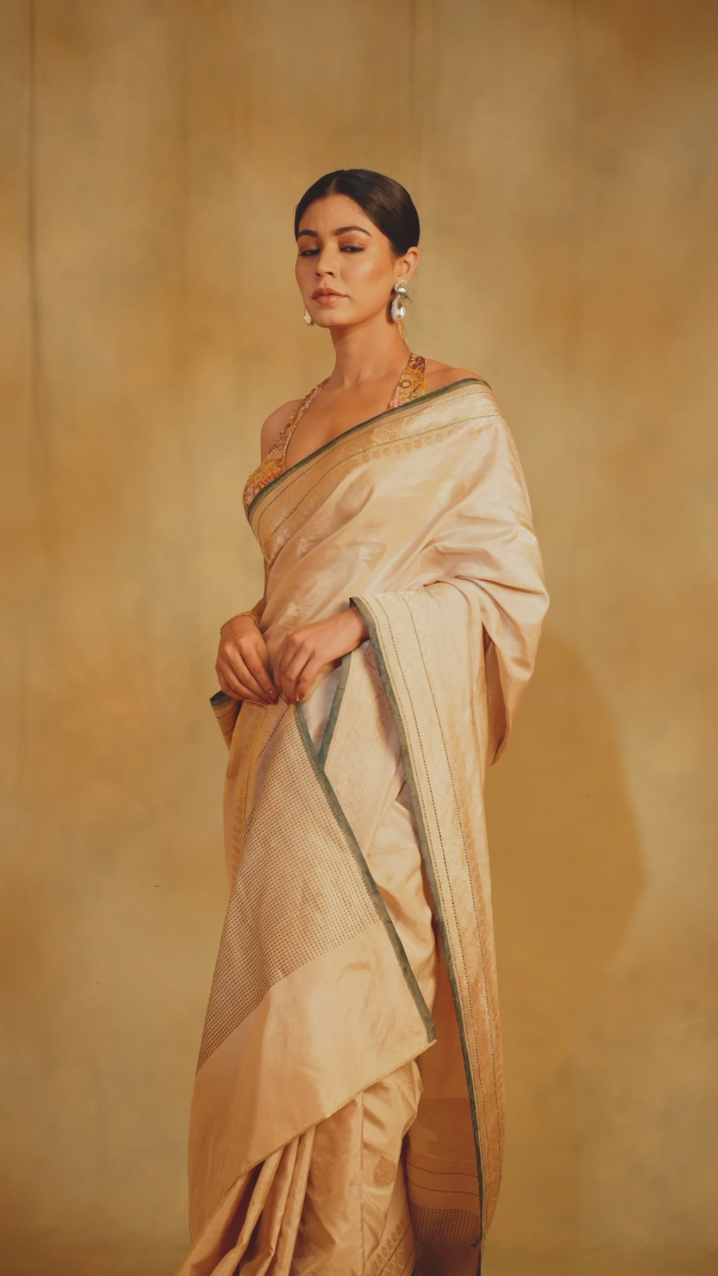 Arshiya- Beige Silk Brocade Banarasi Saree