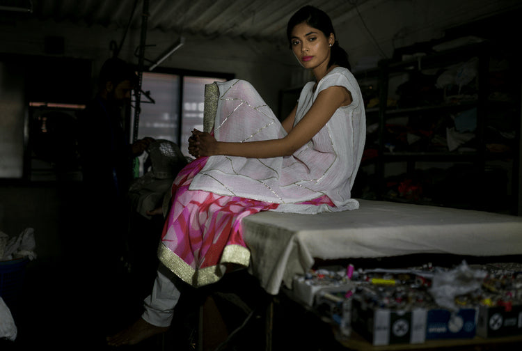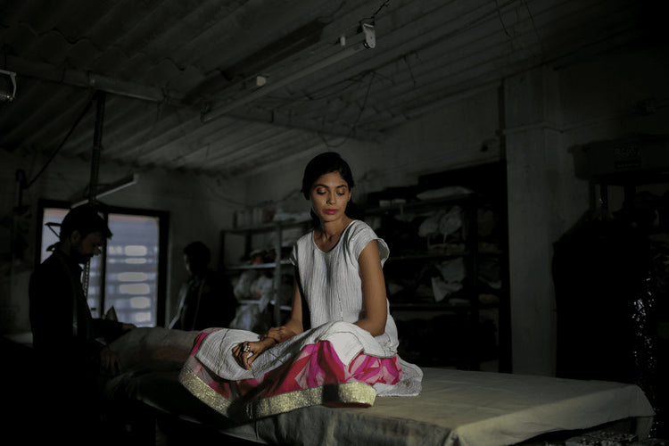 Upcycled crushed cotton kurta with gota leher paired with tie-dye sharara pants